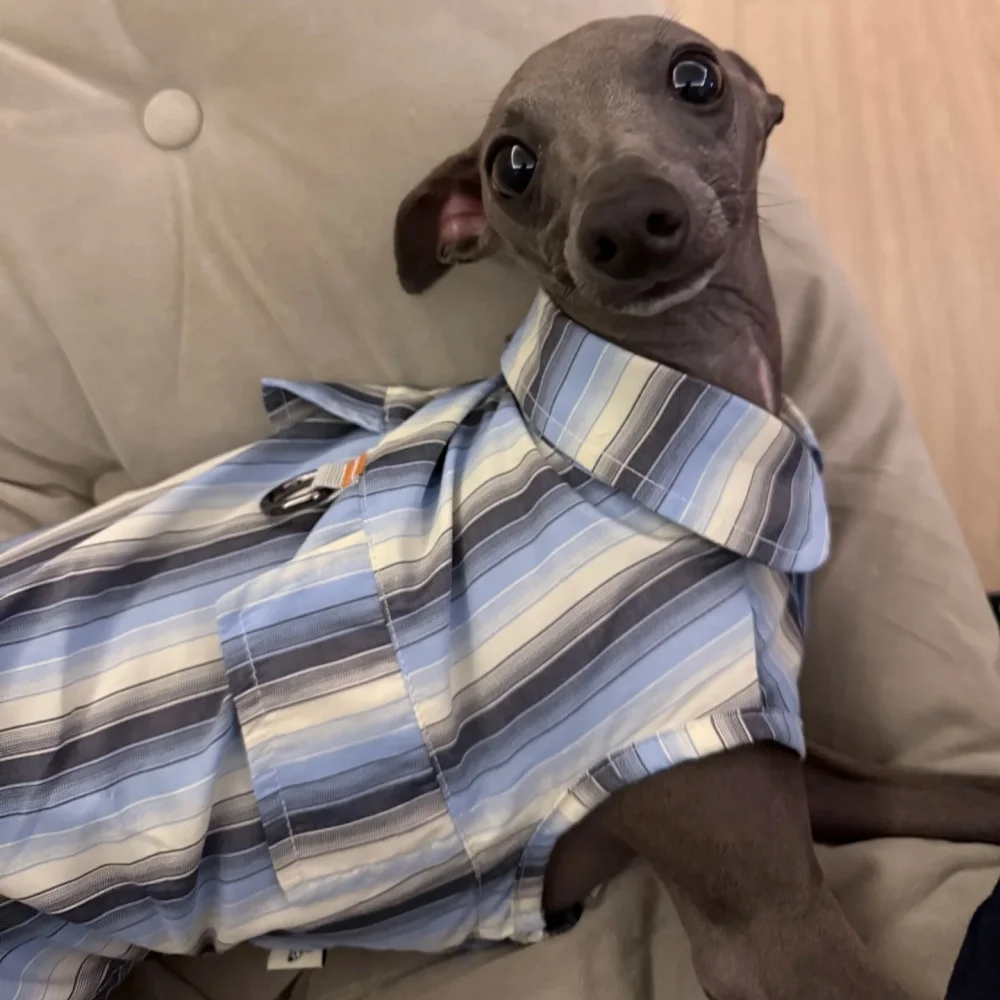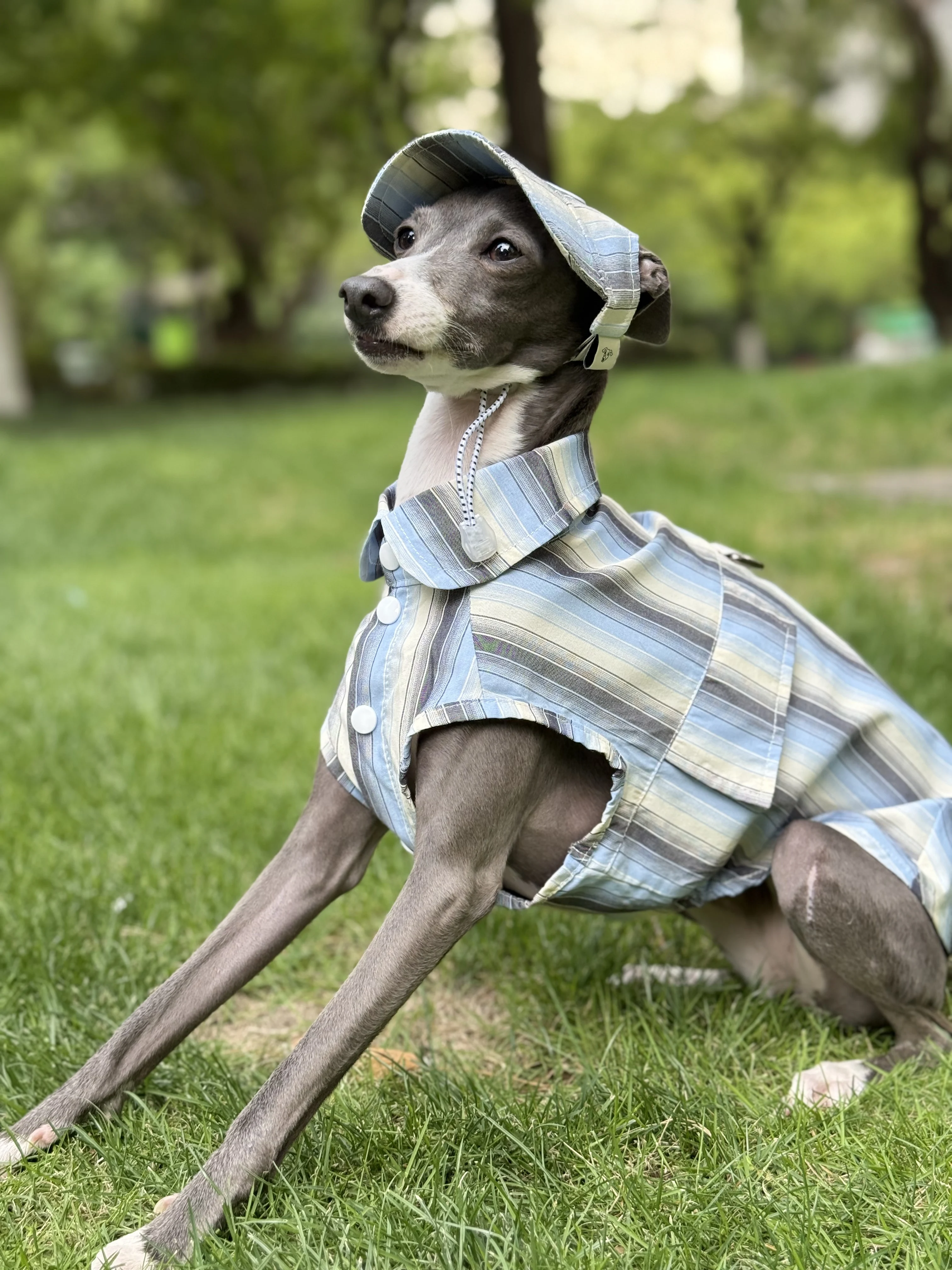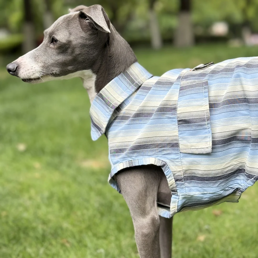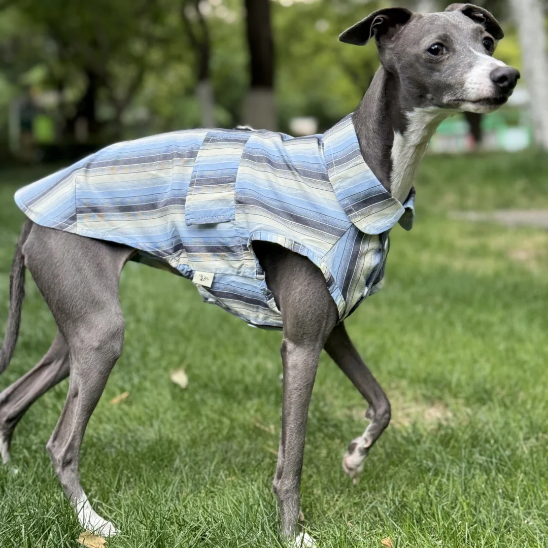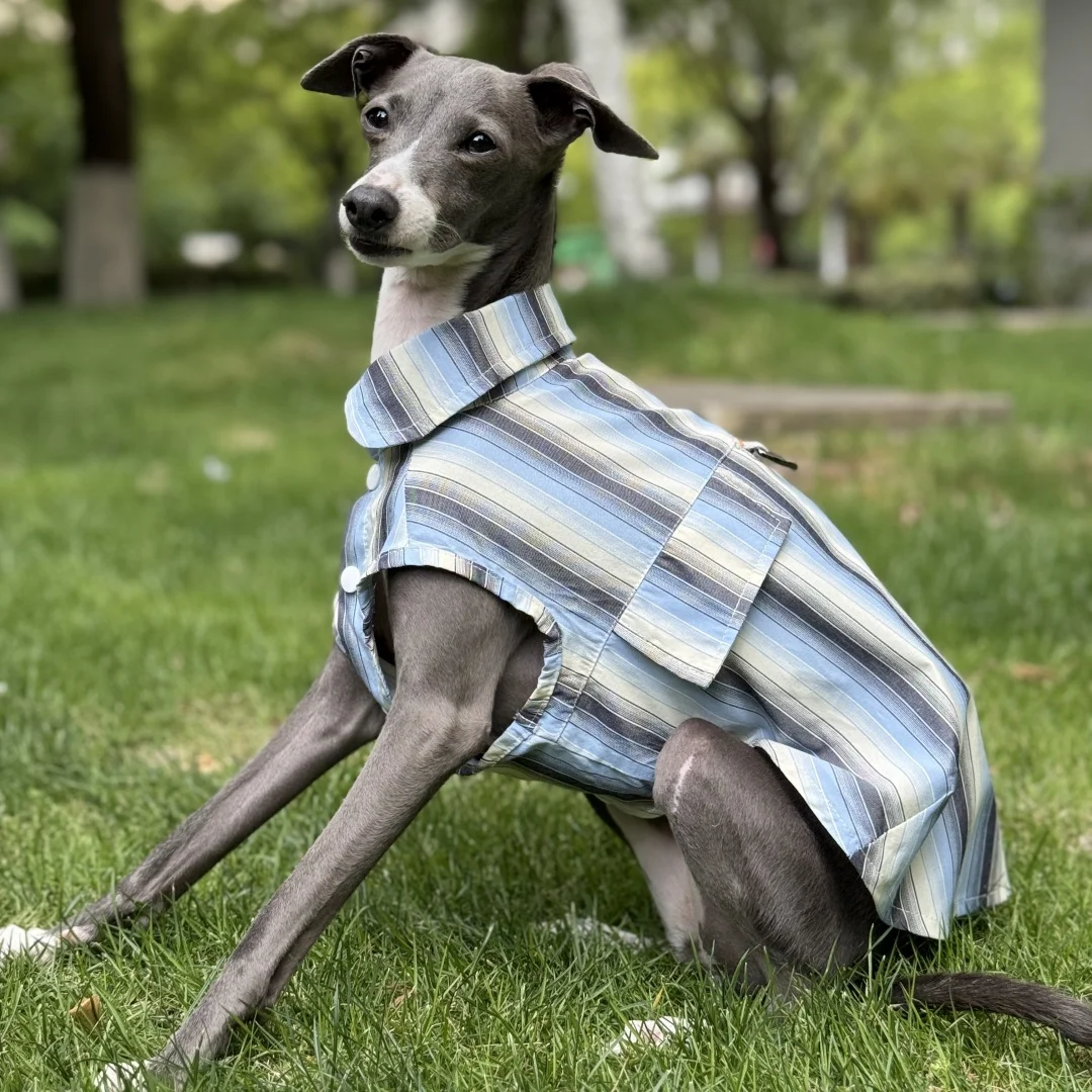 Camisa de rayas azules de protección solar para galgo italiano Abrigo verde sin mangas de fibra de seda de hielo para perros medianos Sombrero de verano para whippet