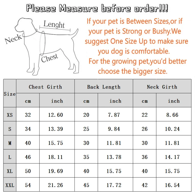 XL: Pecho 50 cm/19,69''; Longitud 40 cm/15,75 pulgadas; Cuello 40 cm/15,75''.