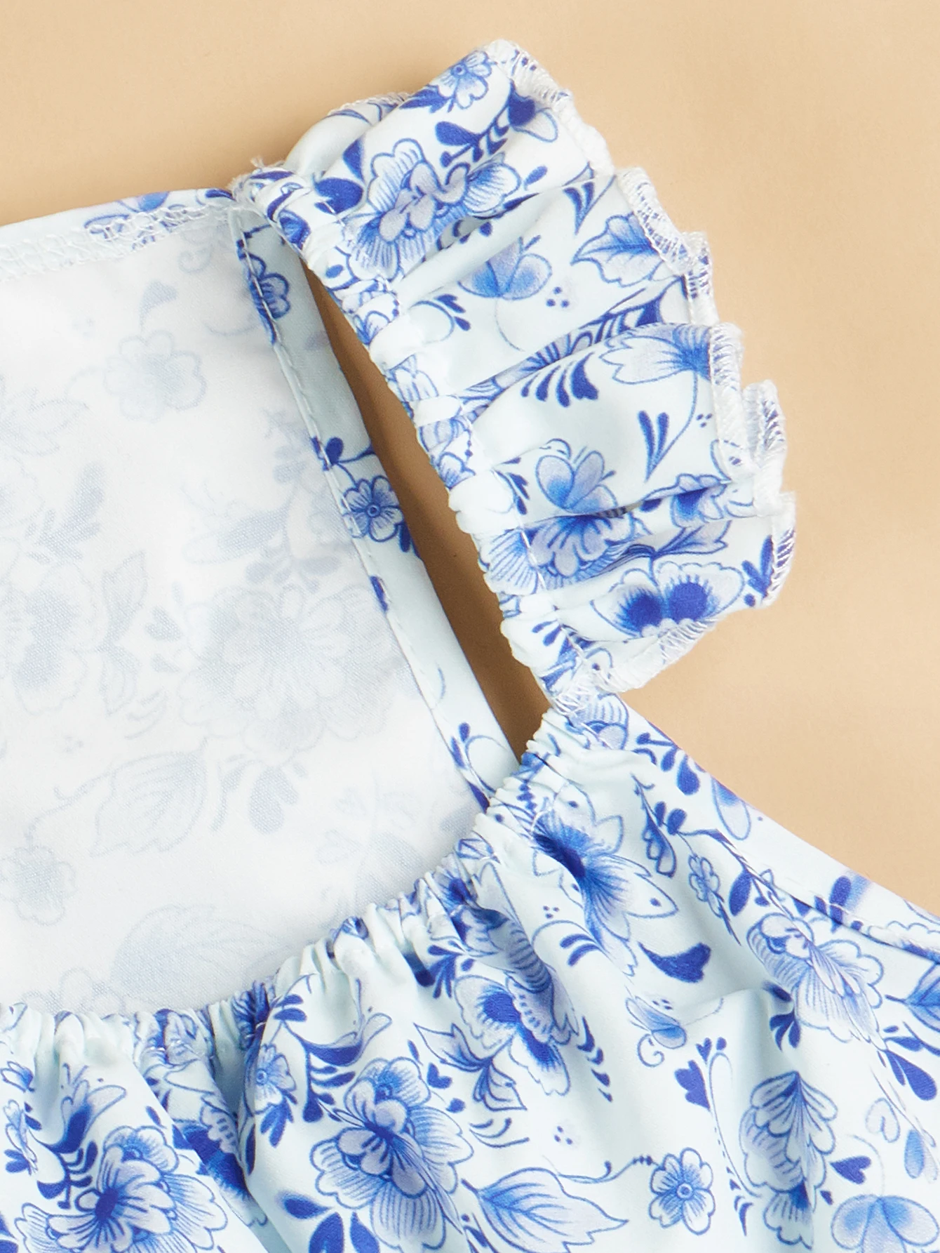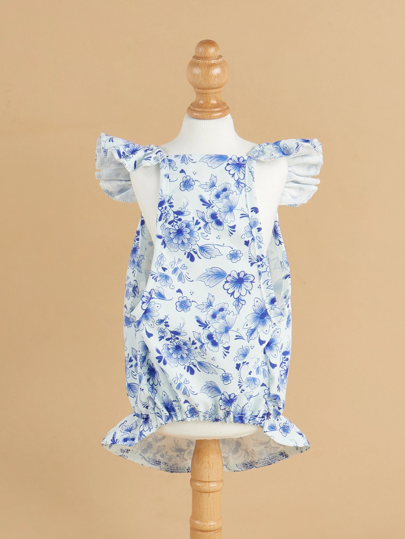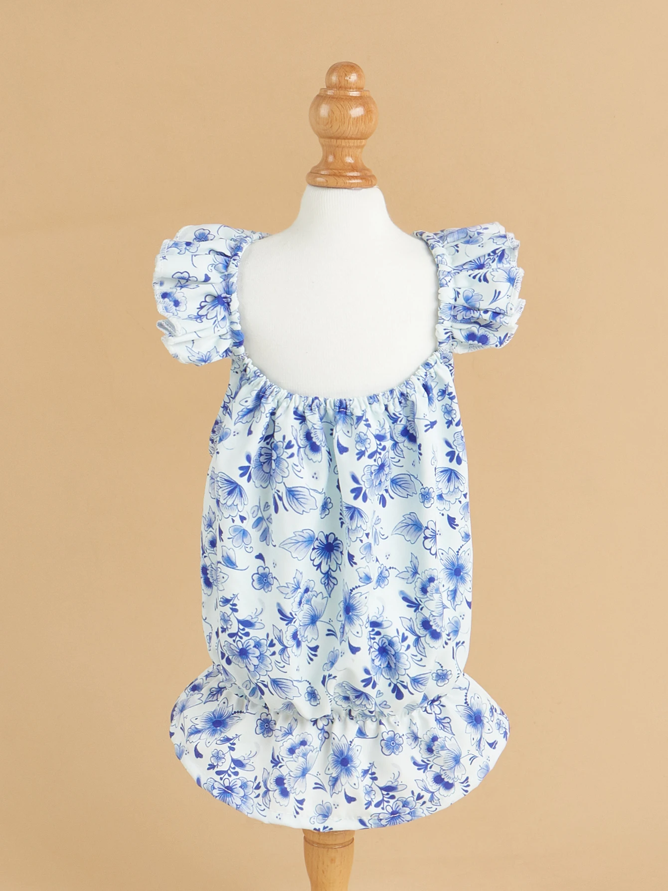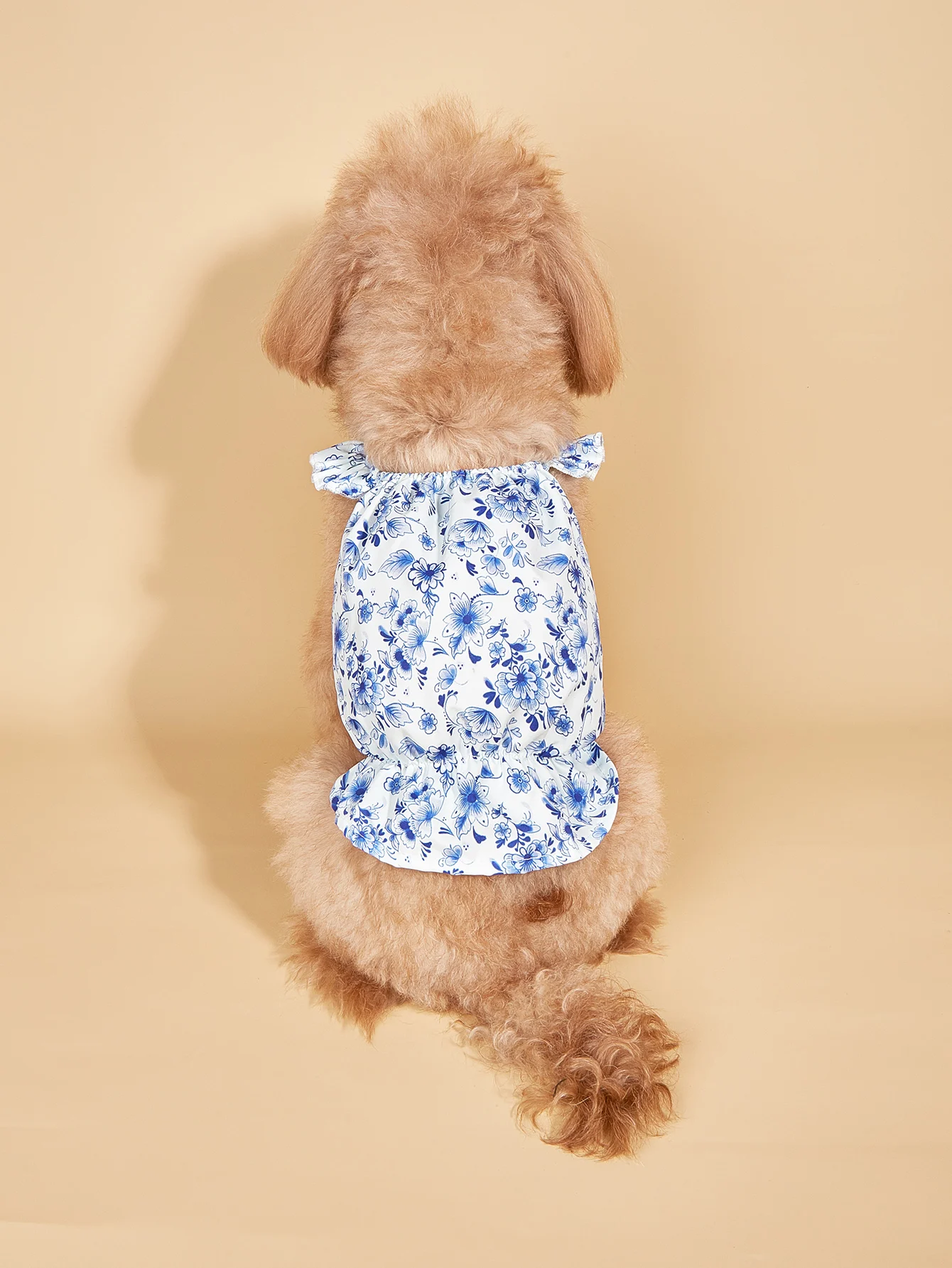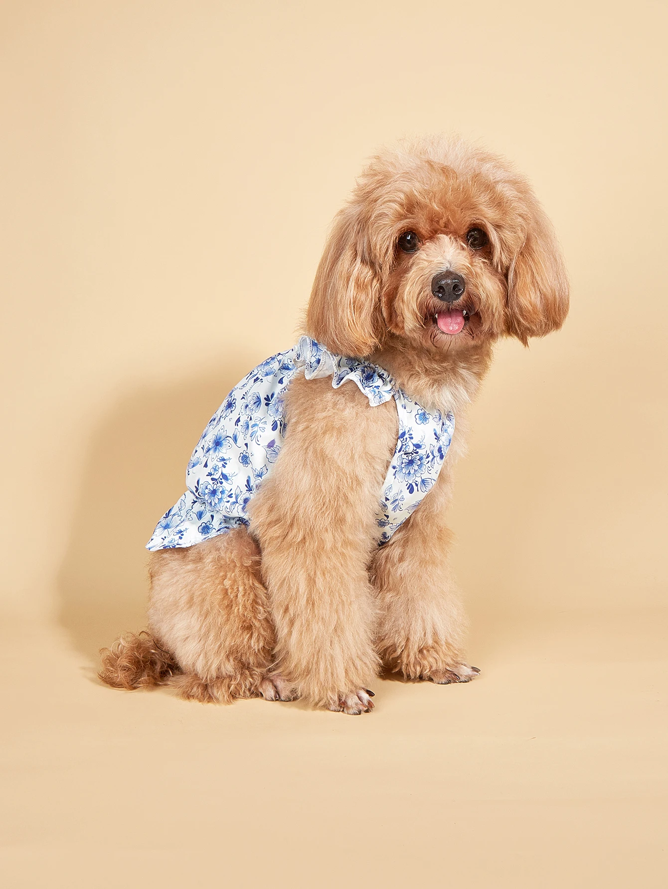 Camisa de vestir de porcelana azul y blanca, vestido de verano con estampado de princesa para cachorros, ropa con volantes para perros pequeños, Ca