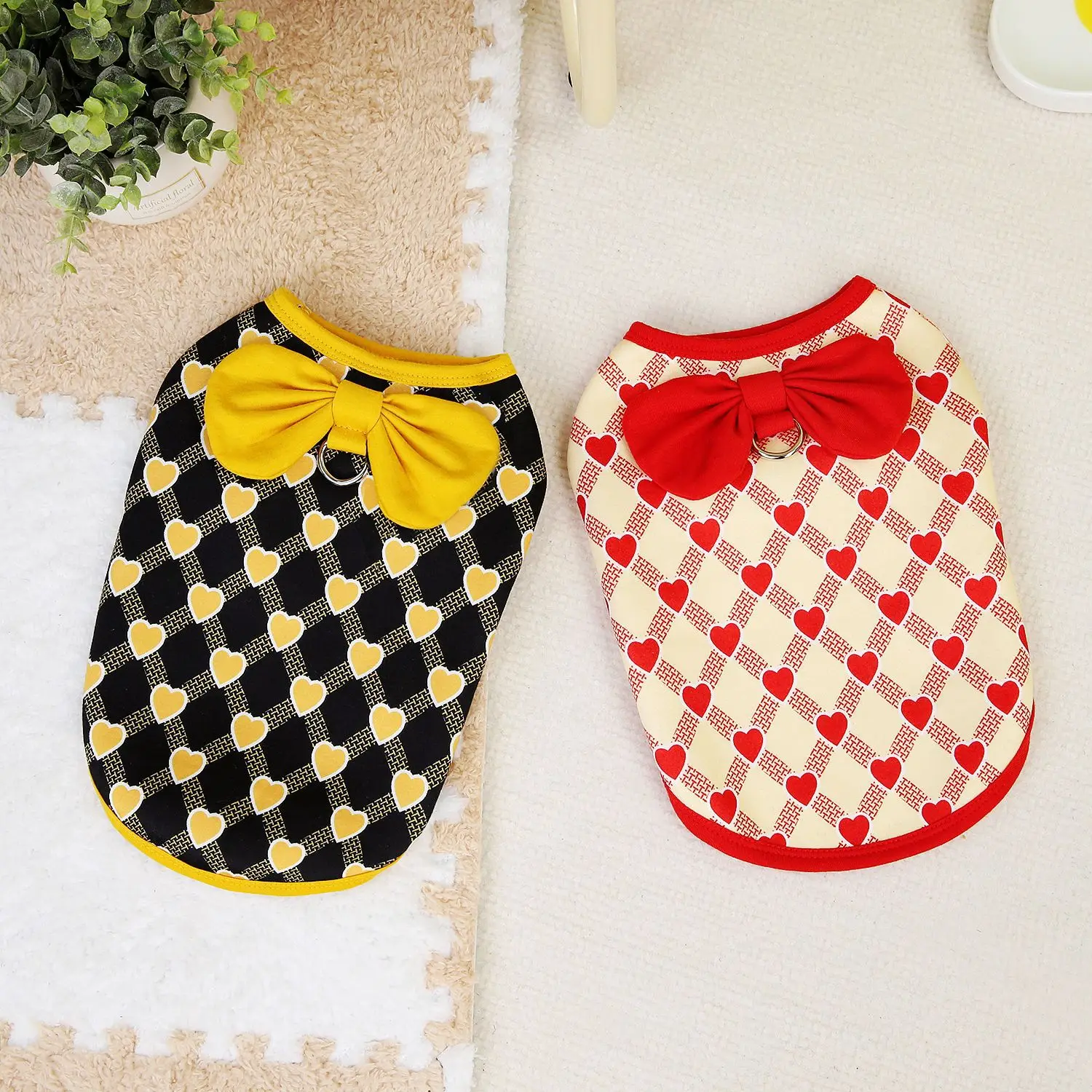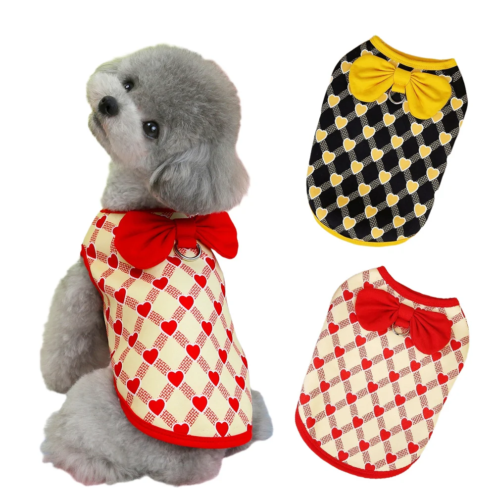 Camisas para perros con patrón de amor, lazo súper grande, ropa para perros pequeños, chaleco para cachorros, regalo para perro, ropa para el día de la madre de San Valentín