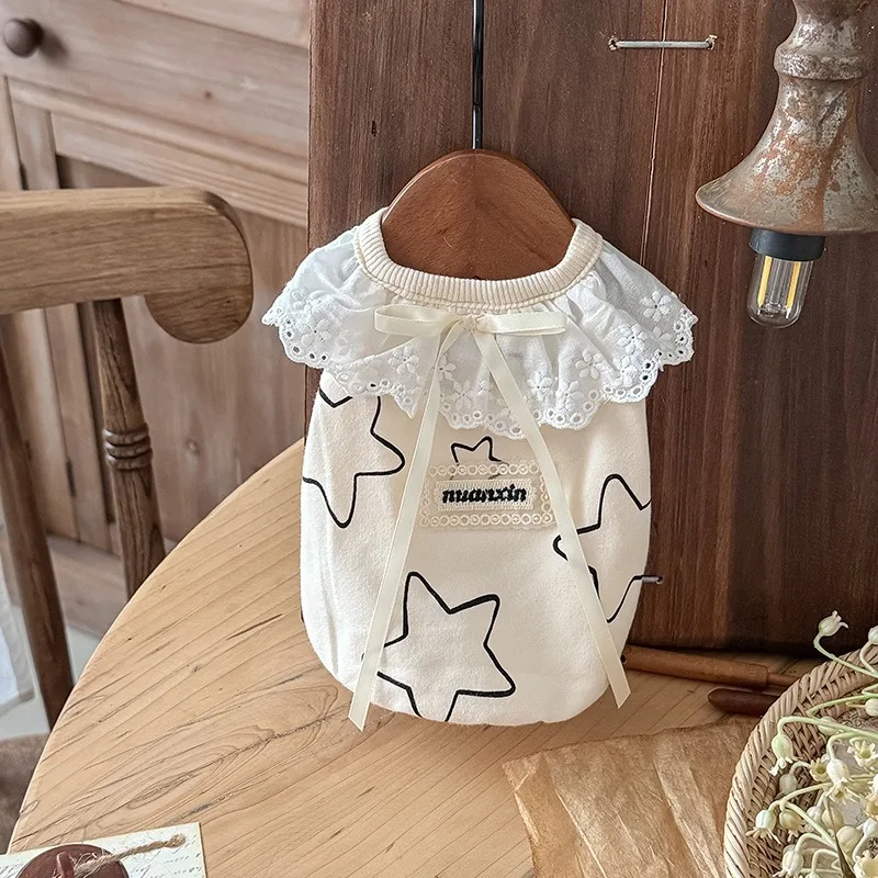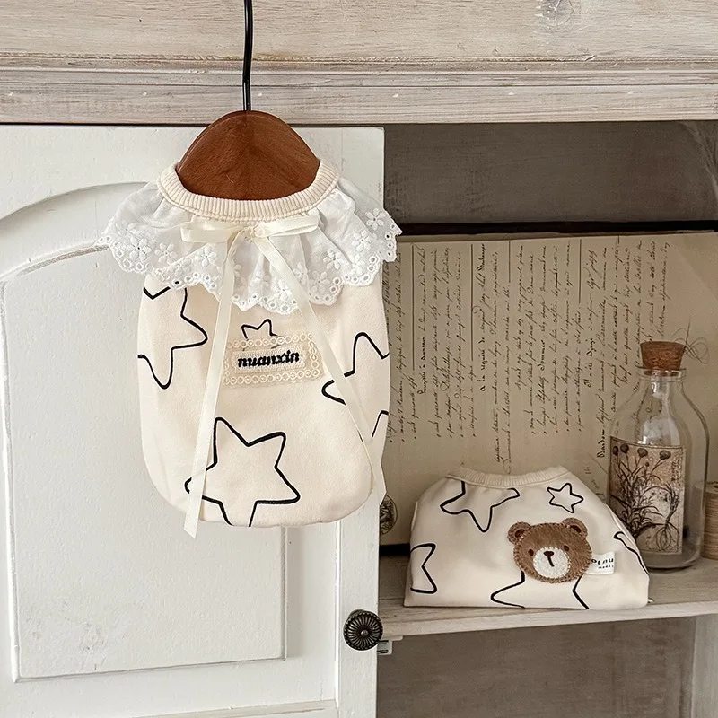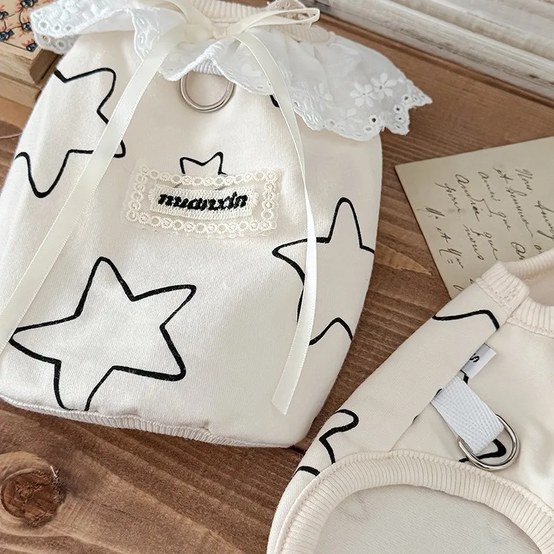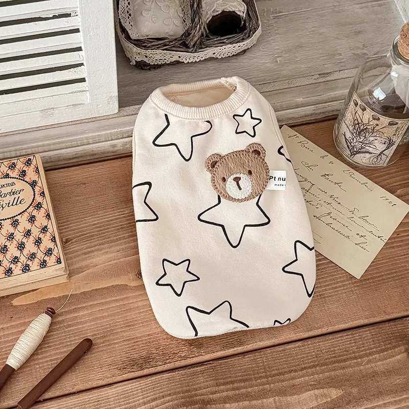 Camiseta de algodón para cachorros y mascotas, ropa elástica antiderramamiento con estampado de estrellas para perros gordos, ropa para perros Schnauzer, ropa de verano y otoño