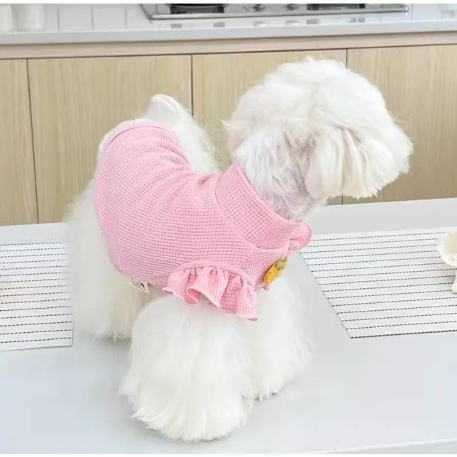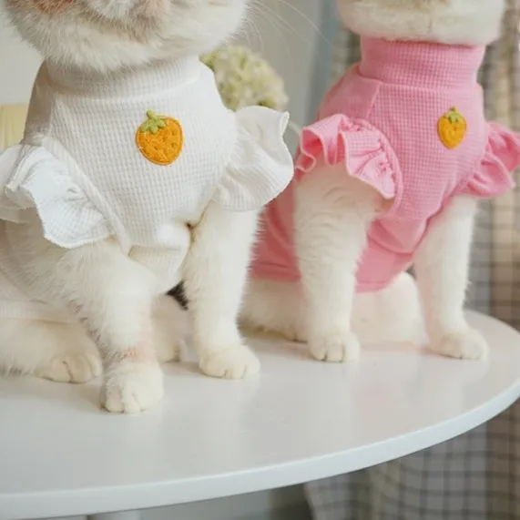 Camiseta básica de manga voladora de gofres para mascotas, chaleco de fresa para perros, camiseta sin mangas de gato Yorkshire, ropa para cachorros