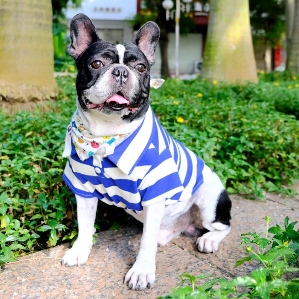 Camiseta clásica a rayas para perro, ropa de cuello alto para perros pequeños, gatos, Bulldog Francés, Schnauzer, Pug, cachorro