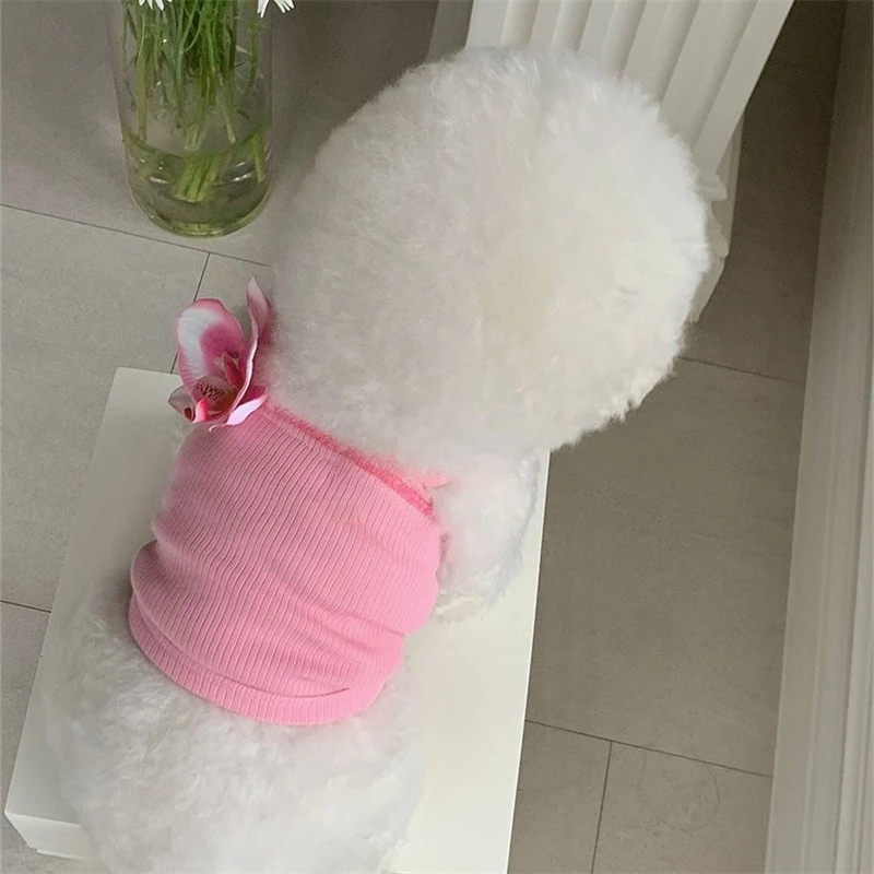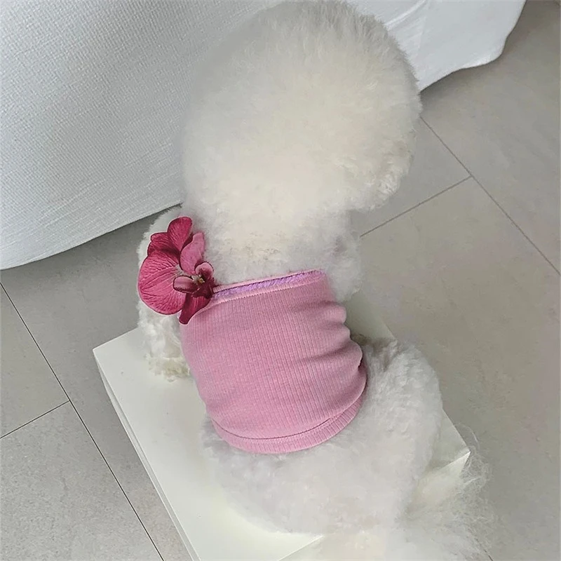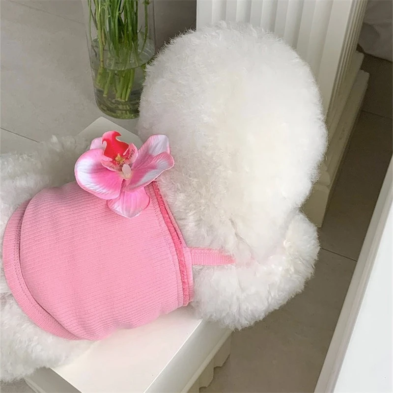 Camiseta con correa de orquídeas y mariposa para perro, vestido de peluche para gato y mascota, chaleco refrescante, ropa para cachorros y perros pequeños, primavera