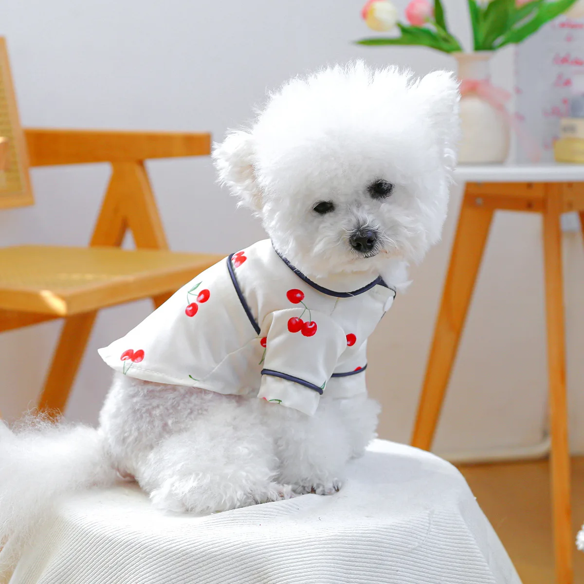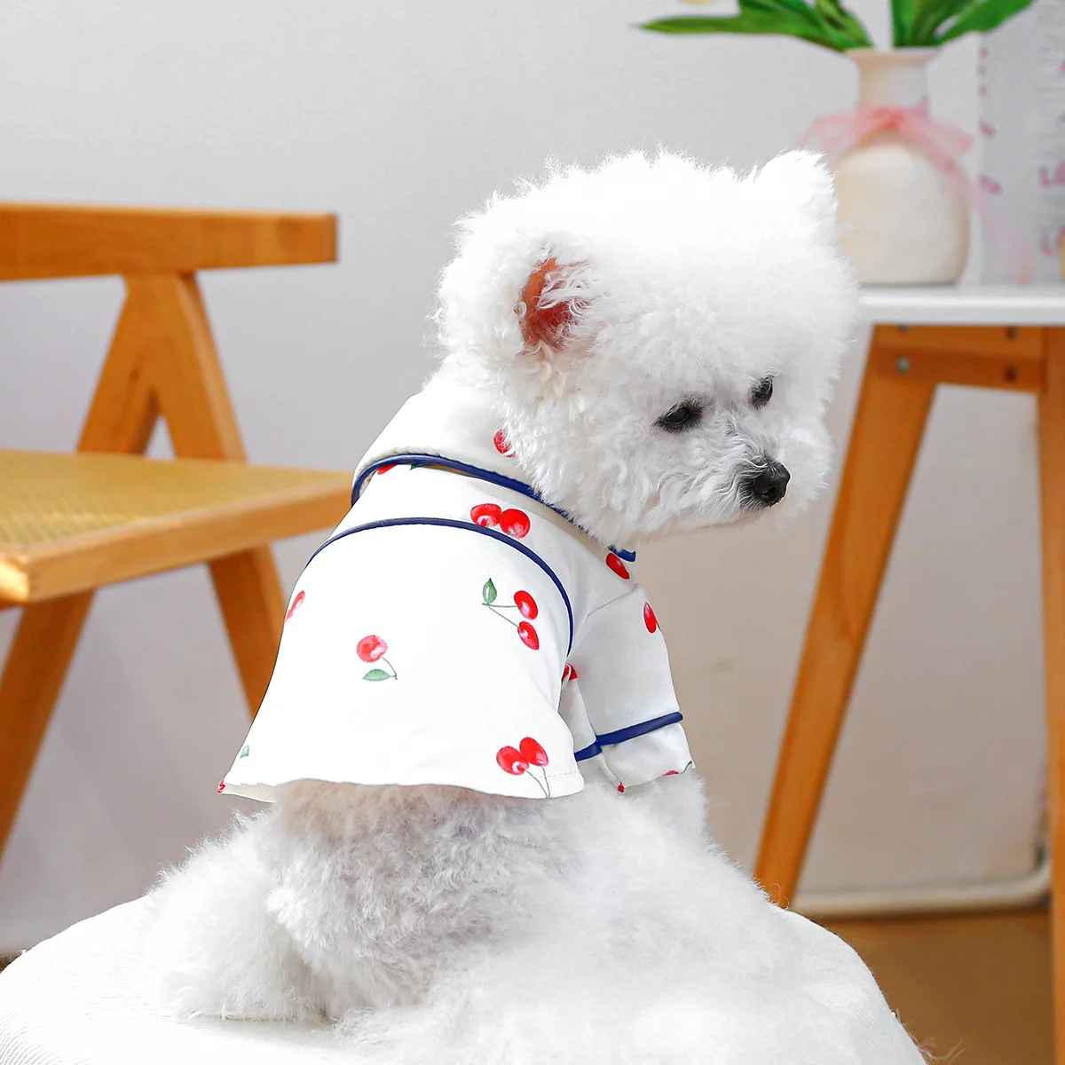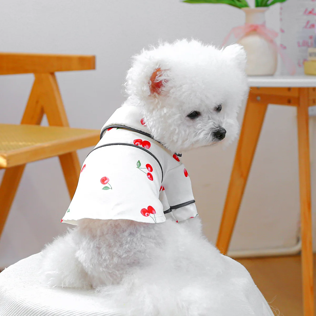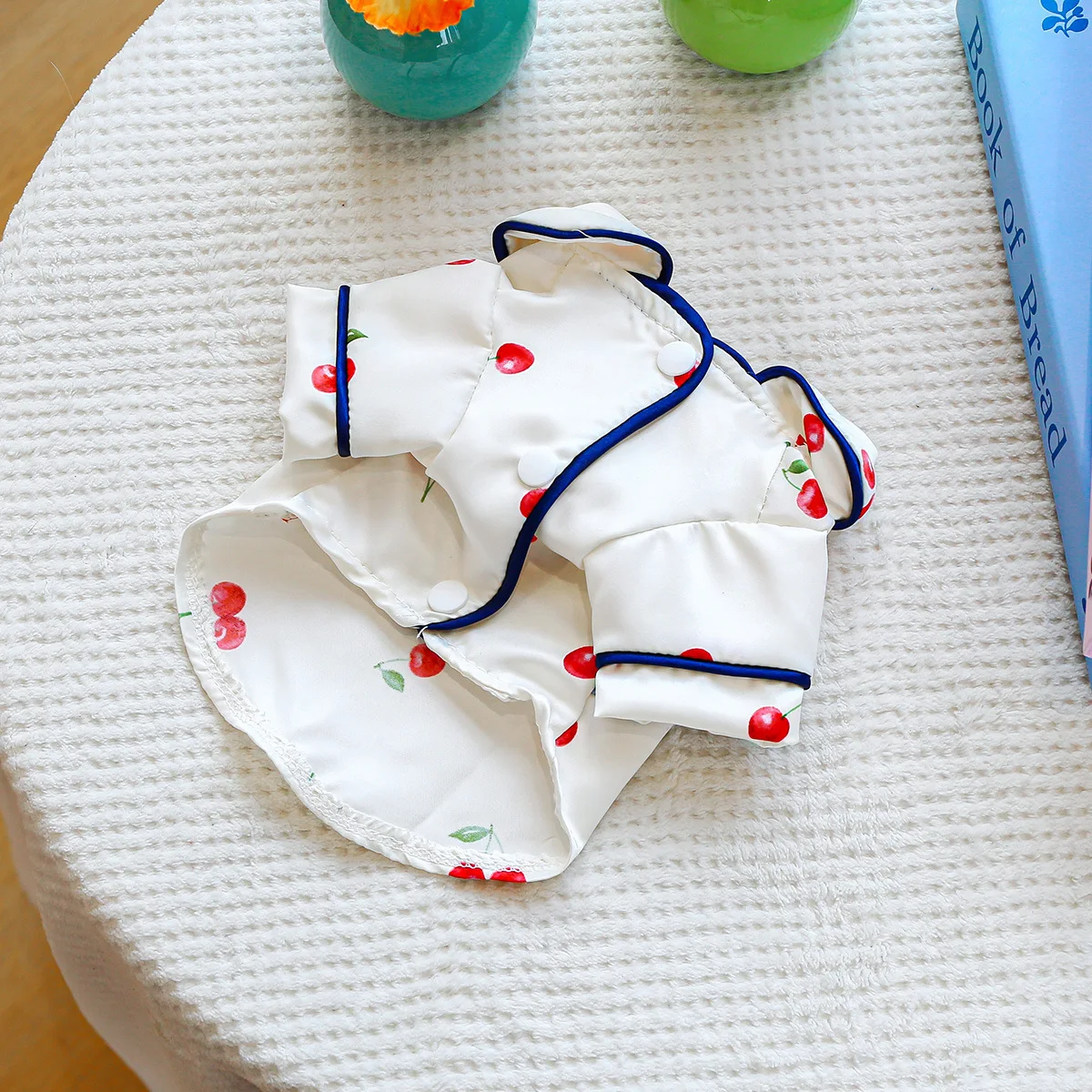 Camiseta con cuello para mascotas, bonita camisa de cereza, camisa Base para perros, pijamas de cereza, ropa para perros pequeños, perros pequeños de primavera