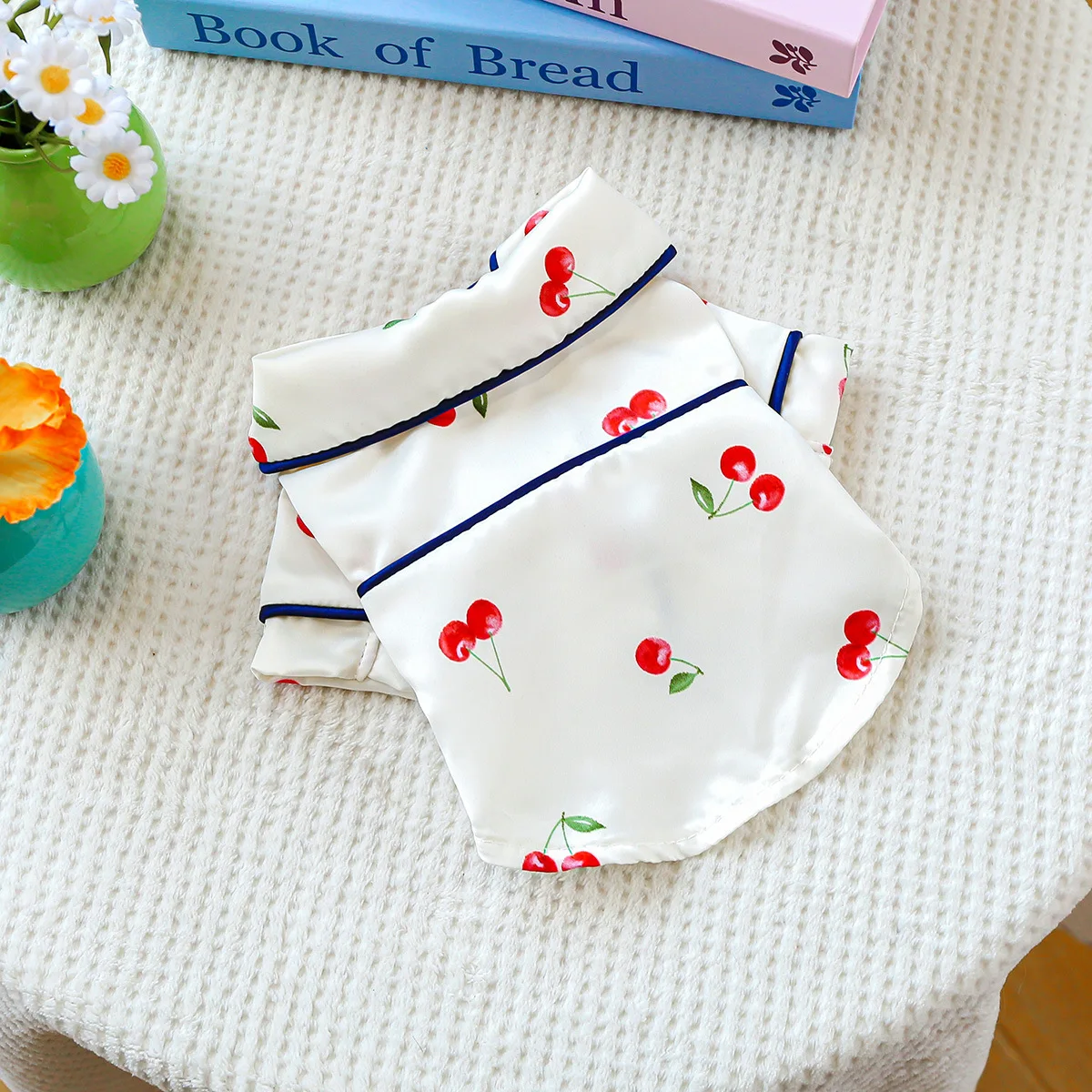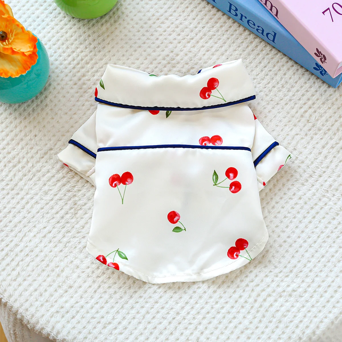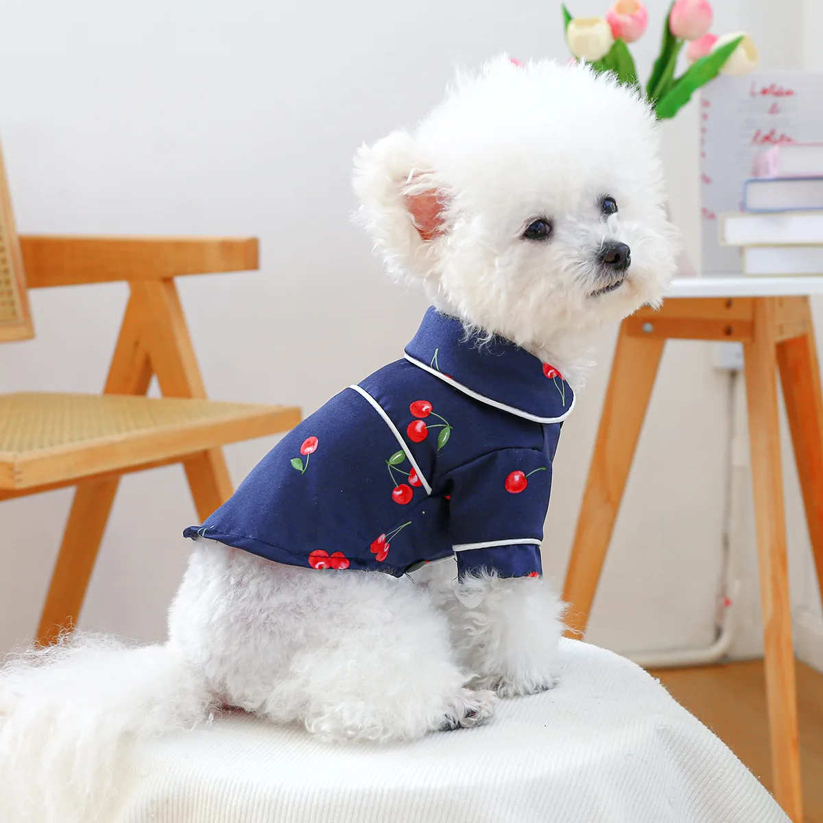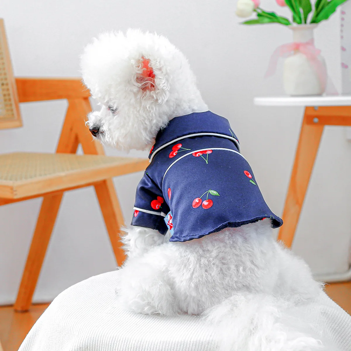 Camiseta con cuello para mascotas, bonita camisa de cereza, camisa Base para perros, pijamas de cereza, ropa para perros pequeños, perros pequeños de primavera