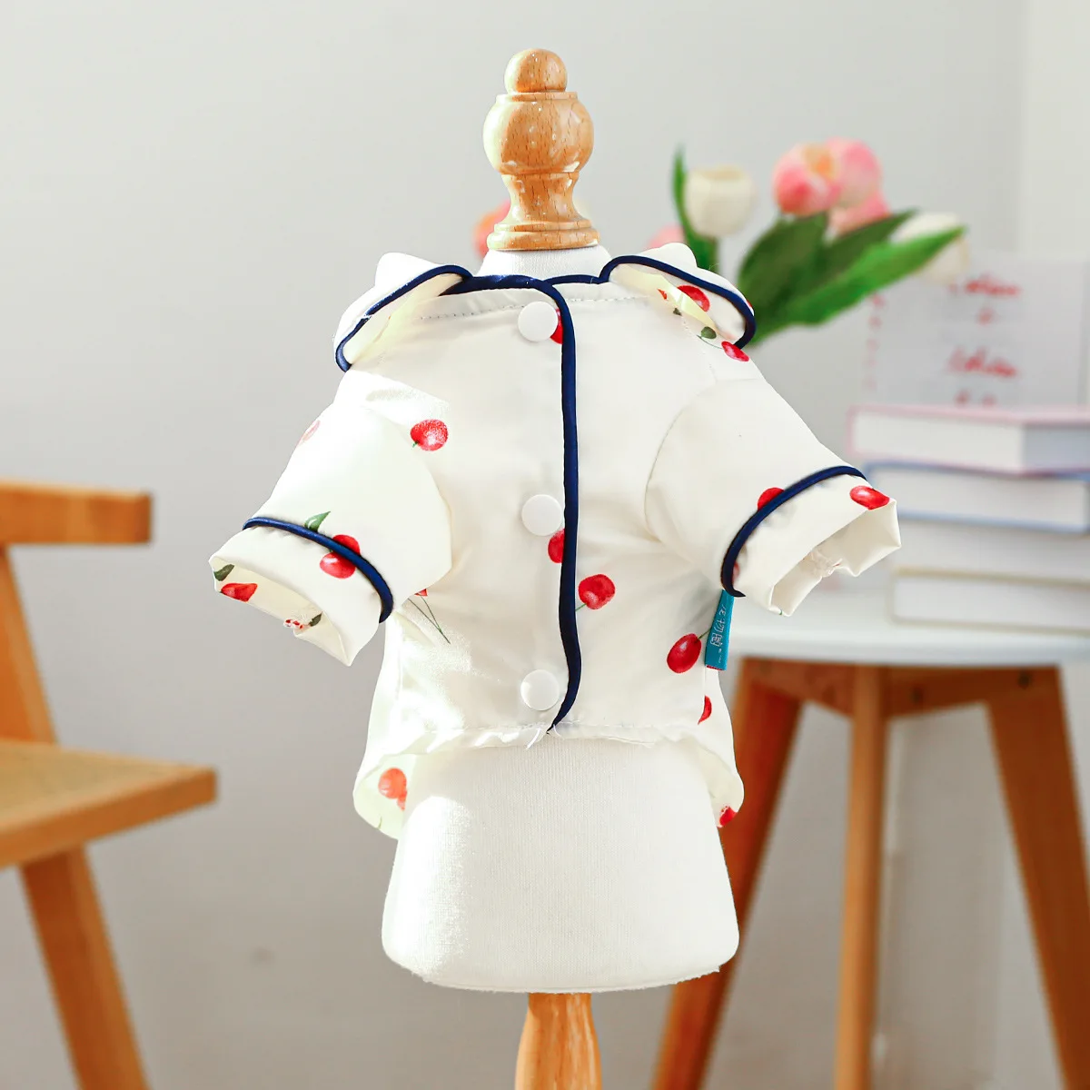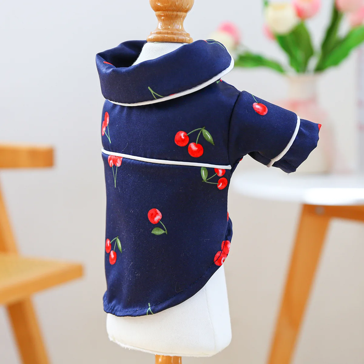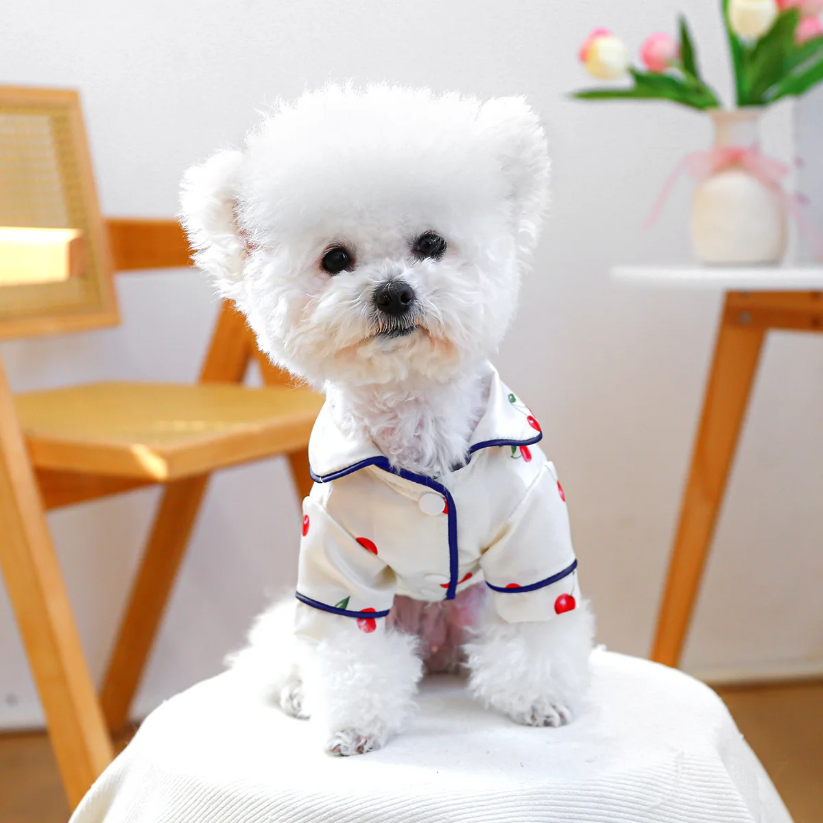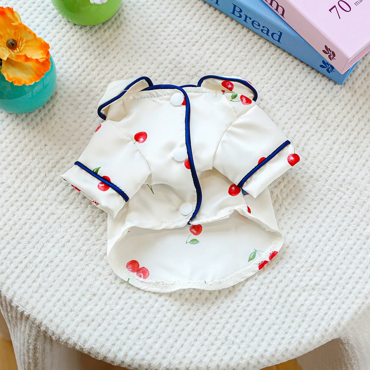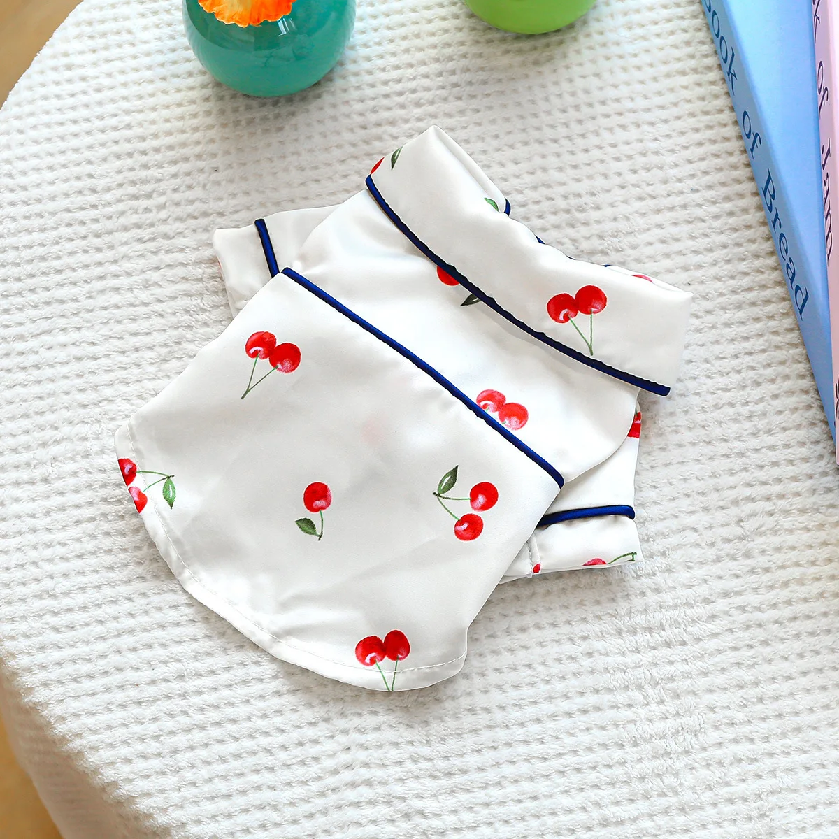 Camiseta con cuello para mascotas, bonita camisa de cereza, camisa Base para perros, pijamas de cereza, ropa para perros pequeños, perros pequeños de primavera