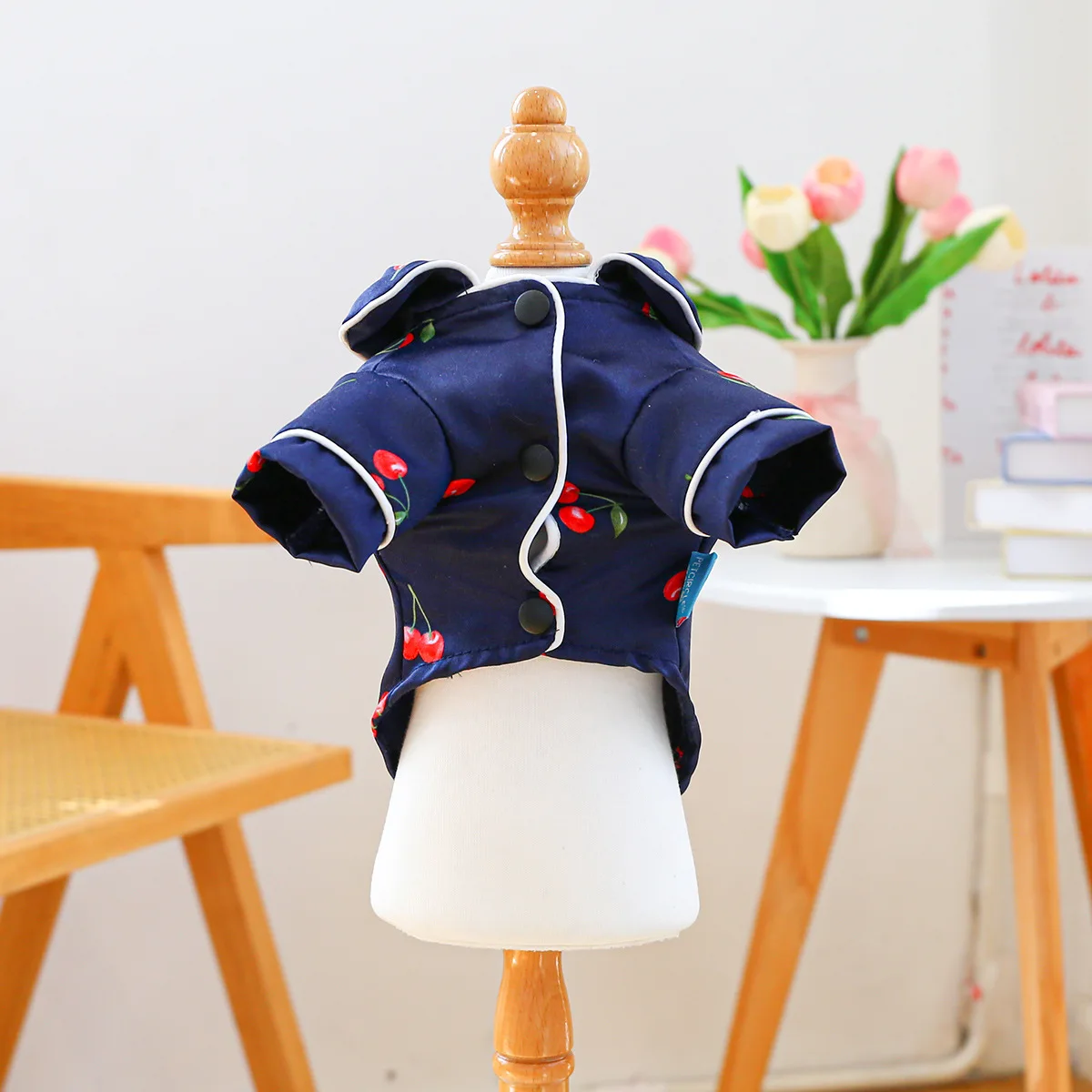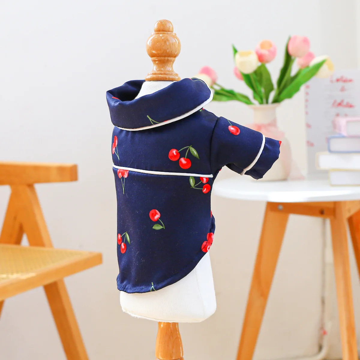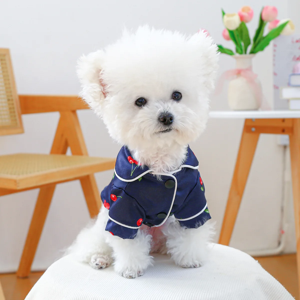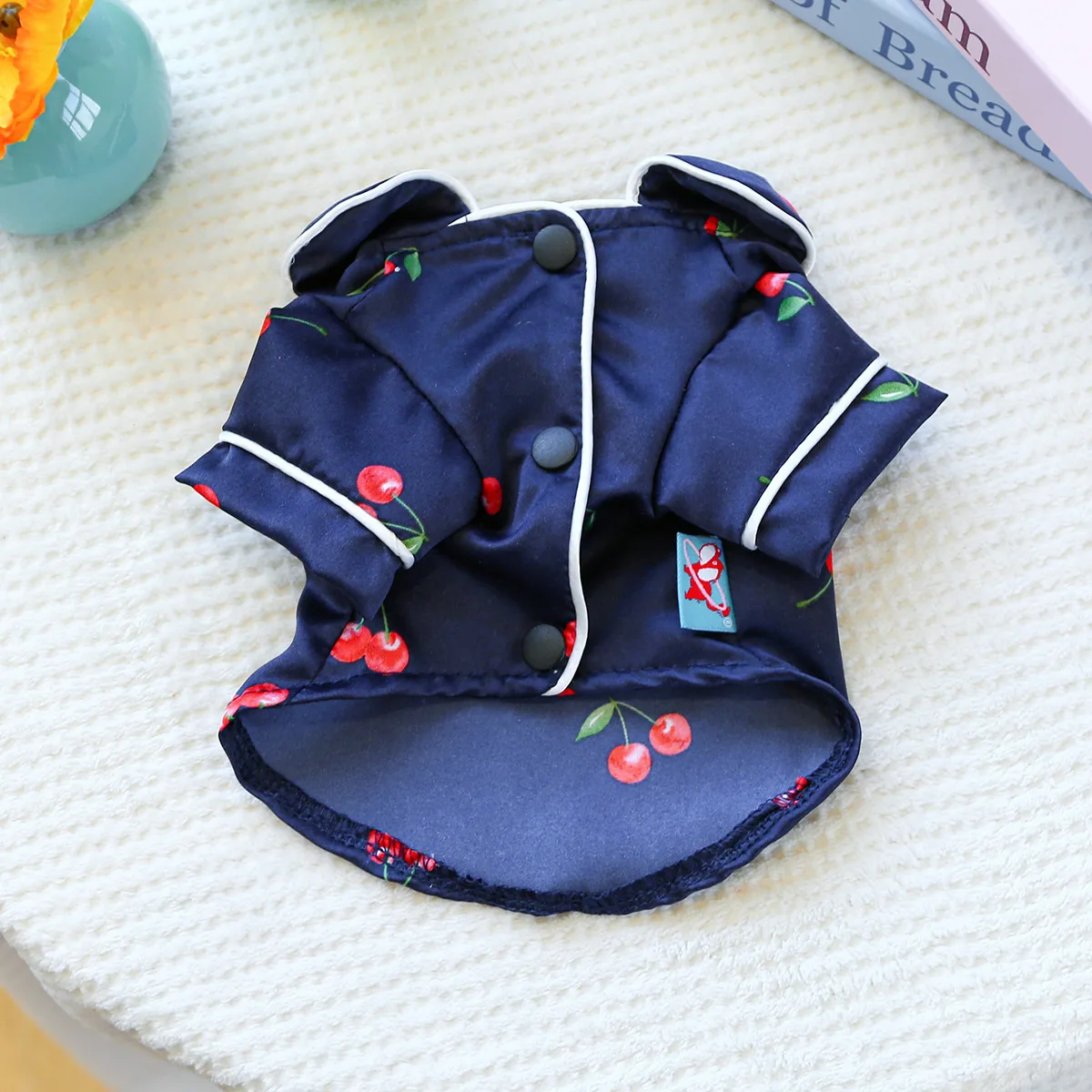 Camiseta con cuello para mascotas, bonita camisa de cereza, camisa Base para perros, pijamas de cereza, ropa para perros pequeños, perros pequeños de primavera