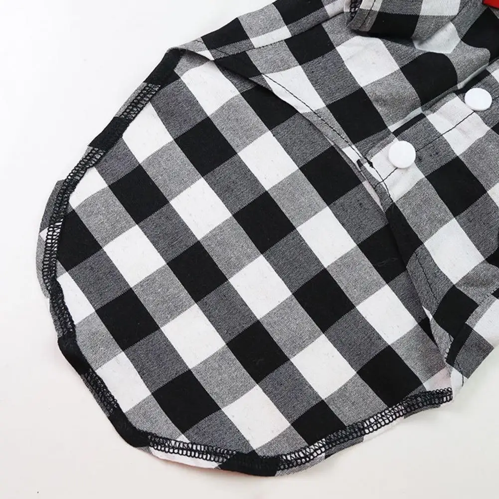 Con estampado a cuadros, decoración de lazo y diseño de cuello vuelto, la tela para mascotas es moderna y atractiva.