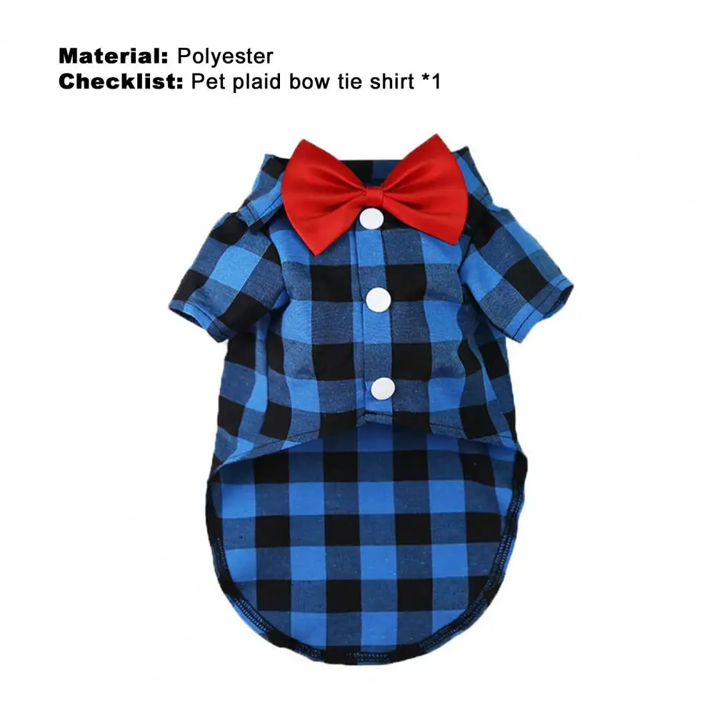 Camiseta para mascotas con estampado a cuadros, decoración con nudo de lazo, cuello vuelto de poliéster, disfraz de perro, camisa para la vida diaria
