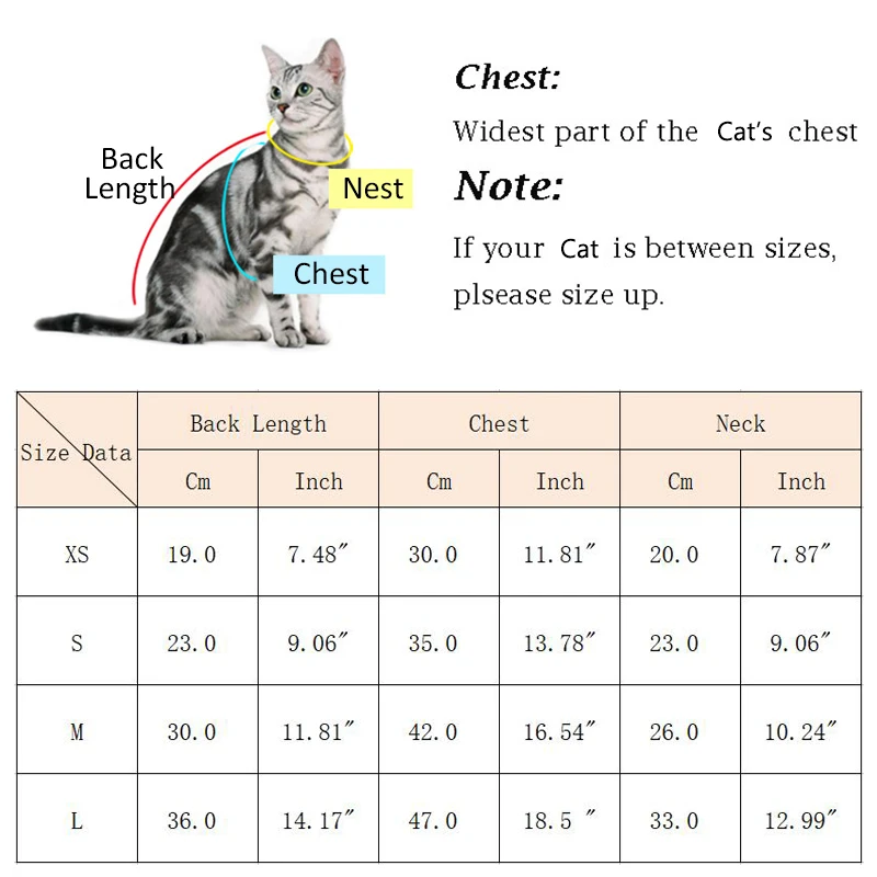 1. Por favor, compruebe las medidas de su mascota para asegurarse de que la ropa se ajuste a las mascotas antes de realizar el pedido (1 pulgada=2,54 cm)