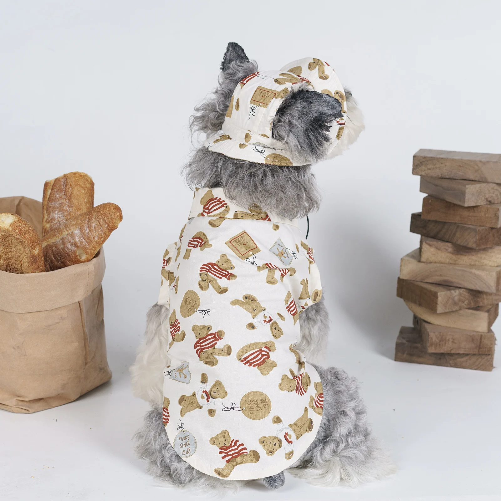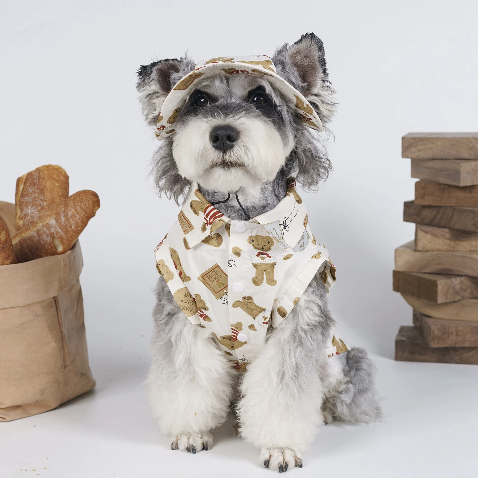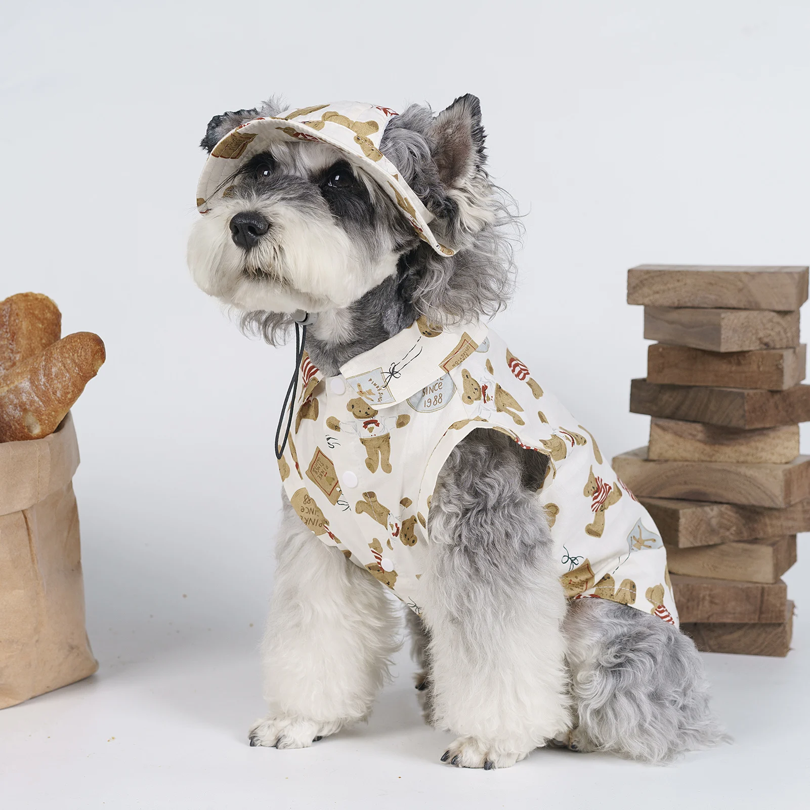 Camiseta con bonito diseño de oso y sombrero para Schnauzer, ropa transpirable de verano para perros pequeños y medianos Pomerami Bichon Teddy Dogs