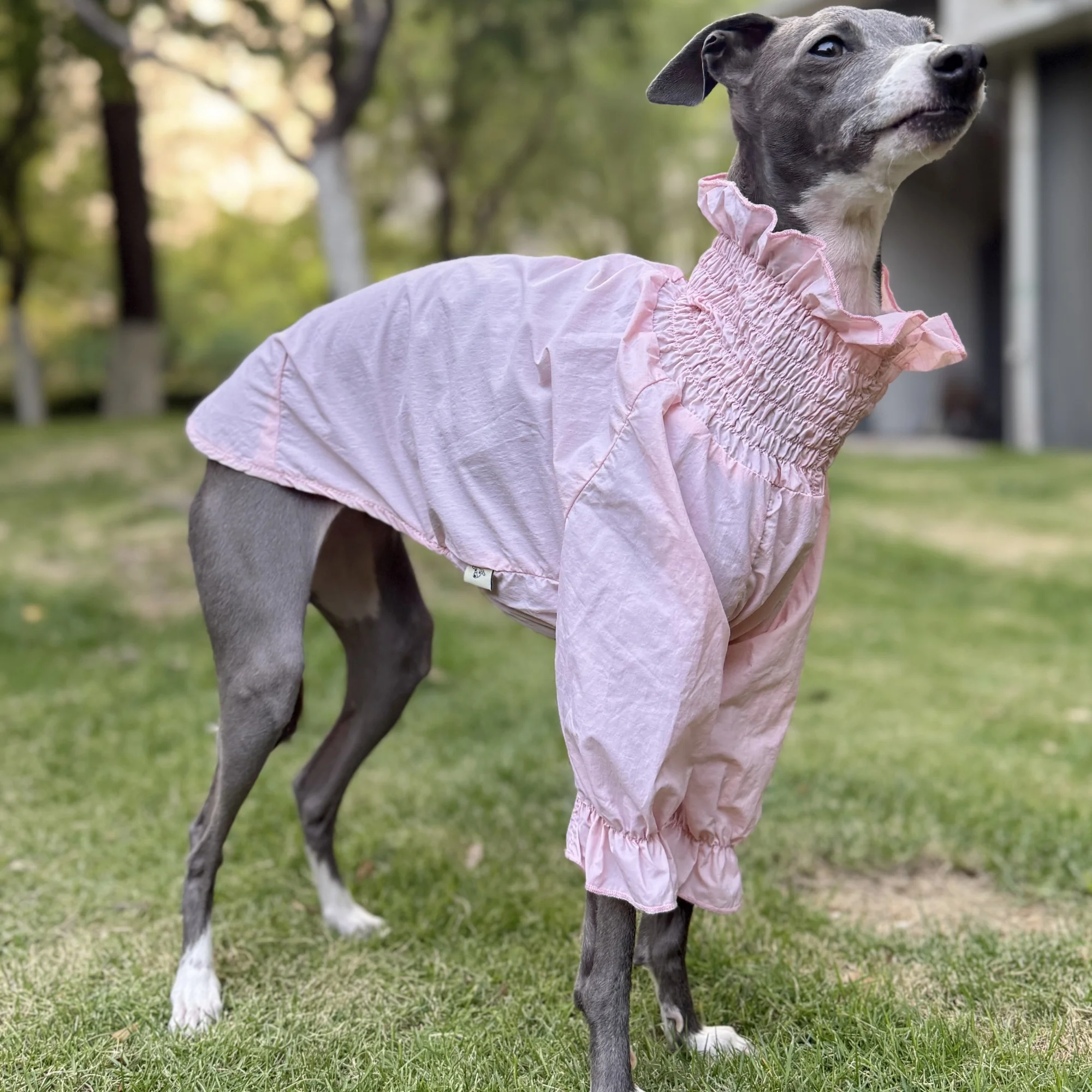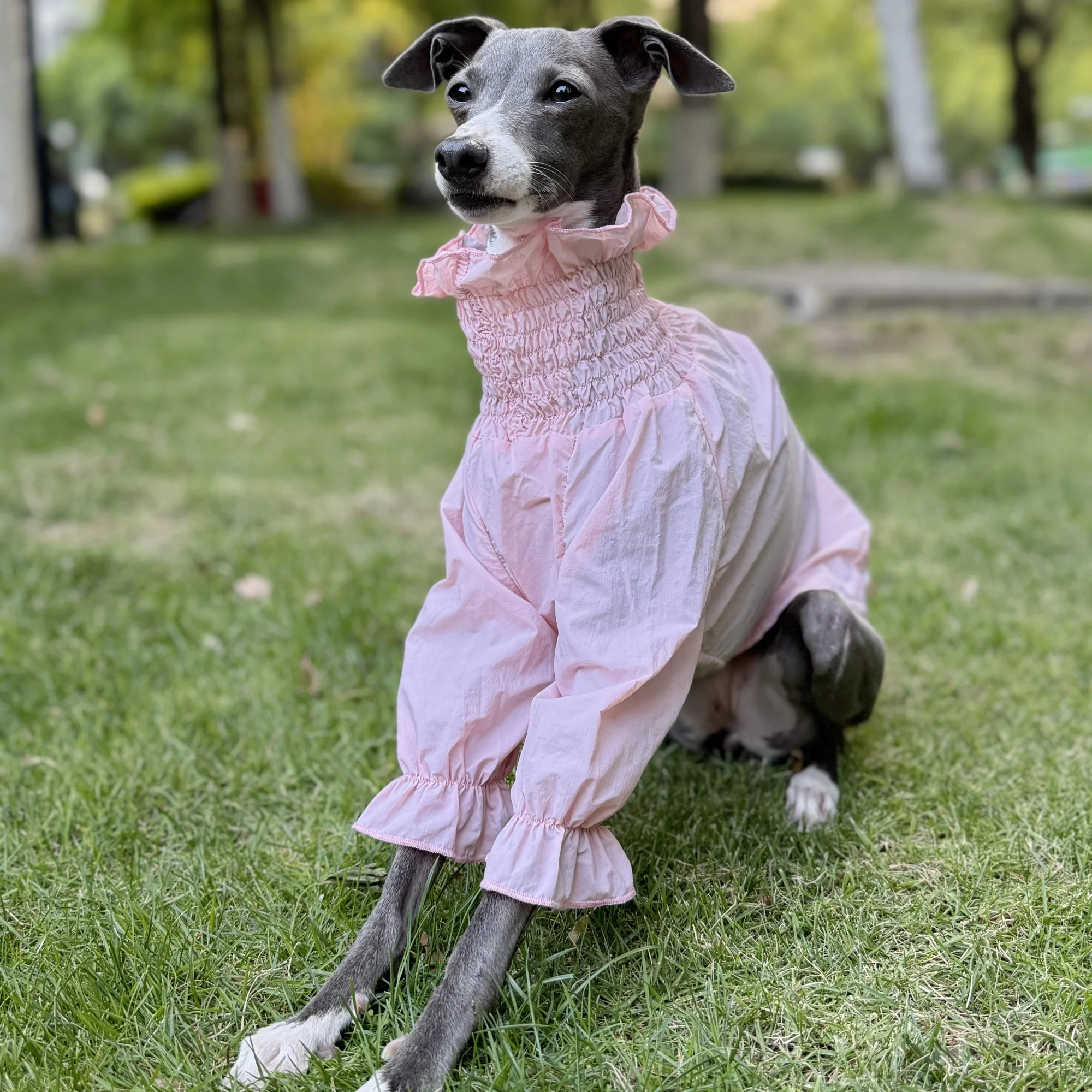 Camiseta ligera de protección solar de verano con burbujas, con protección UV UPF100 en color beige para galgo italiano, abrigo con encaje rosa para Bedlington, traje exterior para Whippet en primavera.