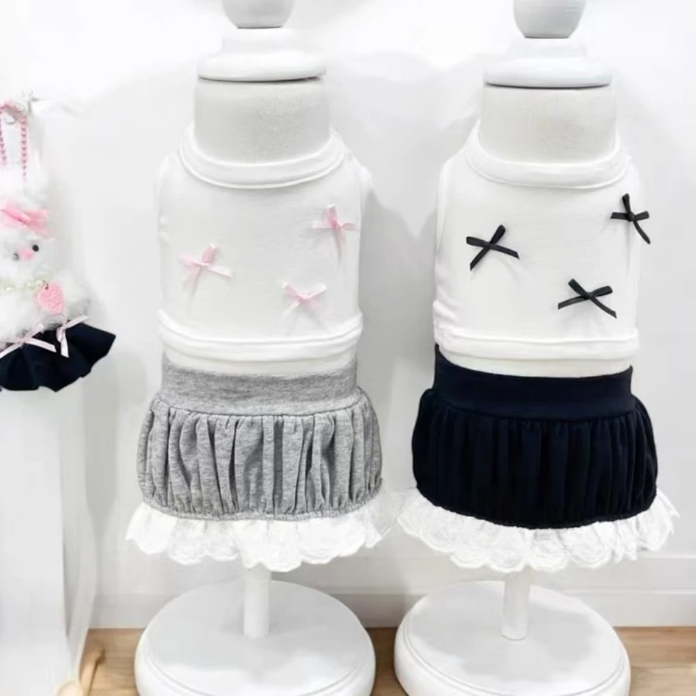 Camiseta sin mangas dividida para mascotas, media falda de encaje con lazo y burbujas, conjunto fino de peluche Yorkshire para mascotas, vestidos para perros pequeños