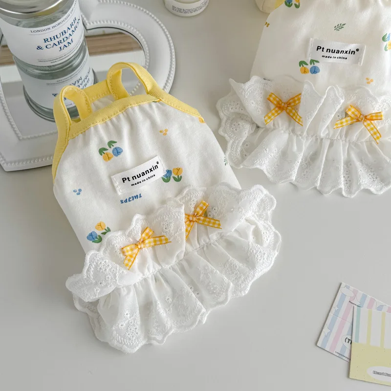 Camiseta sin mangas fina para perro, falda con tirantes de encaje y lazo, camiseta sin mangas de peluche para perro pequeño, vestidos para perros pequeños, ropa para cachorros