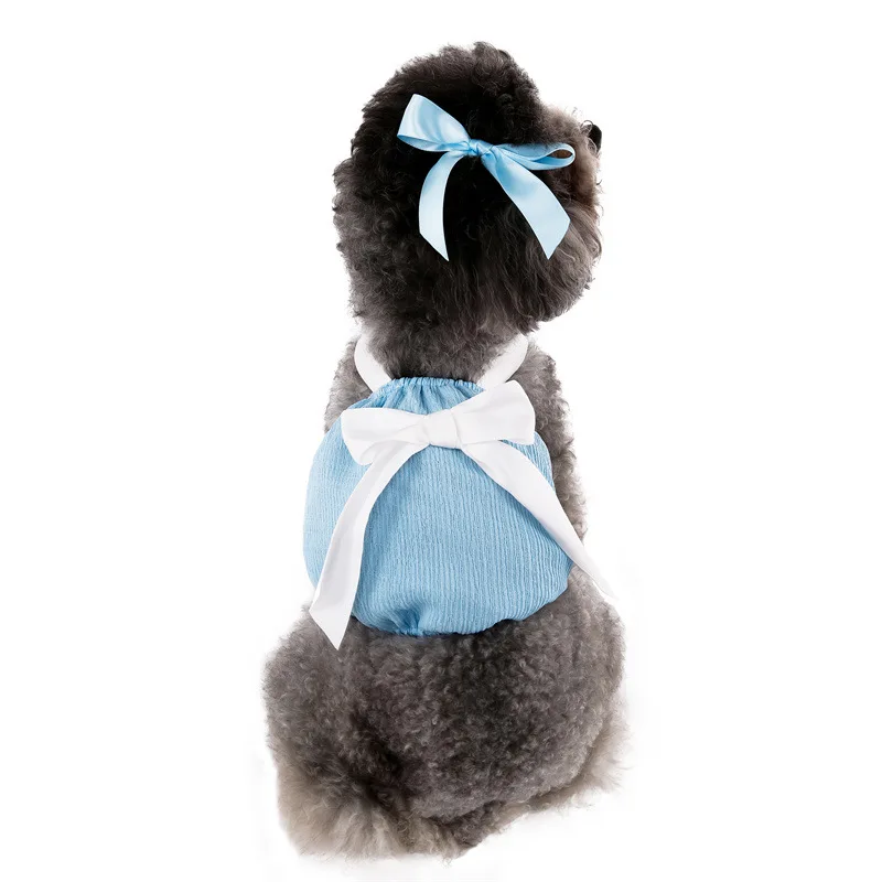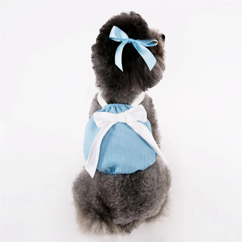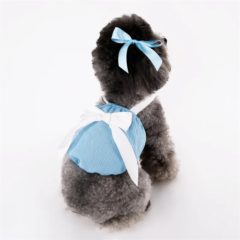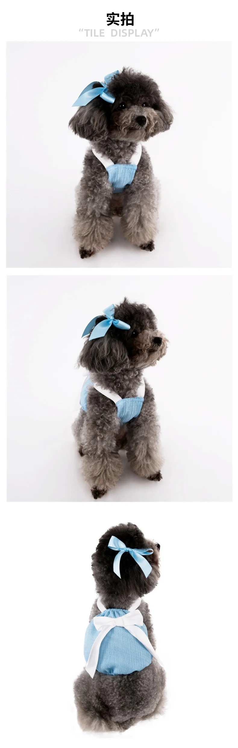 Camiseta sin mangas fina de primavera para mascotas, falda con tirantes y lazo de peluche Yorkshire, tocados con lazo para perros pequeños y gatos, ropa para cachorros