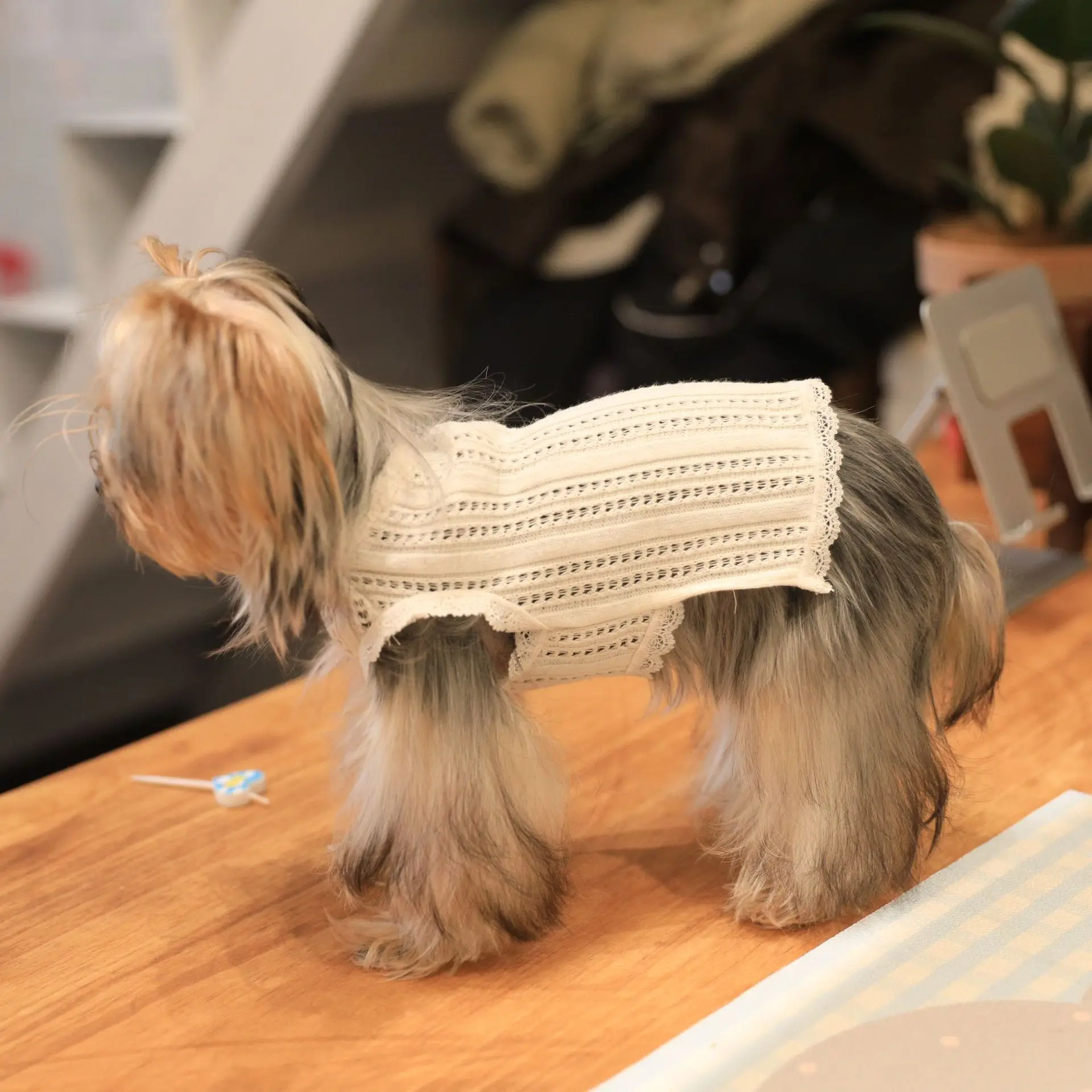 Camiseta sin mangas hueca transpirable para mascotas, ropa para perros, falda de encaje tejida para mascotas, ropa para cachorros, chaleco refrescante para perros