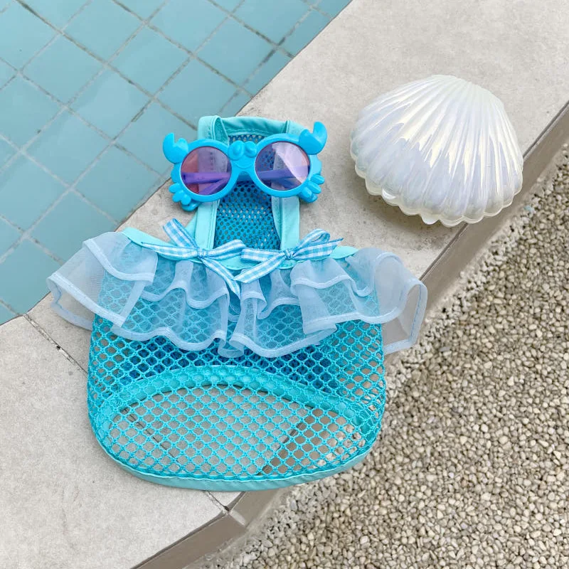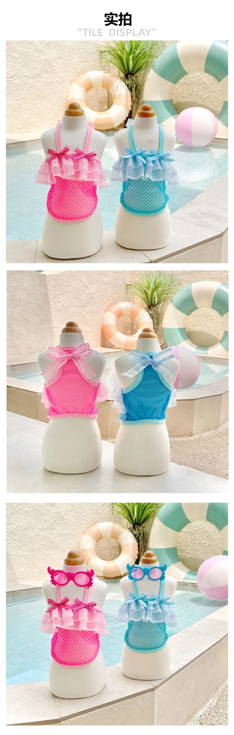 Camiseta sin mangas de malla para mascotas, bonito traje de baño de primavera, oso de peluche, camiseta sin mangas transpirable para perros pequeños + sombreros, ropa para cachorros