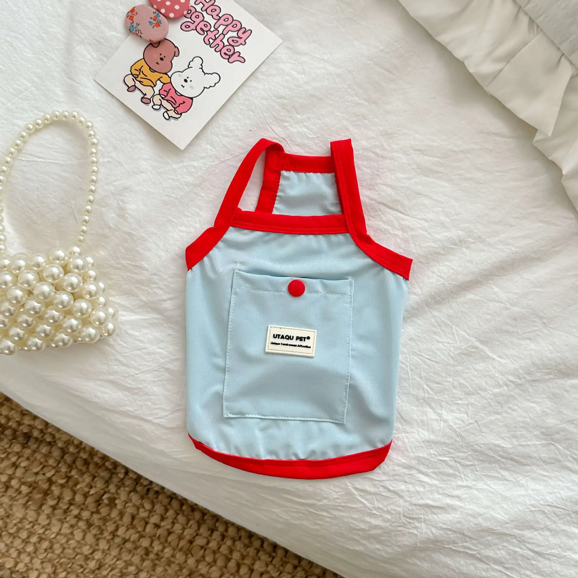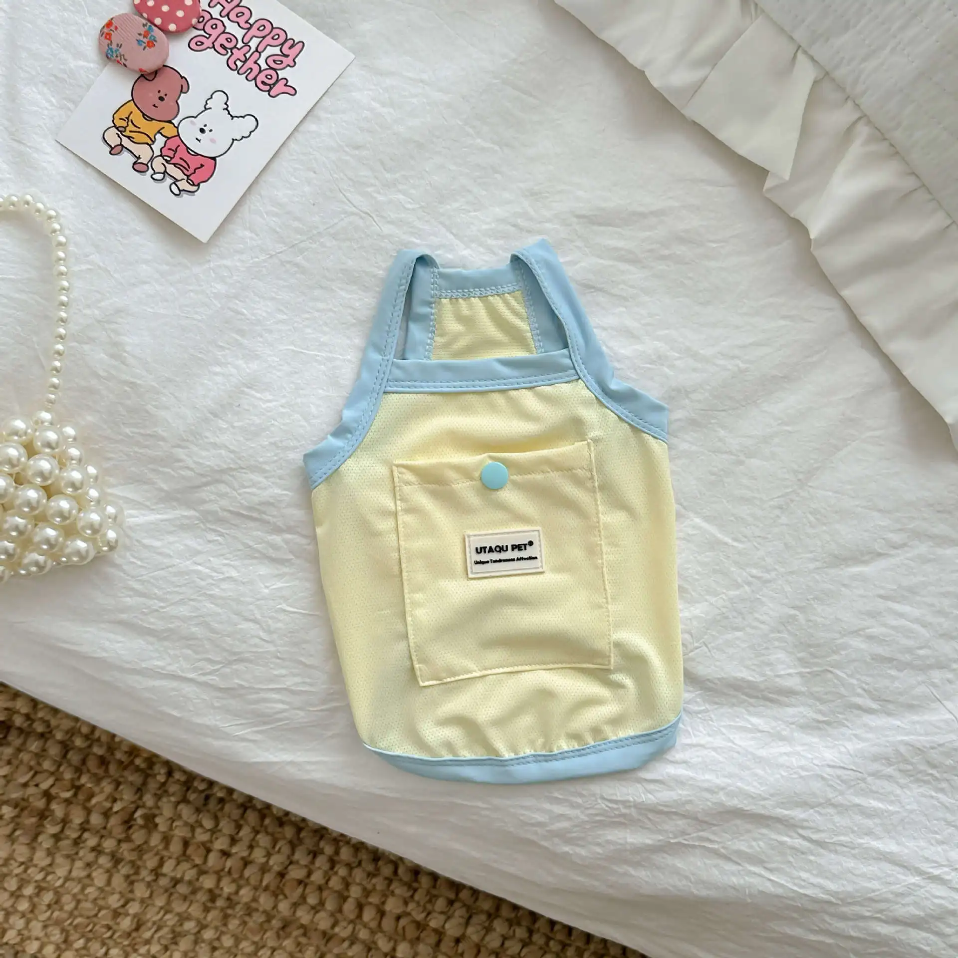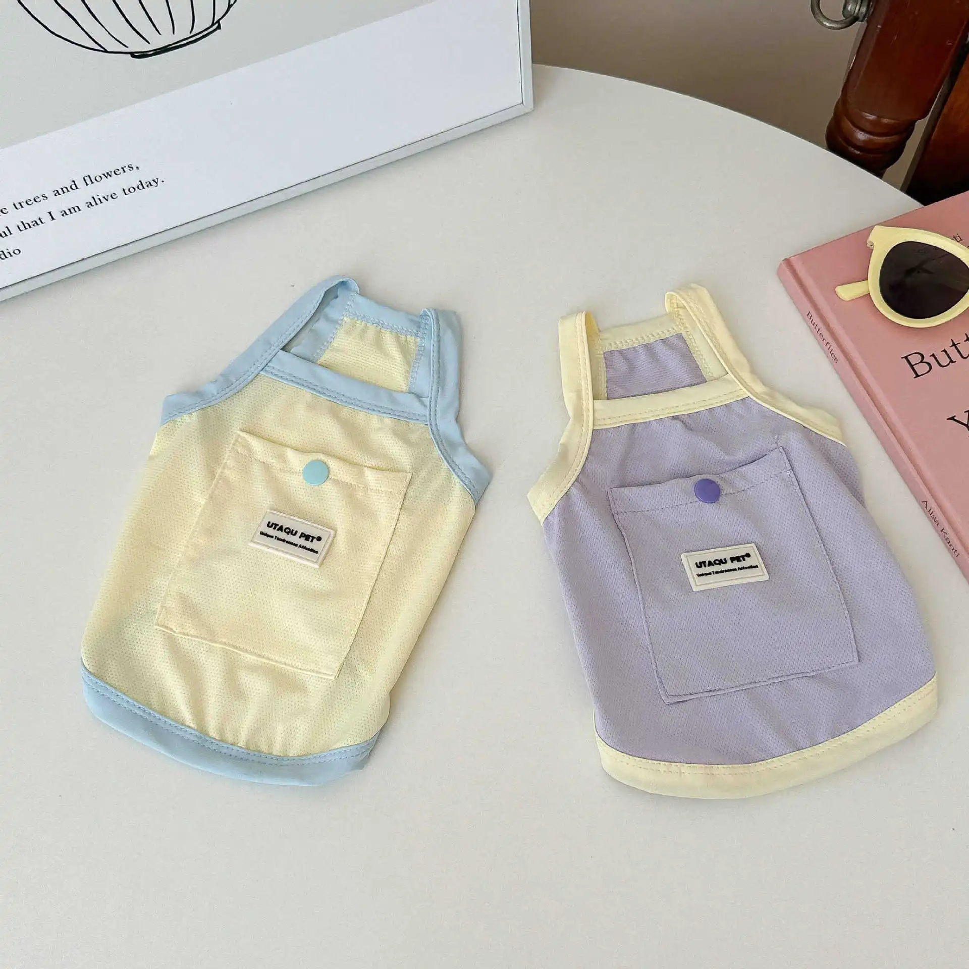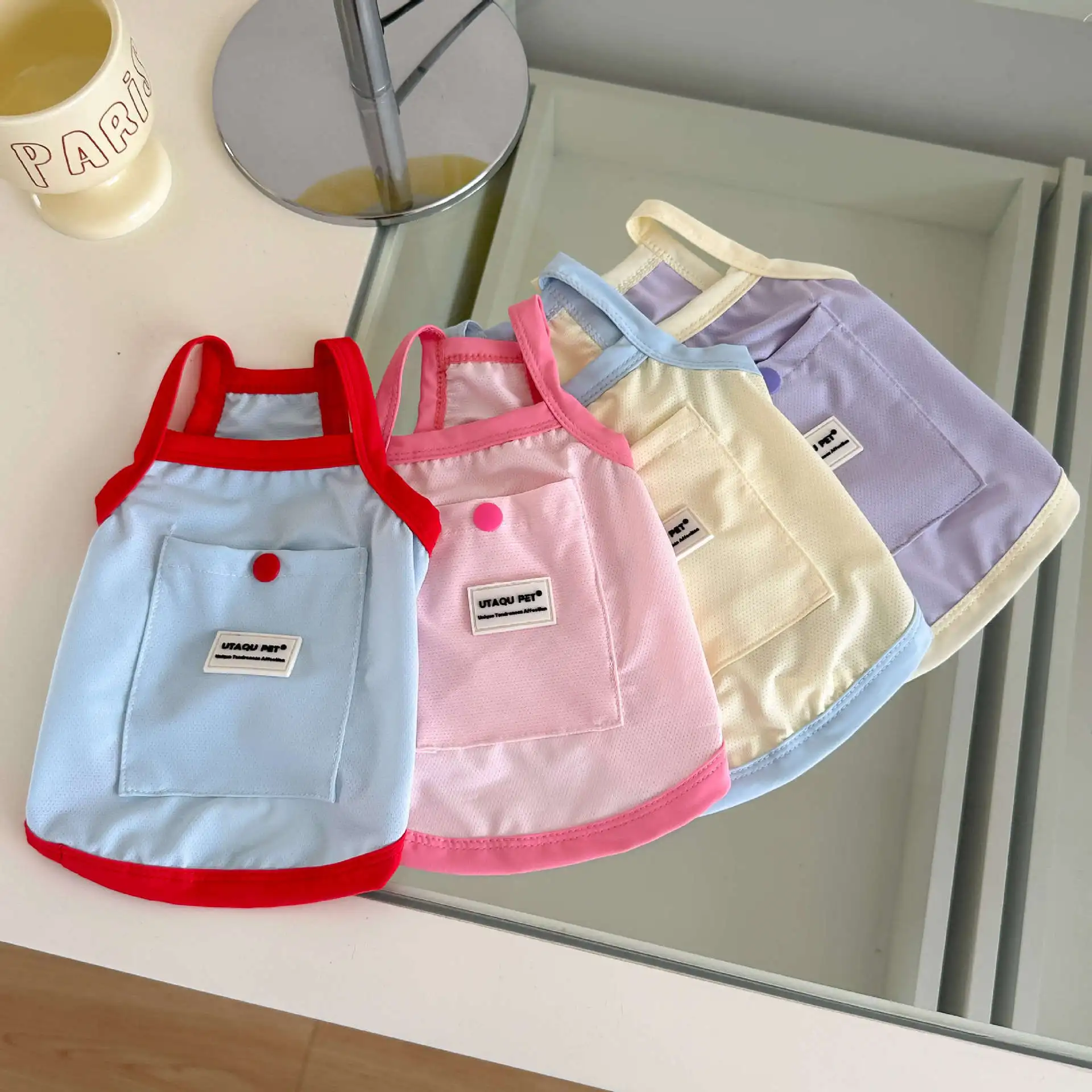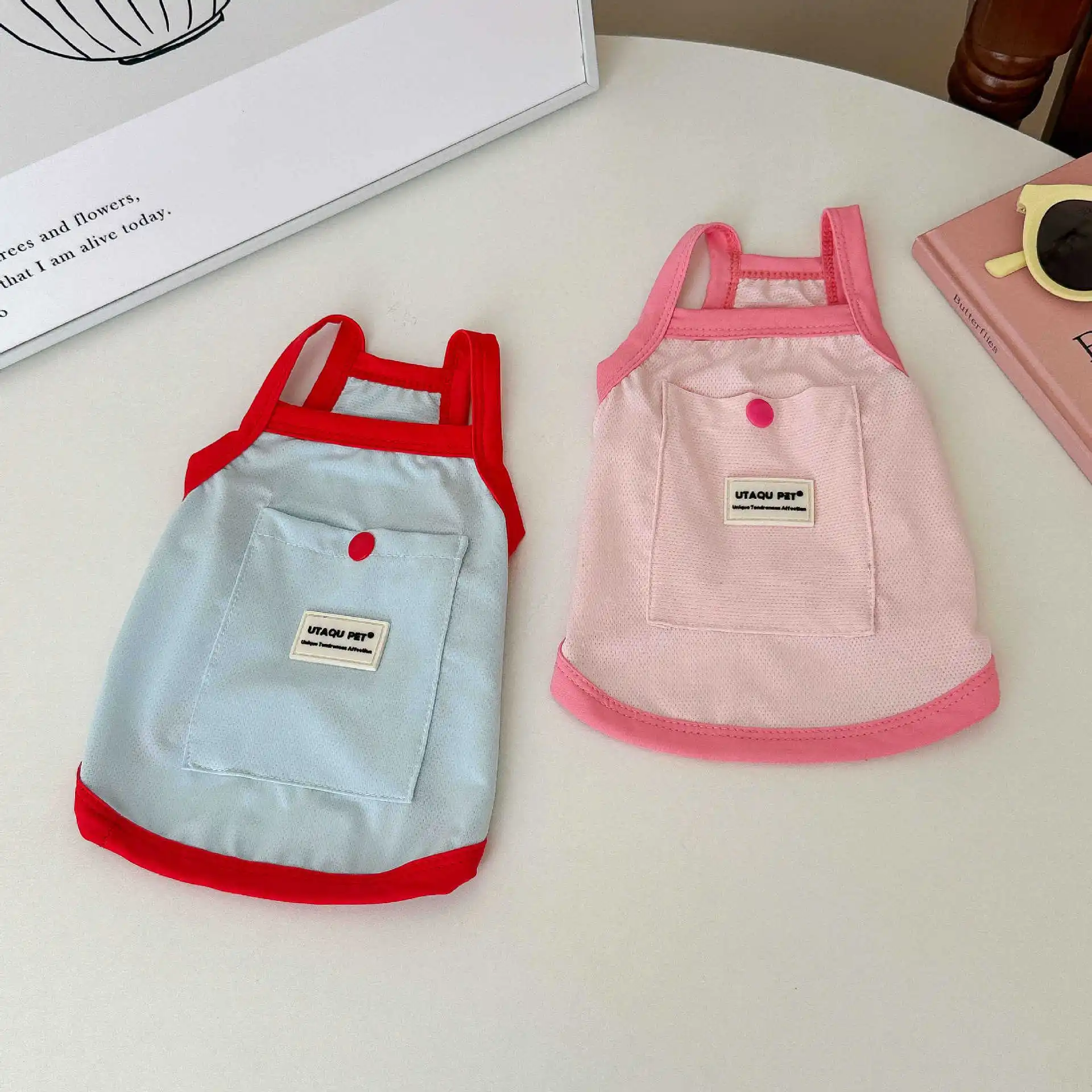 Camiseta sin mangas para mascotas, protección solar, refrigeración, azul, para exteriores, perros pequeños, gatos, ropa fina y transpirable para perros, ropa para cachorros pequeños
