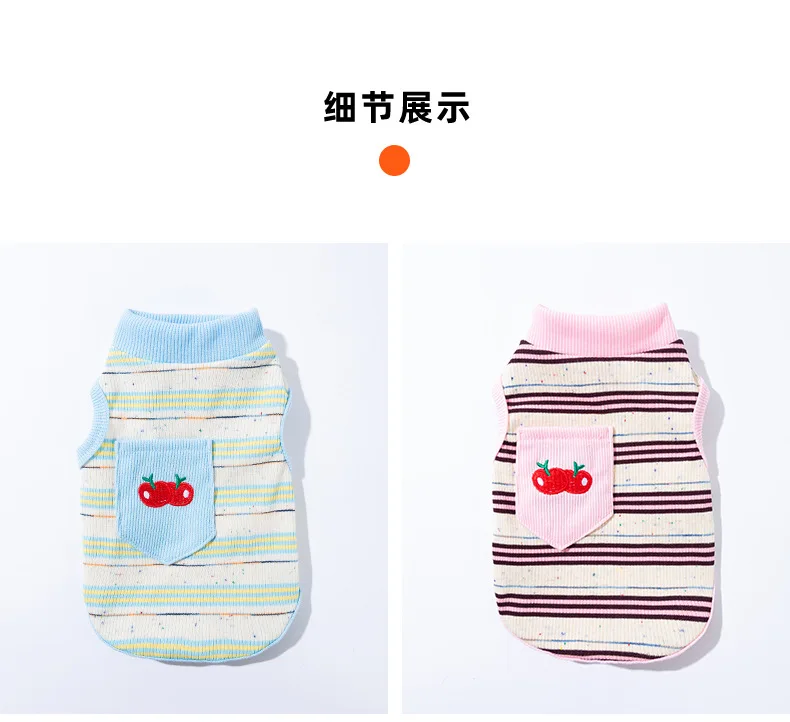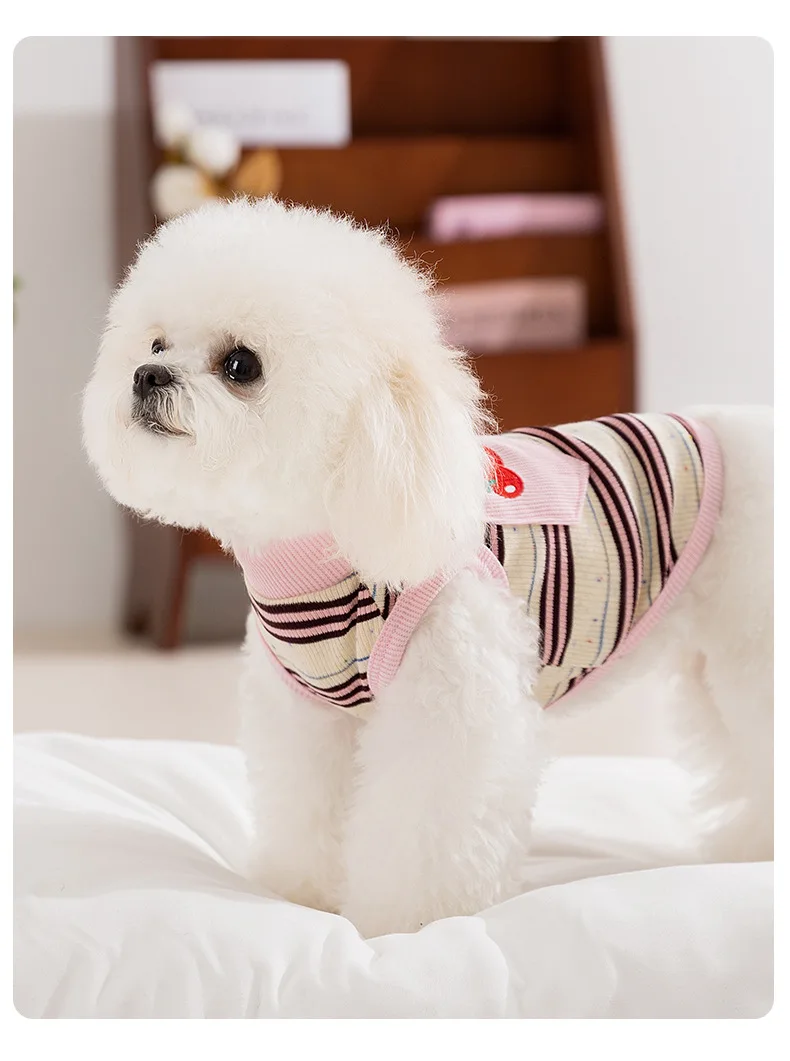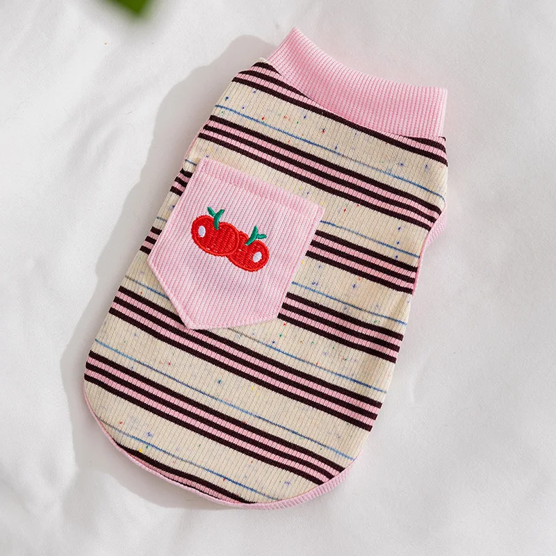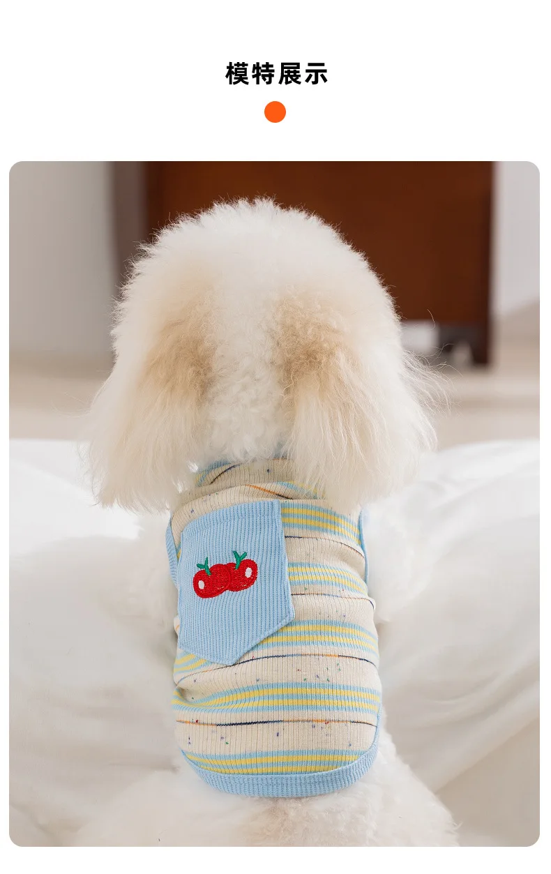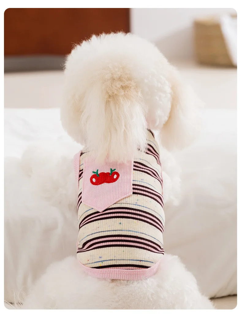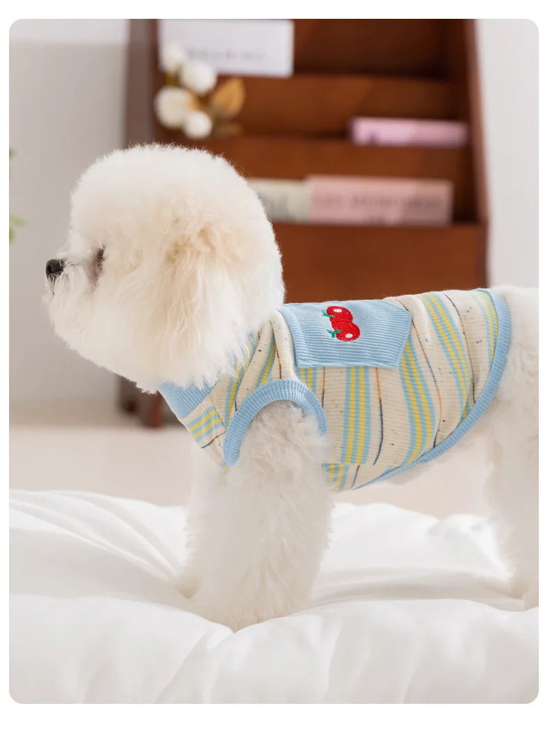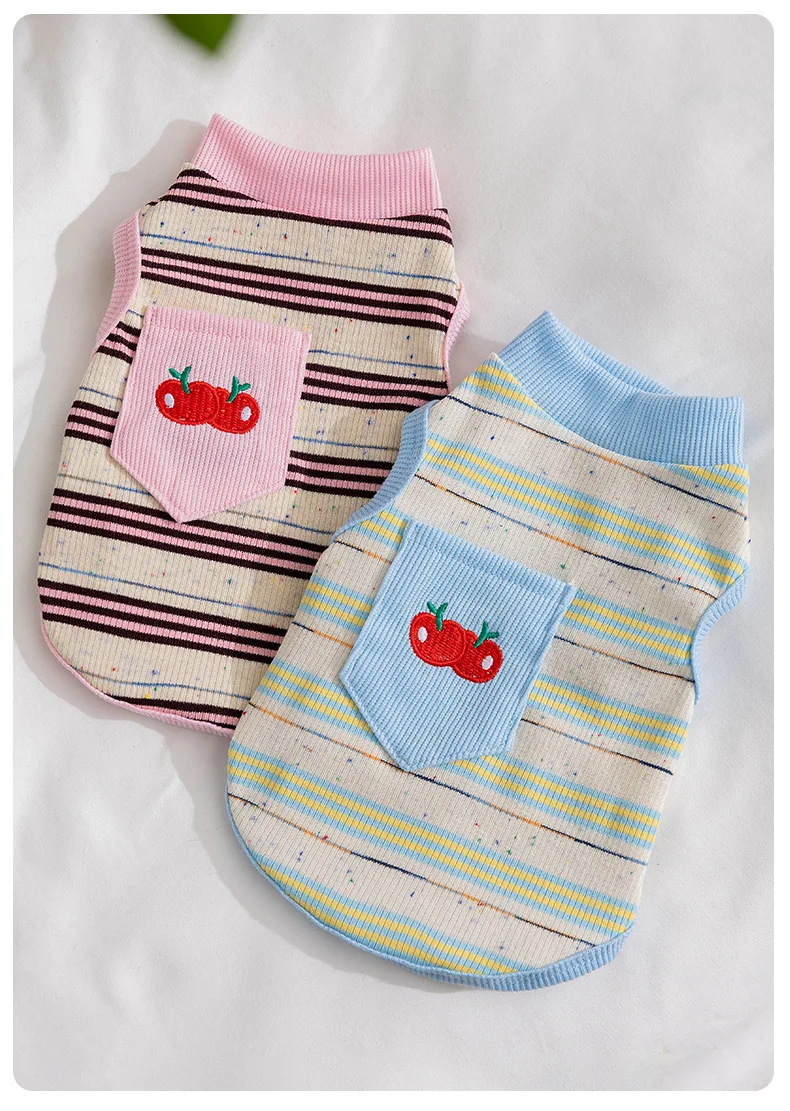 Camiseta sin mangas a rayas con bordado de cereza para mascotas, camiseta sin mangas fina de primavera para mascotas, Top para gato de Teddy York, ropa para cachorros, chalecos refrescantes