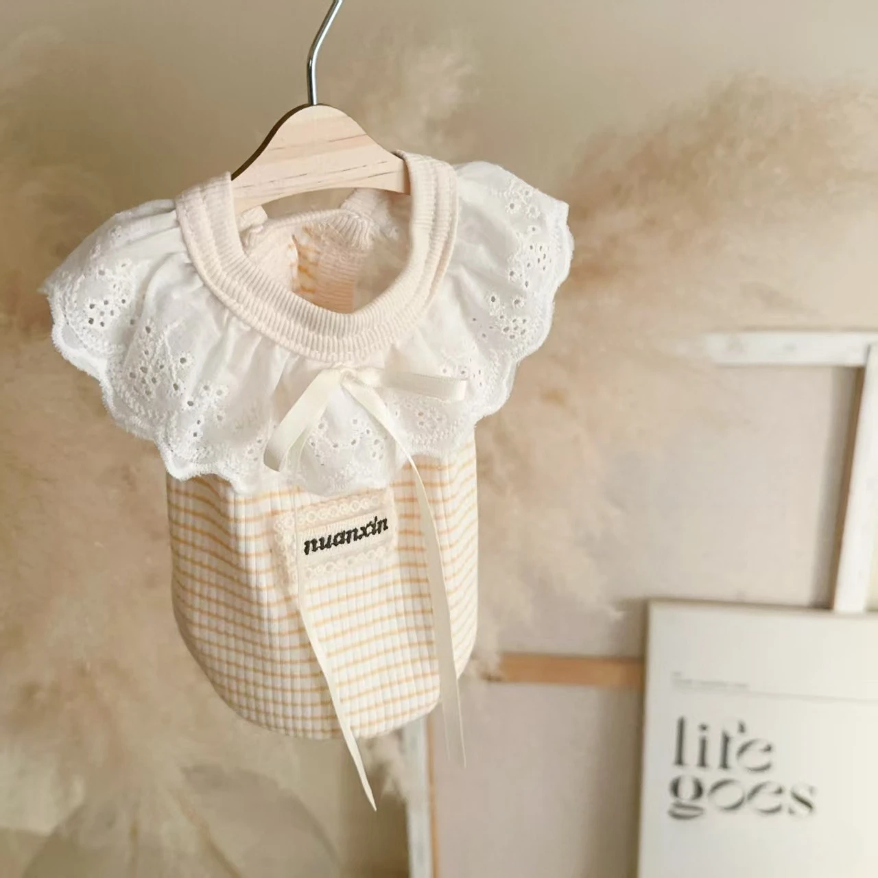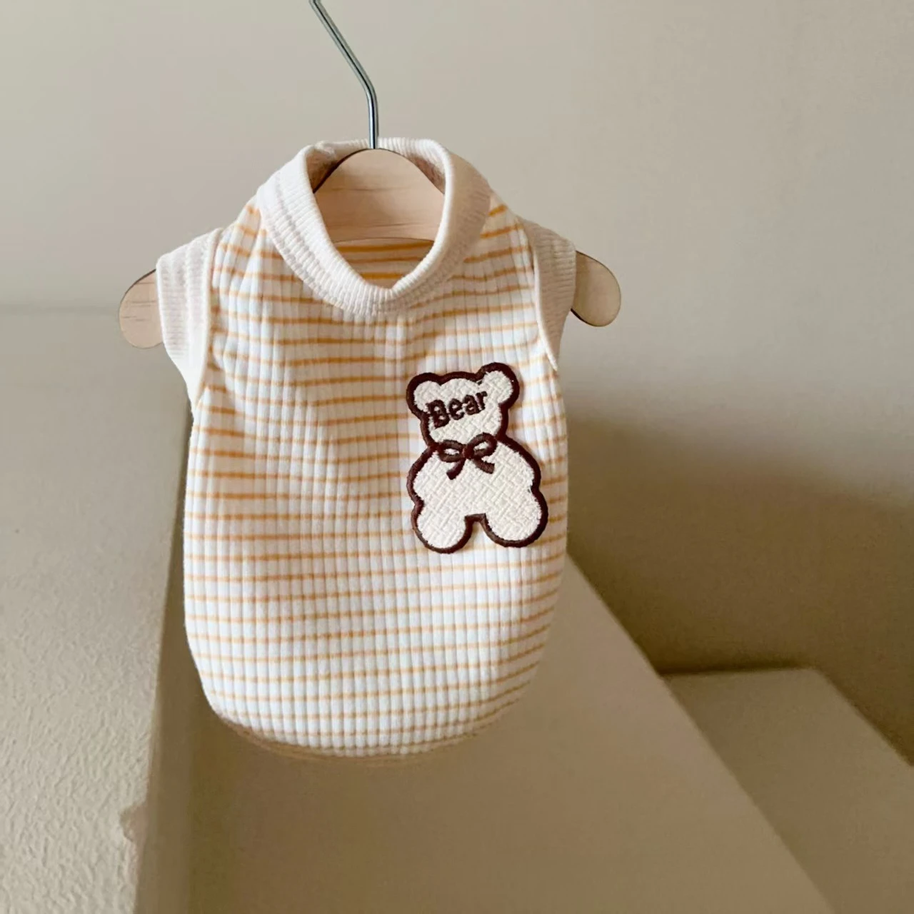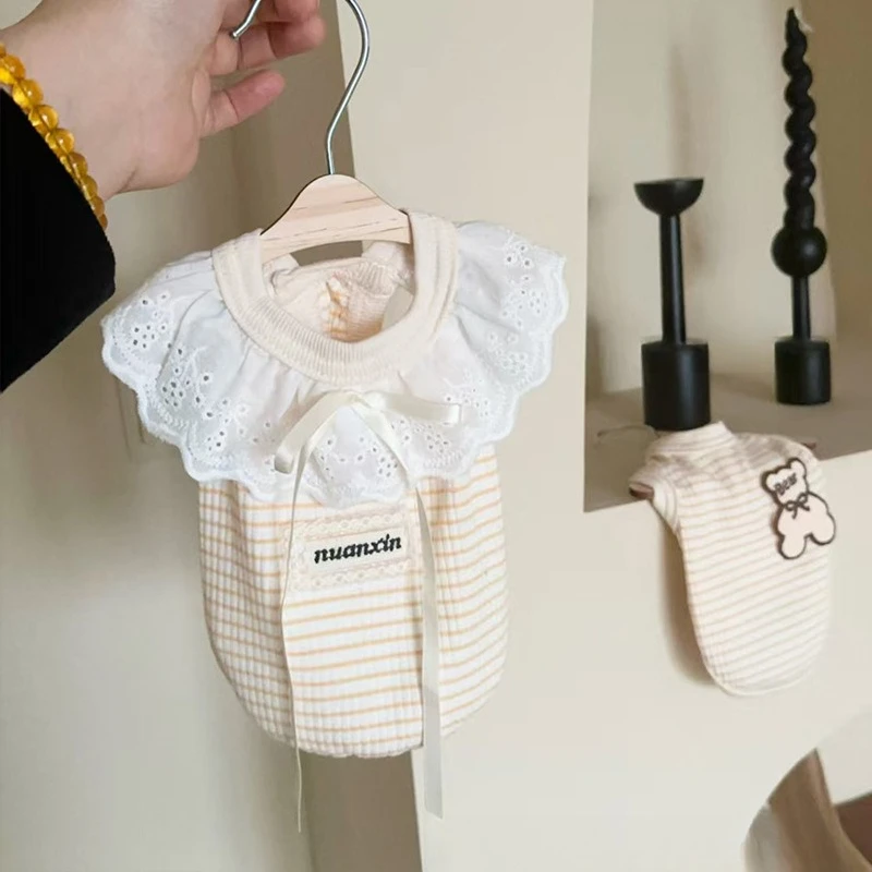 Camiseta sin mangas a rayas para perro, camiseta sin mangas de oso bonito de manga corta para perro pequeño, camiseta sin mangas con cuello de encaje para gato, ropa para cachorro