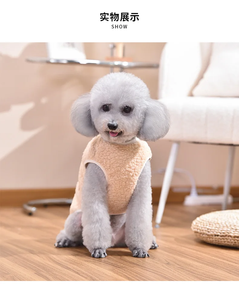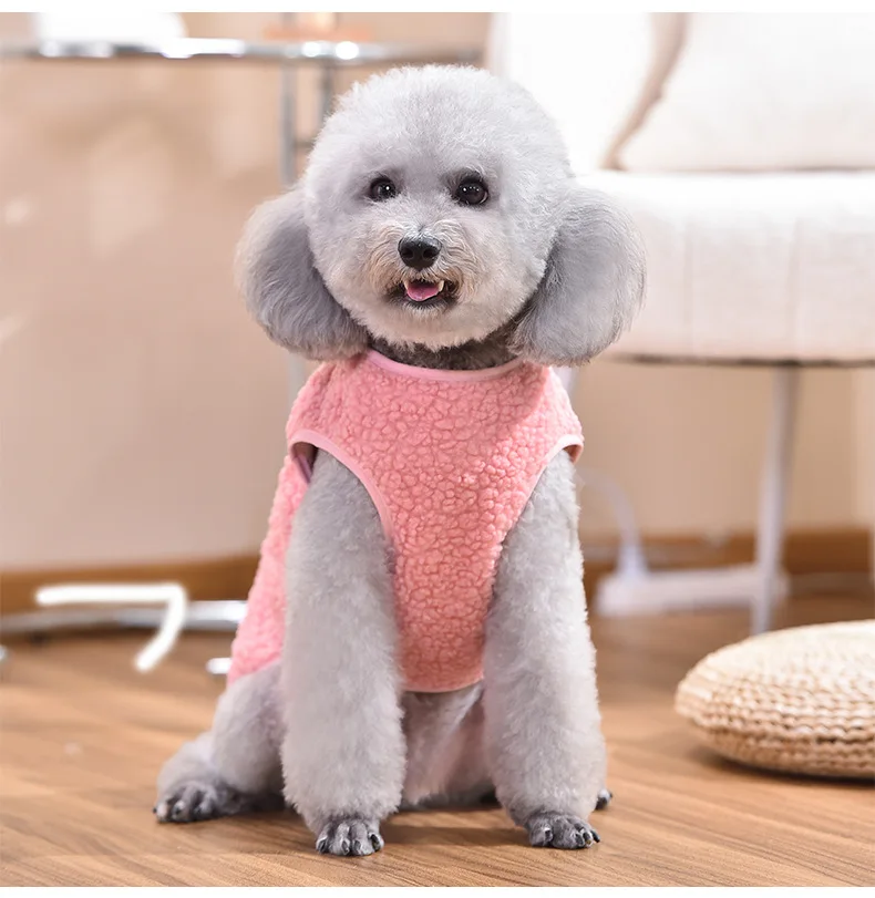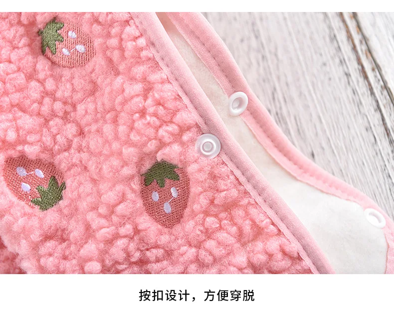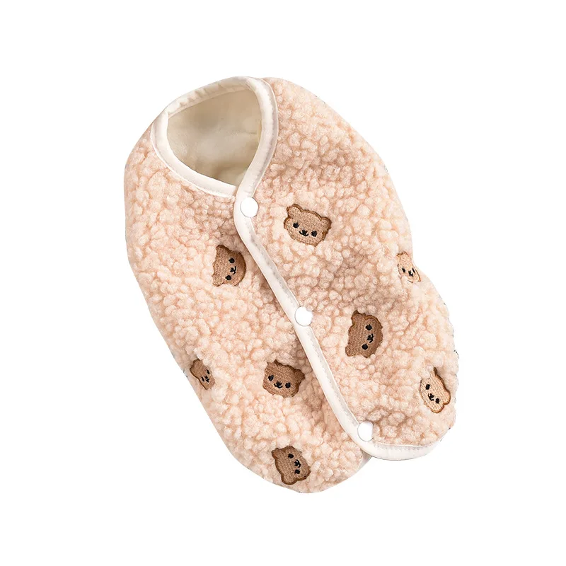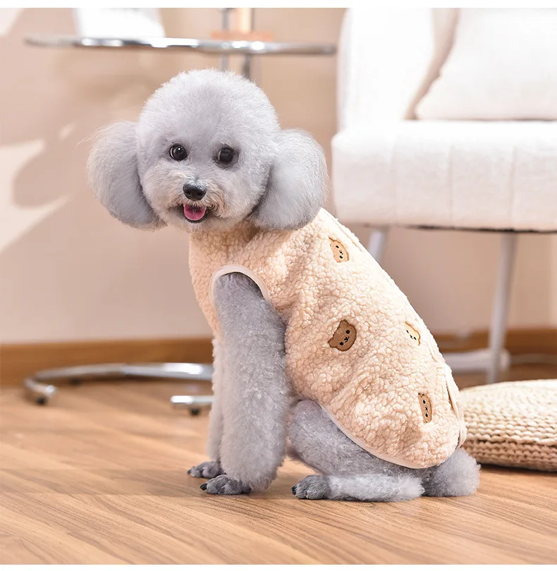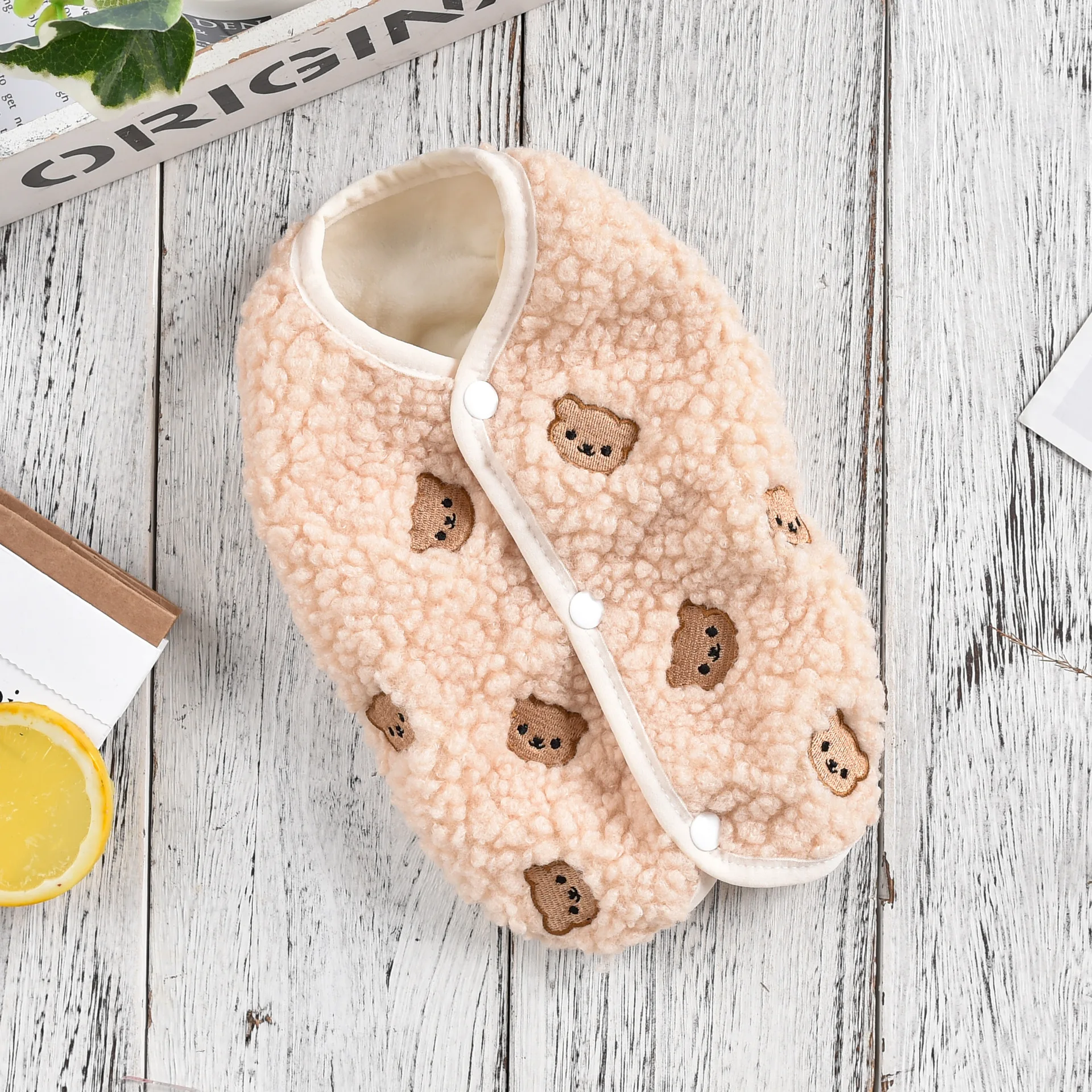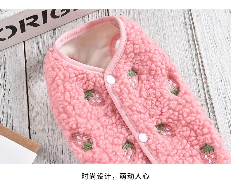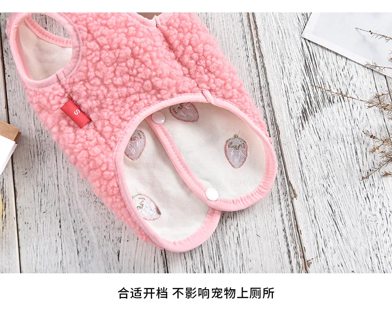 Camiseta sin mangas de terciopelo con hebilla trasera cálida de oso de fresa bonito de peluche para mascotas, camiseta sin mangas para cachorros, ropa para perros pequeños