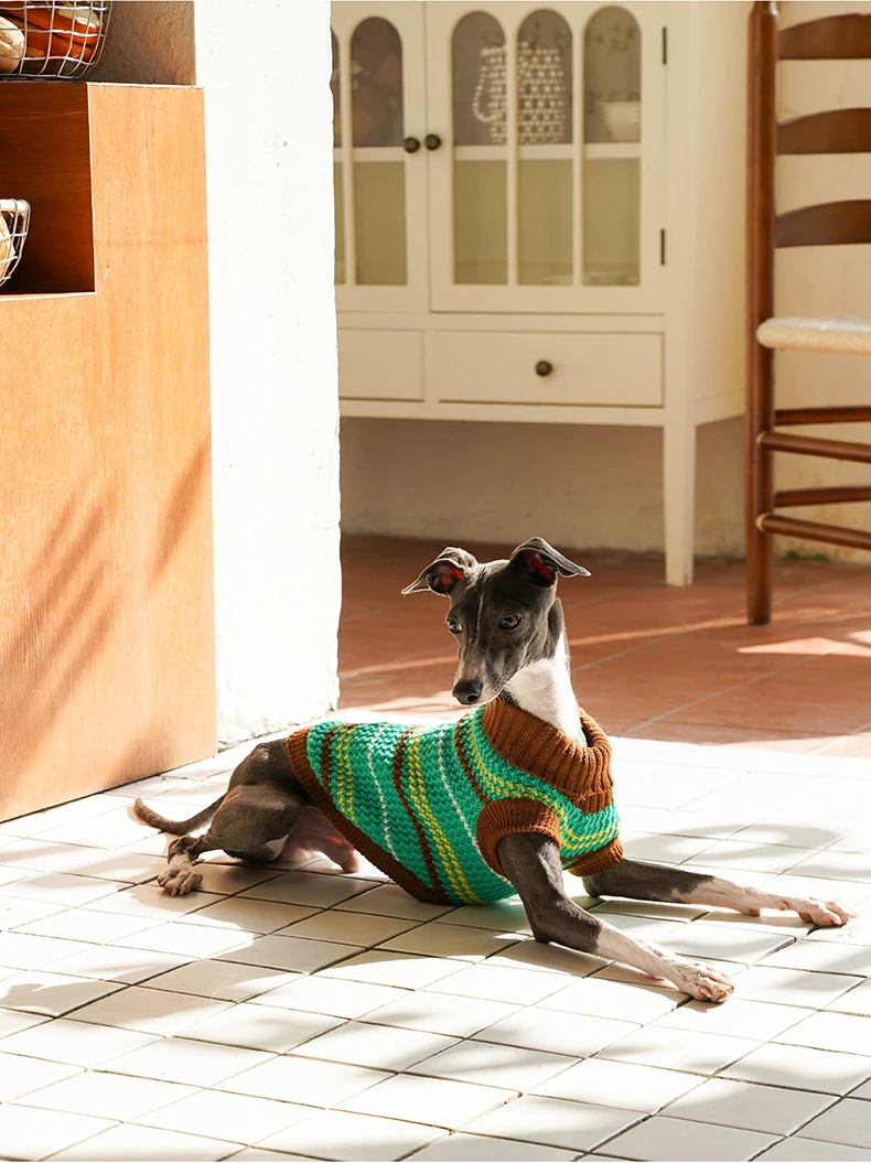 Camiseta a rayas hecha a mano para perros pequeños, abrigo elástico de manga corta para Italia, langosta Whippet, suéter suave, pijamas para perros