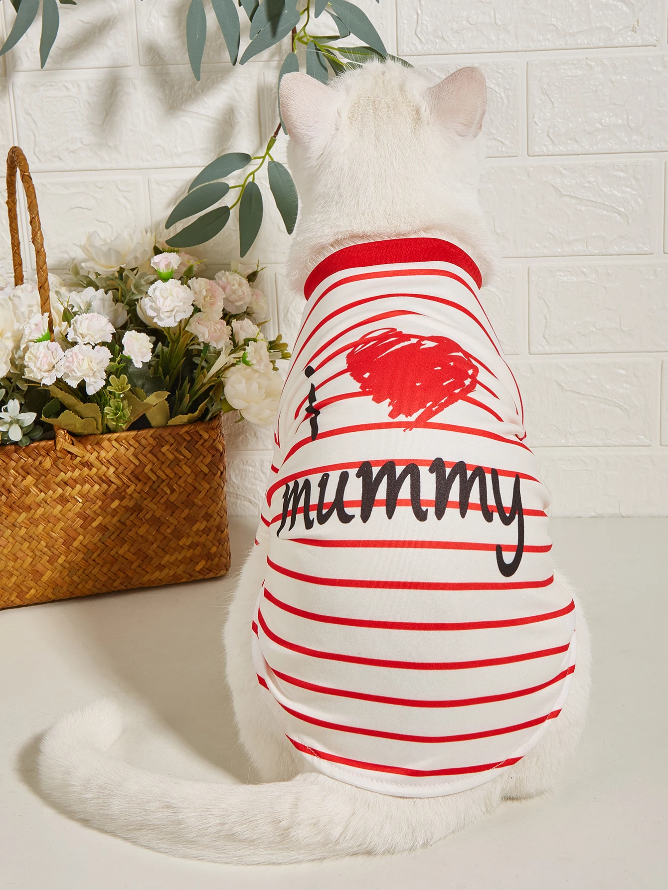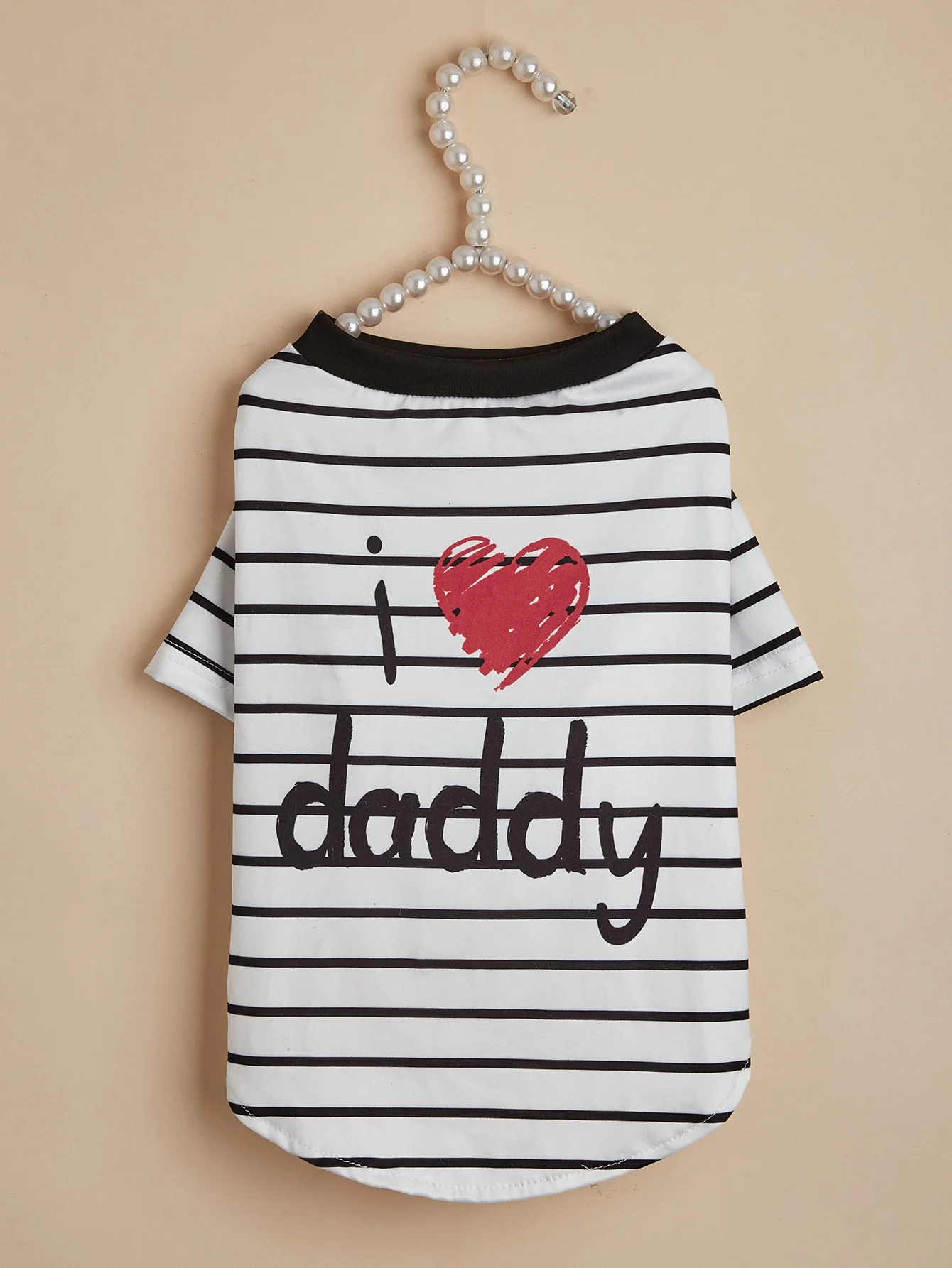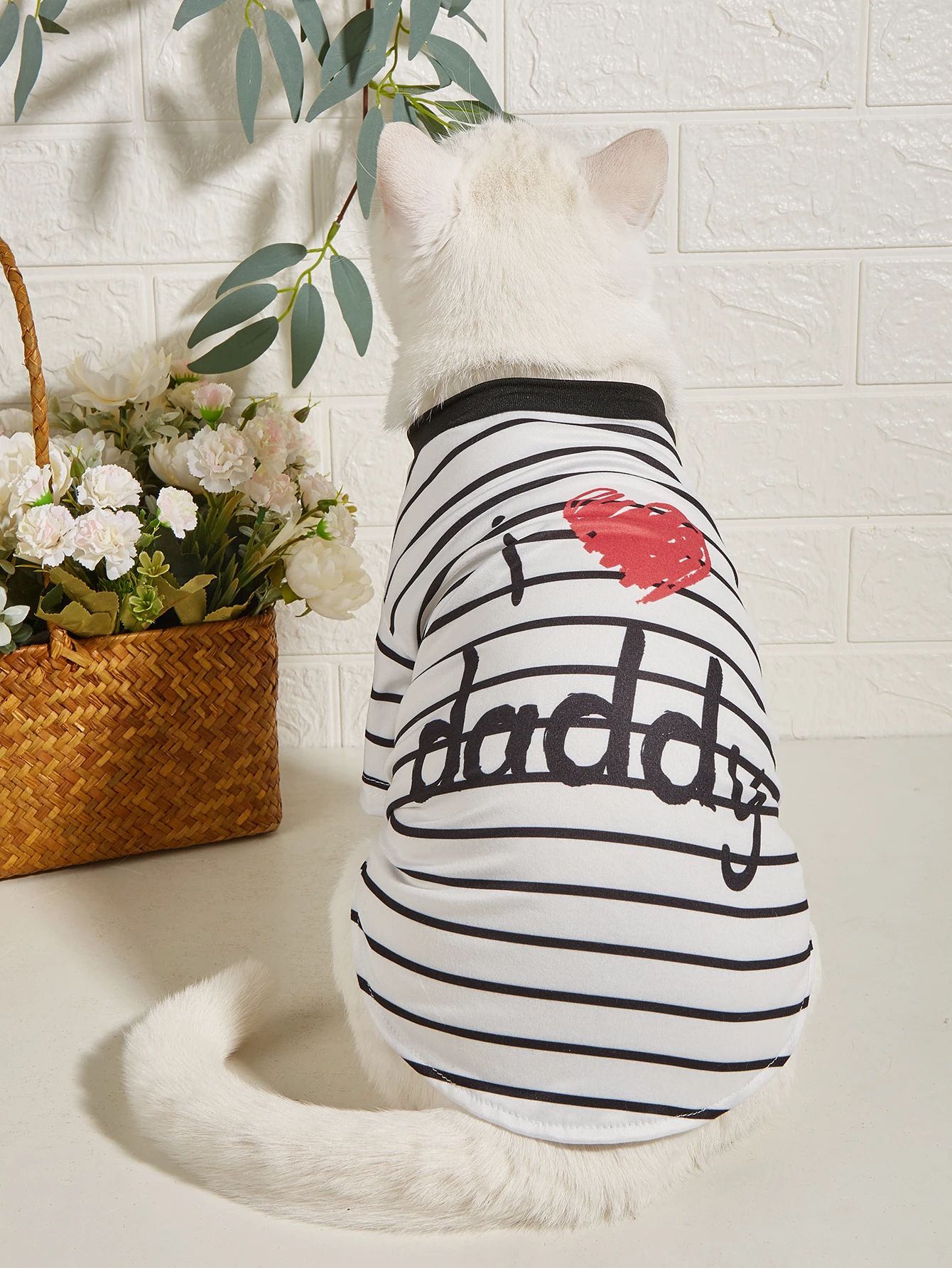 Camiseta a rayas para perro, ropa para mascotas, disfraz para el Día del Padre, estampado de corazón, cachorro, gatito