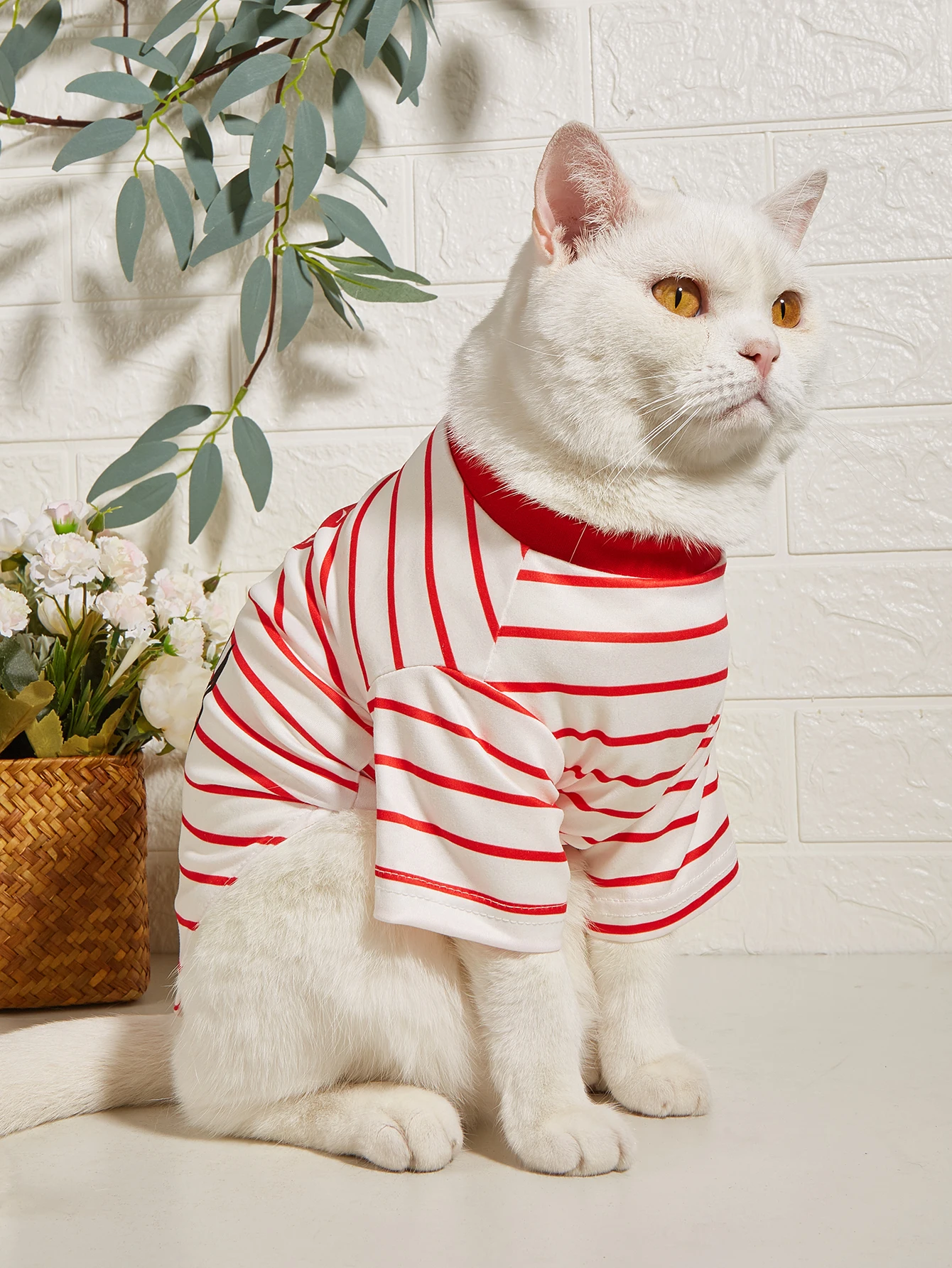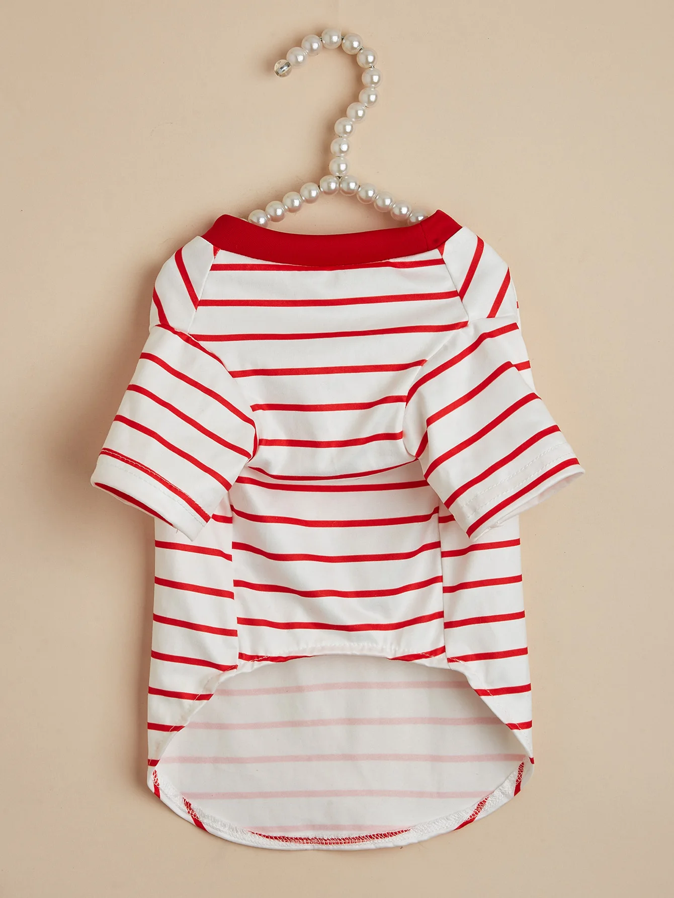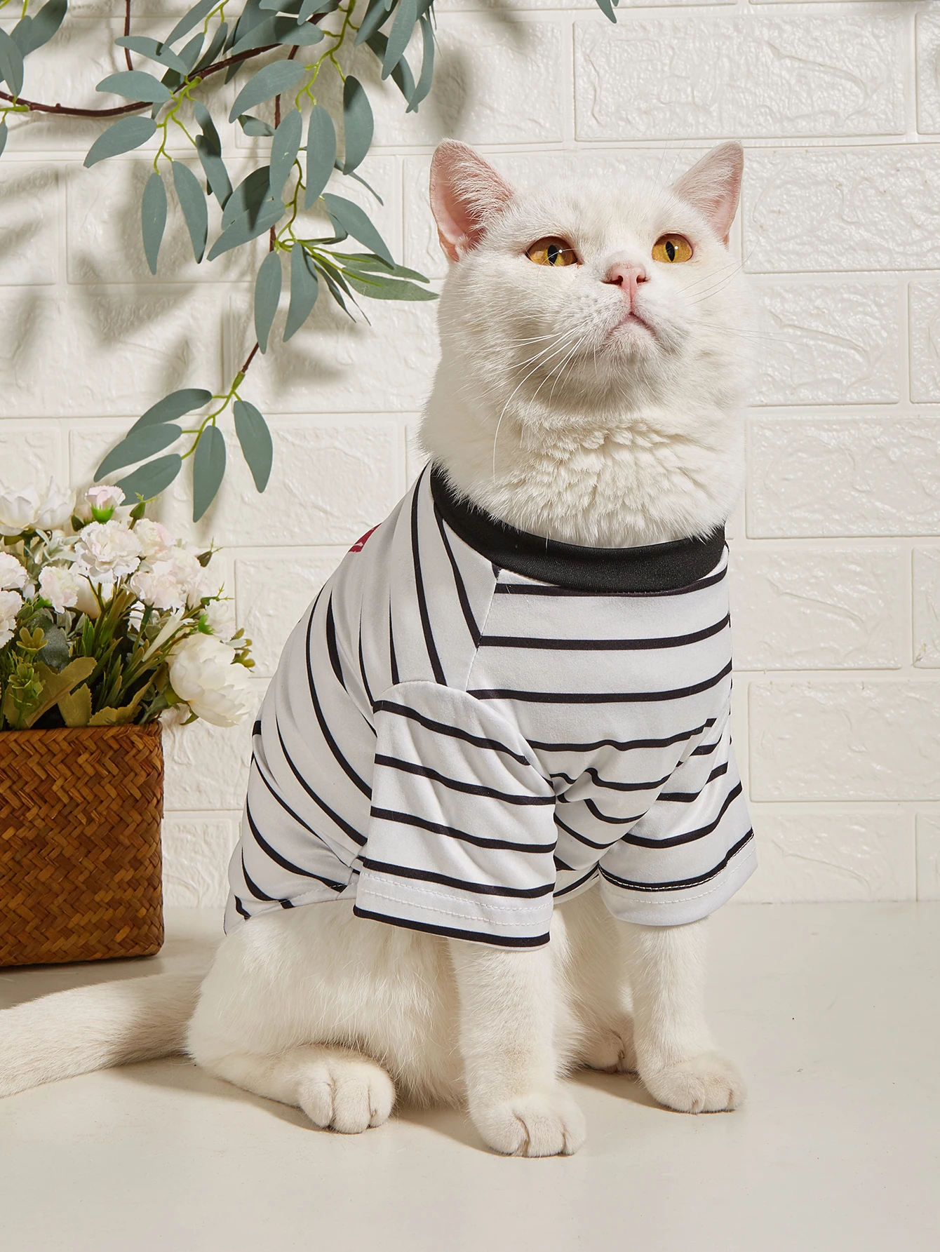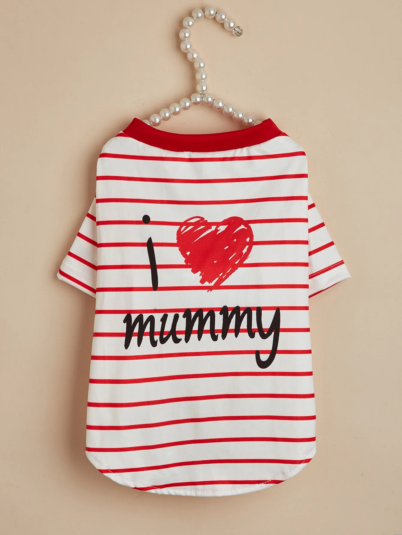 Camiseta a rayas para perro, ropa para mascotas, disfraz para el Día del Padre, estampado de corazón, cachorro, gatito