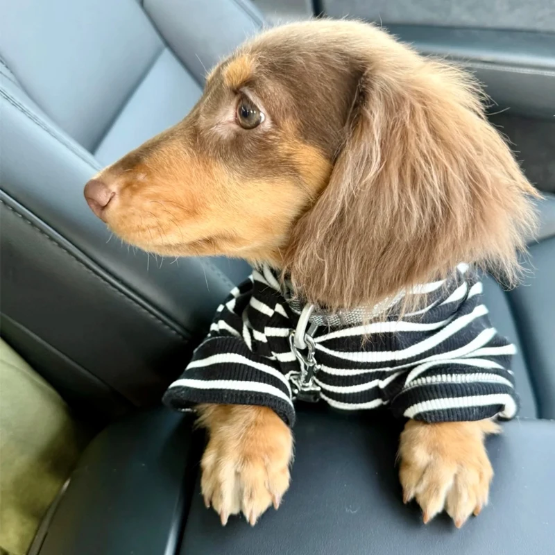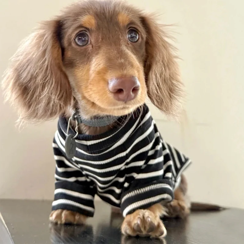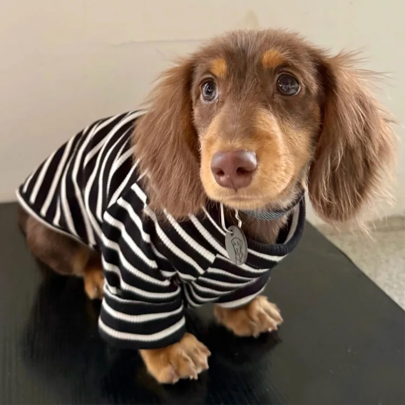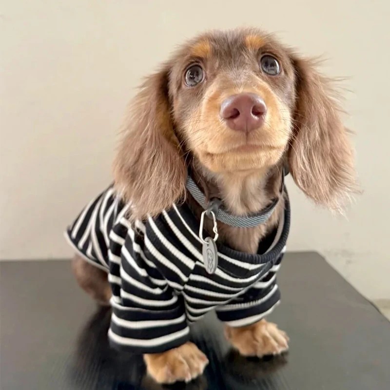 Camiseta a rayas Primavera Otoño para perros pequeños Wiener abrigo largo sin mangas para perros Dachshund pijamas suaves de verano para perros salchicha