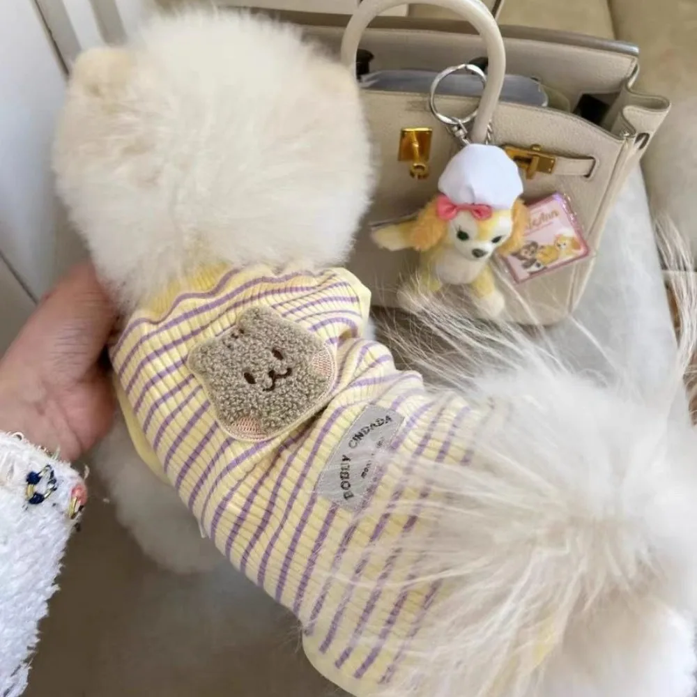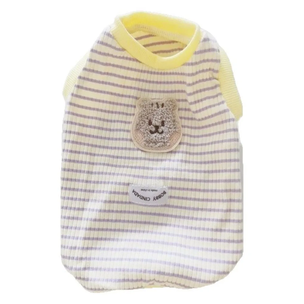Camiseta sin mangas fina a rayas para primavera/verano, cabeza de oso, Yorkshire, Teddy, Top para perro pequeño, chaleco refrescante para perro, ropa para cachorro, camisa