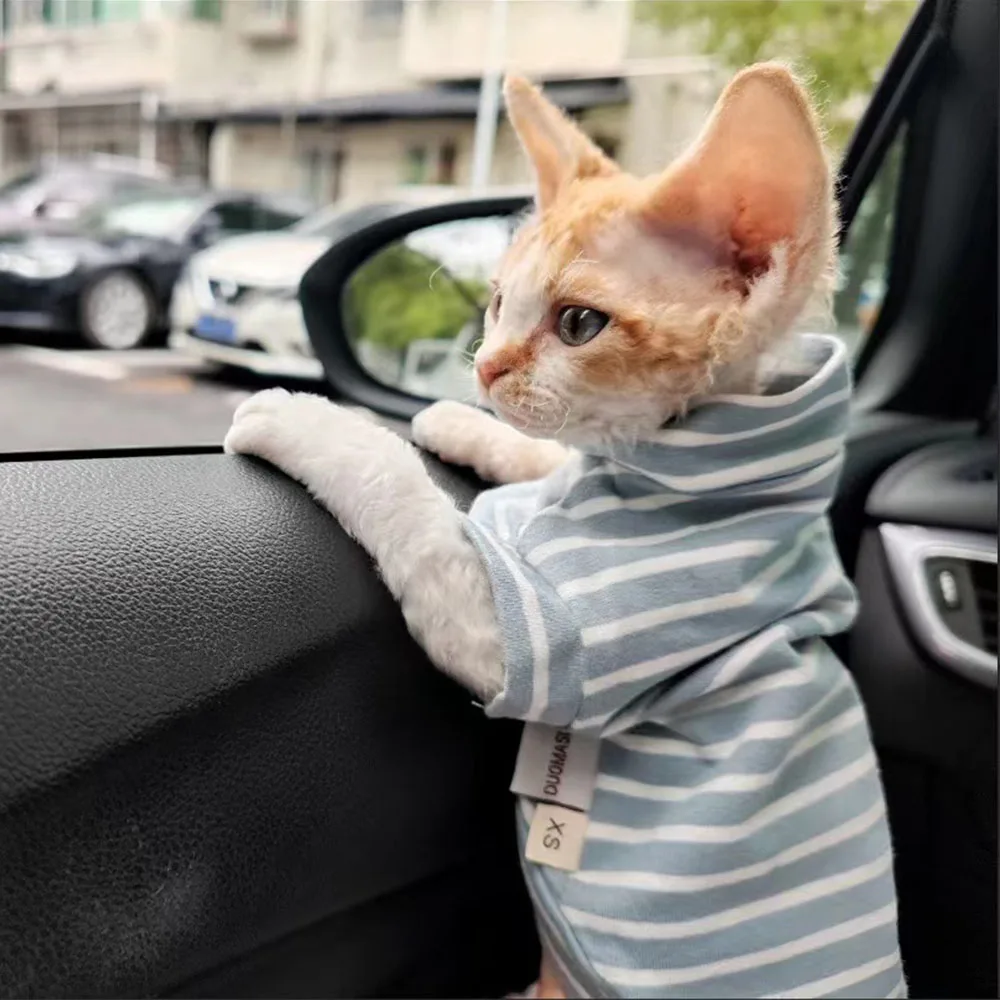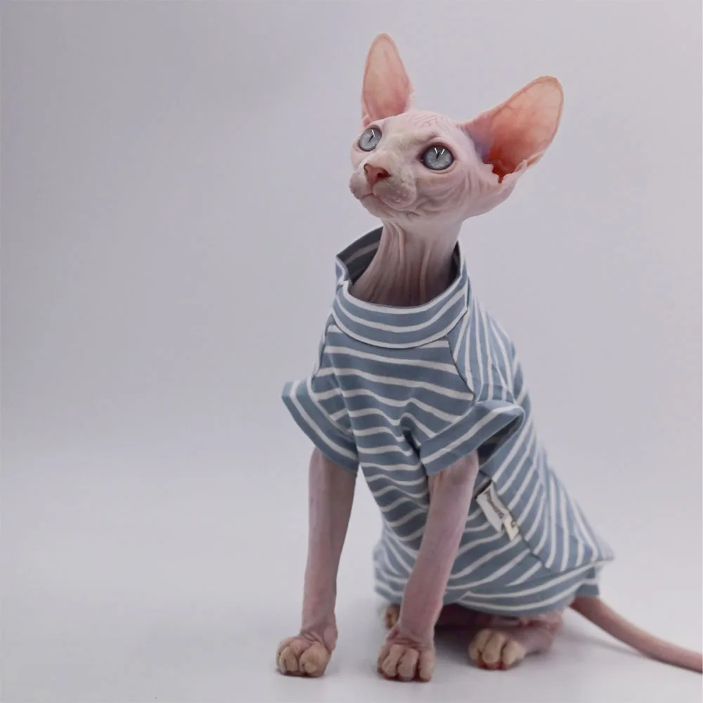 Camiseta suave para mascotas, ropa para gatos Sphynx en primavera, mono cálido de lana a rayas para gatitos y perros, camisa de manga corta Devon Rex