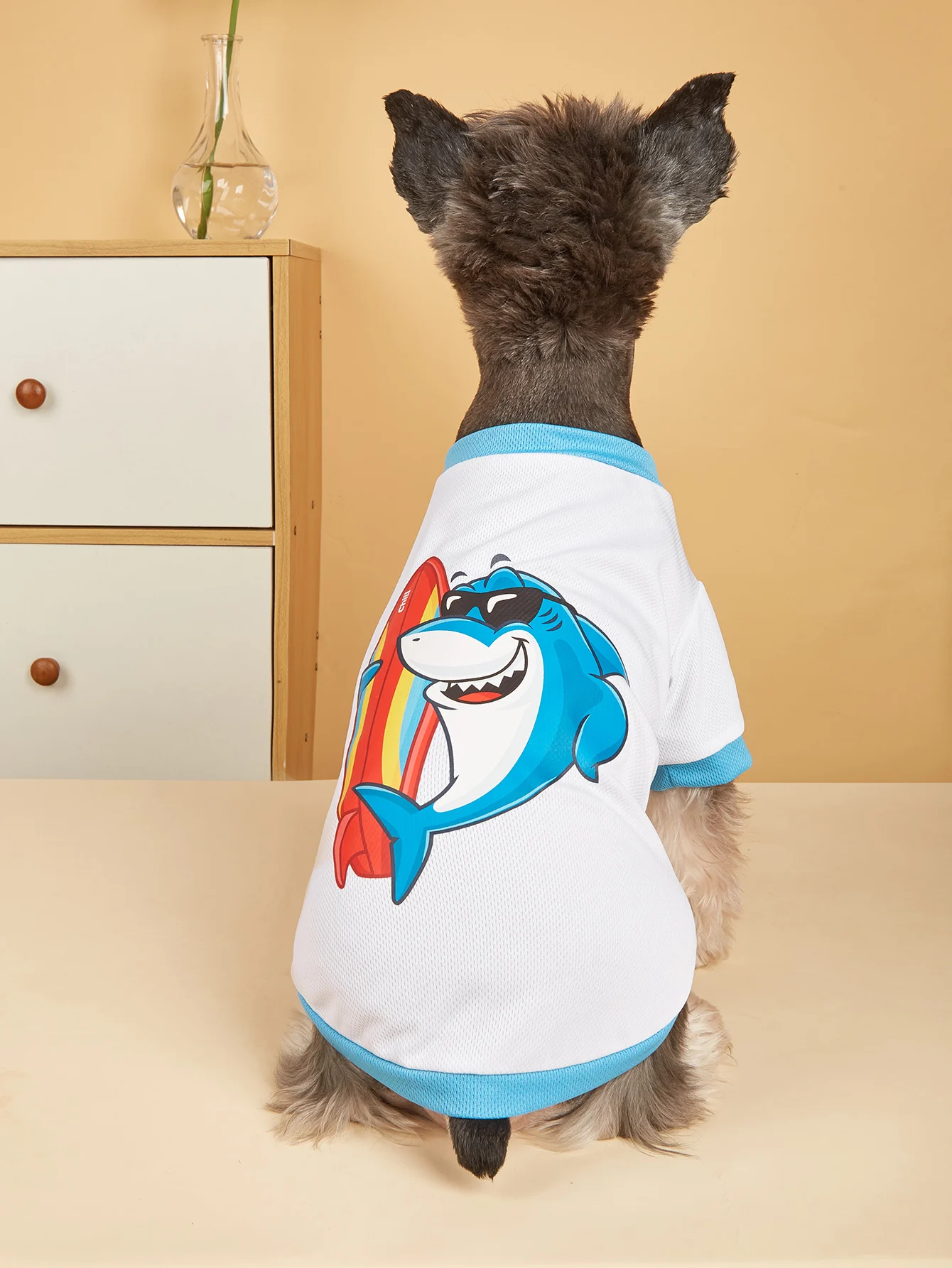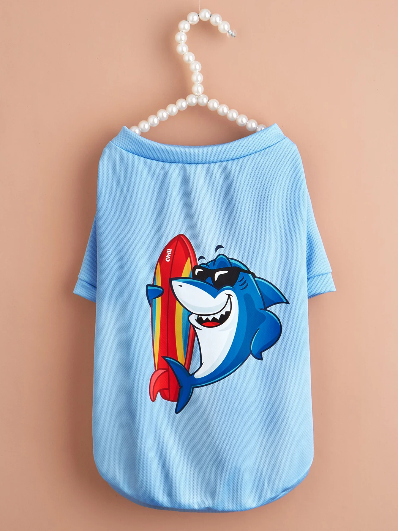 Camiseta de tela para perro y gato, ropa con estampado de tiburón bonito, disfraz de gatito