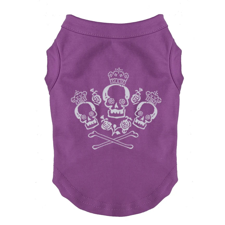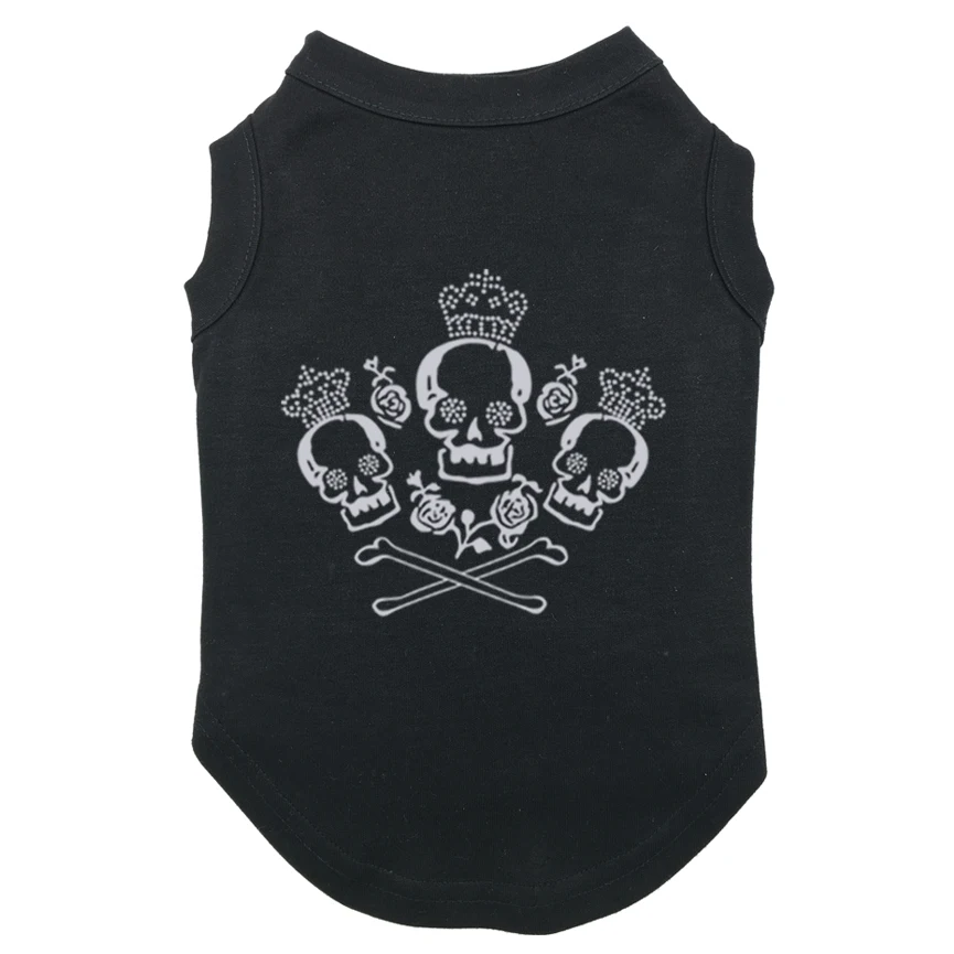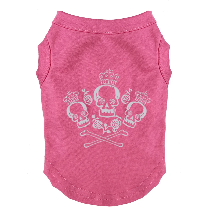 Camisetas con estampado de calavera rosa para mascotas, ropa barata de poliéster, camisetas sin mangas para todas las estaciones, gran oferta