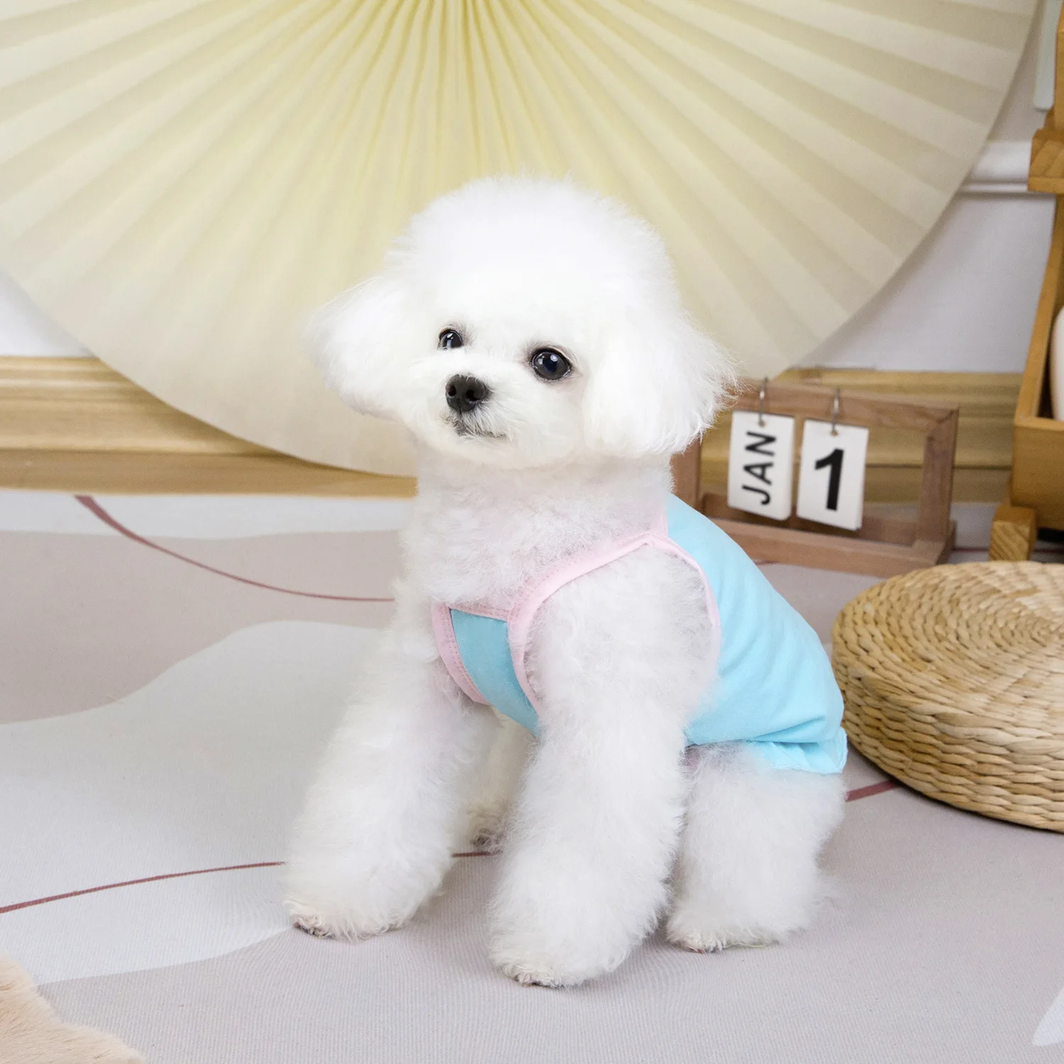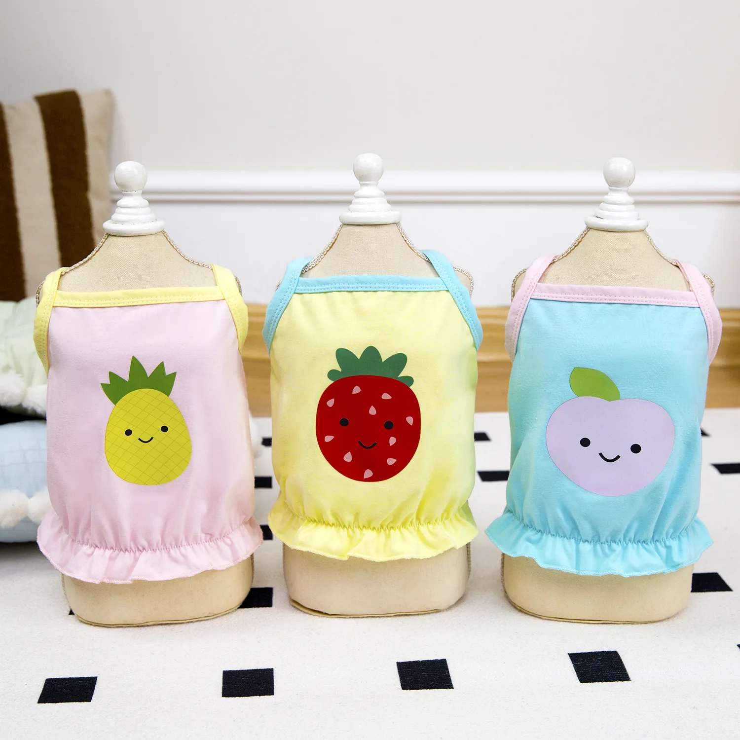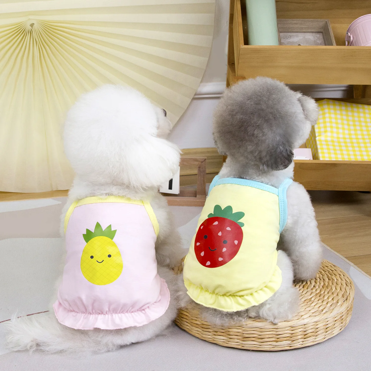 Camisola contrastante de primavera para mascotas, ropa fina para perros, chaleco con estampado bonito para gatos, vestidos para perros pequeños, ropa para cachorros