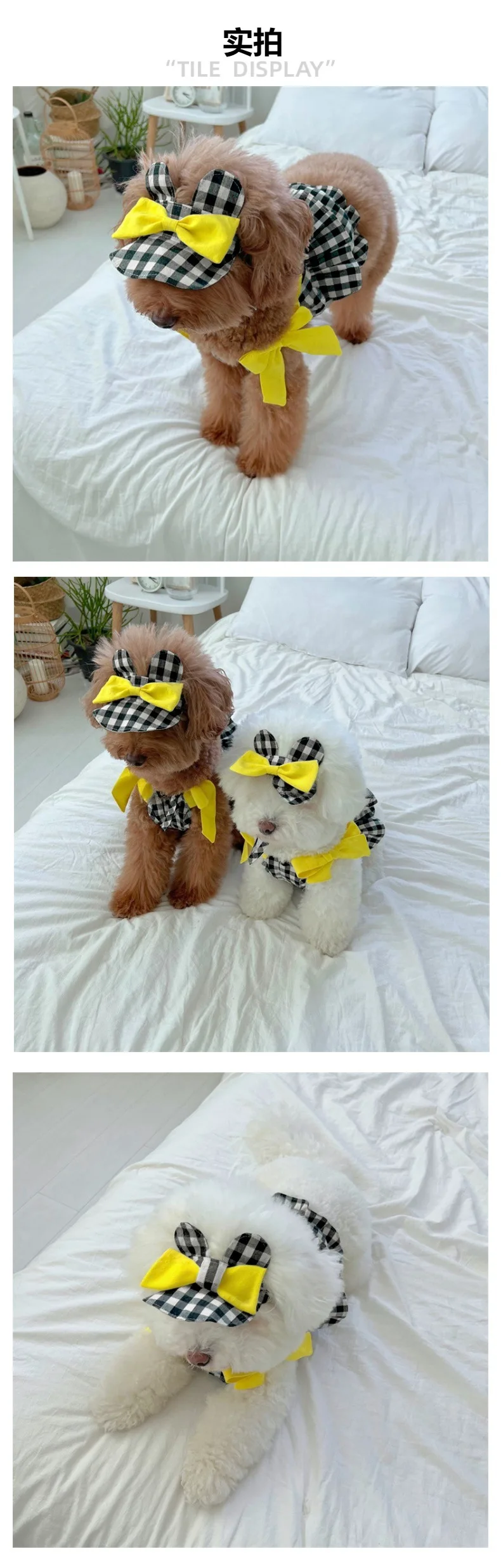 Camisola a cuadros de primavera para mascotas, chaleco con orejas de osito, sombrilla, sombrero, Top pequeño y mediano para gato, conjunto de camiseta de 2 piezas