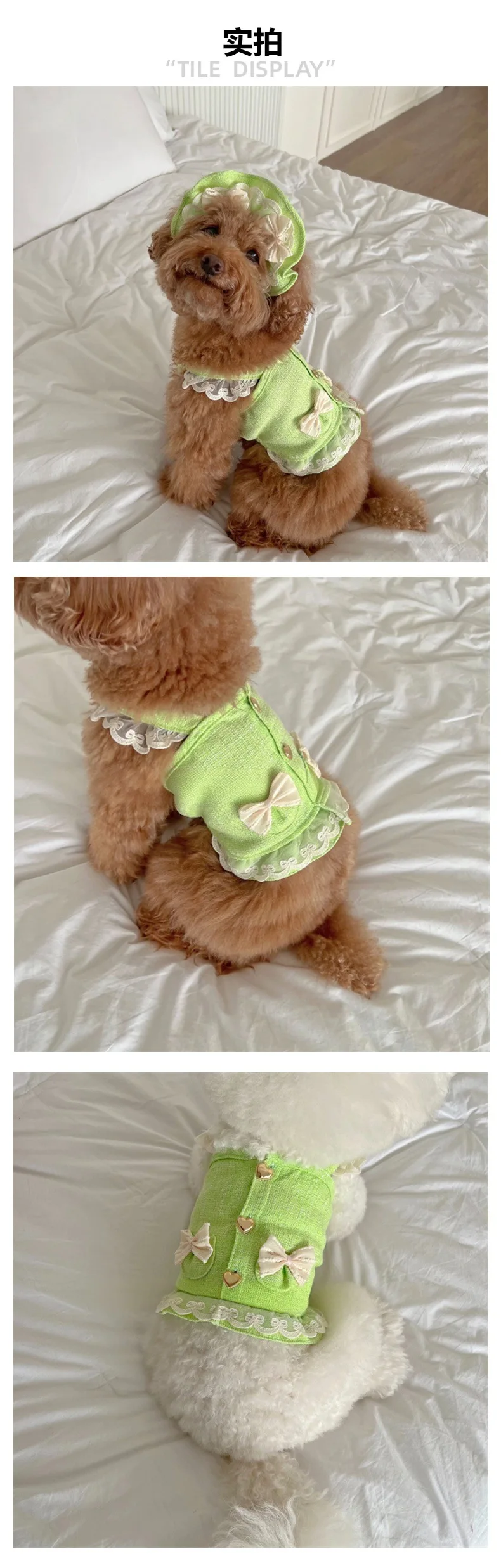 Camisola de encaje con lazo para mascotas, chaleco para gatos pequeños y medianos, ropa de primavera, conjunto de 2 piezas, sombrero de encaje, vestidos para cachorros para perros pequeños