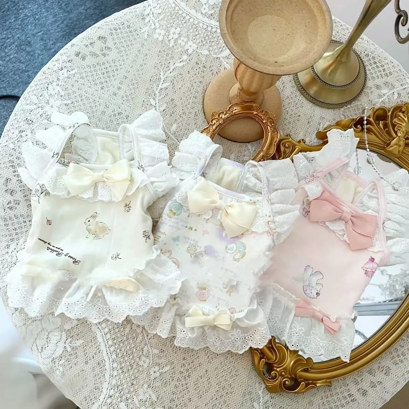 Camisola de encaje para mascotas, chaleco estampado, bonito vestido de peluche, ropa para el hogar, camisola para gatos y niños pequeños, falda, ropa para cachorros, chaleco refrescante para perros