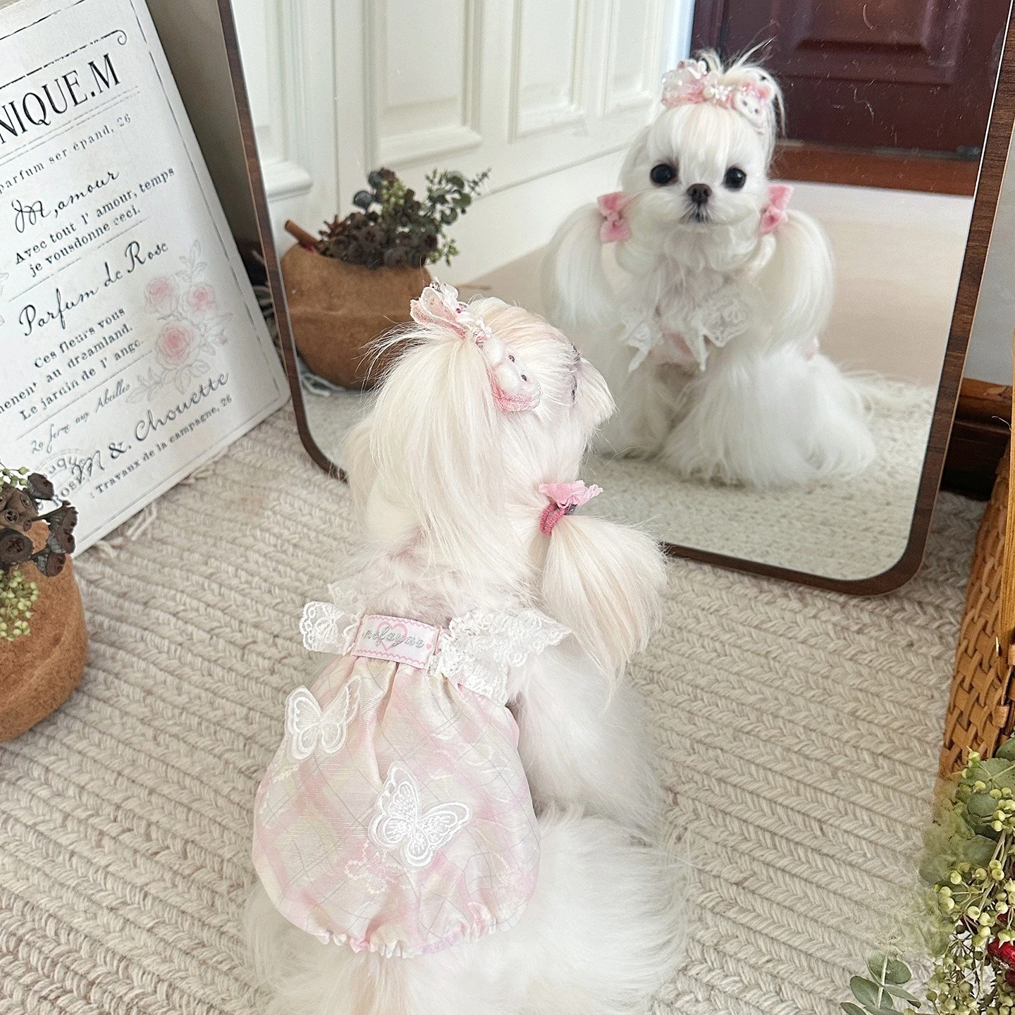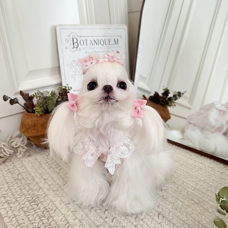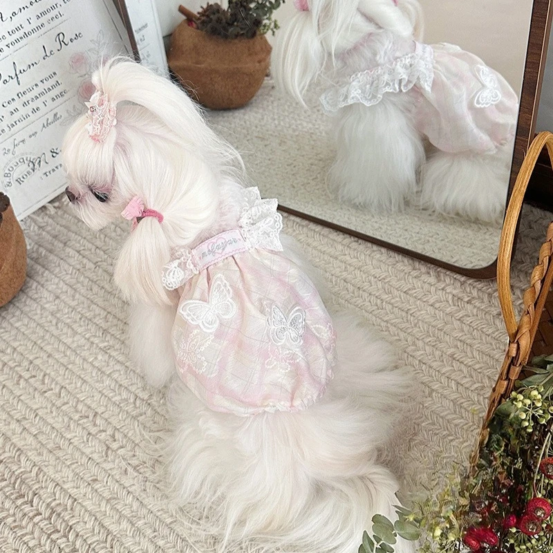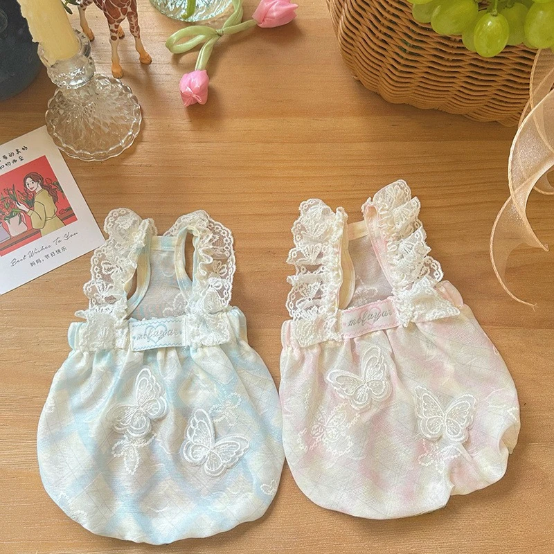 Camisola de encaje de primavera para mascotas, chaleco, falda de burbuja de mariposa y gato, protector solar transpirable, falda de calabaza con manga voladora
