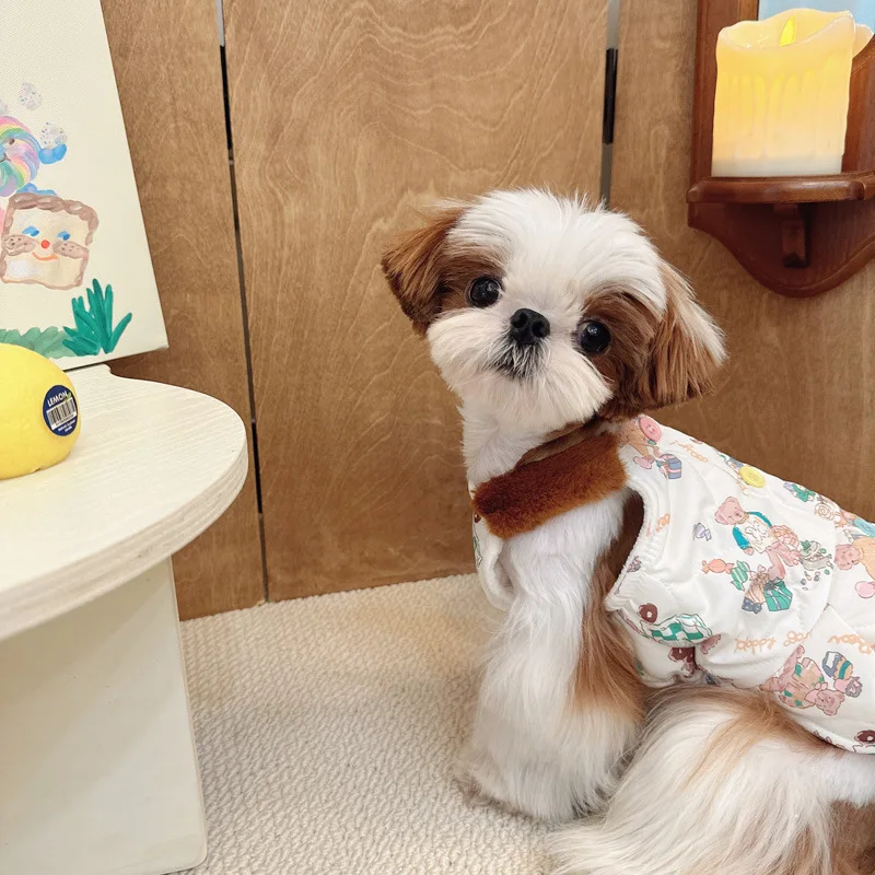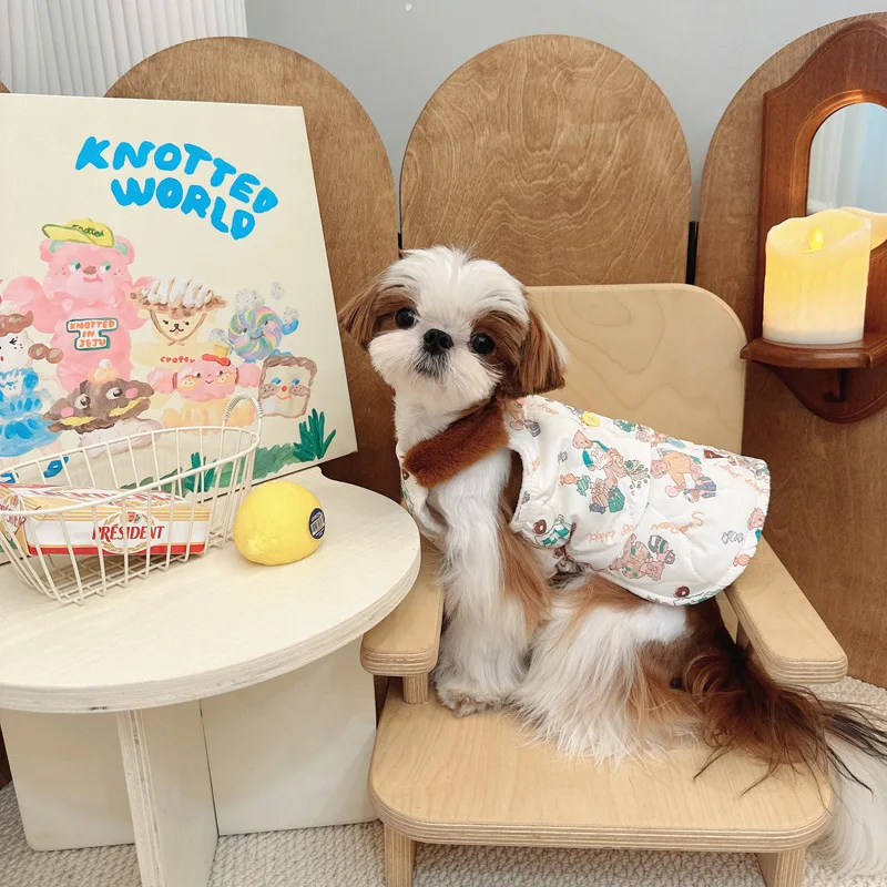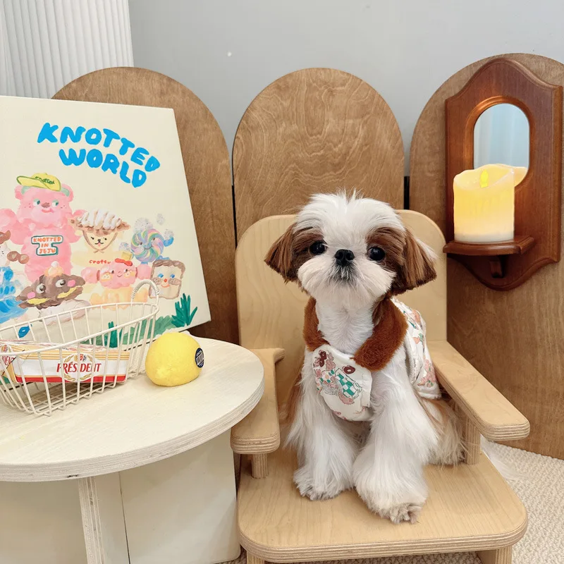 Camisola con estampado de felpa para mascotas, falda Schnauzer, abrigo de otoño e invierno para perros pequeños, ropa para cachorros, otoño e invierno