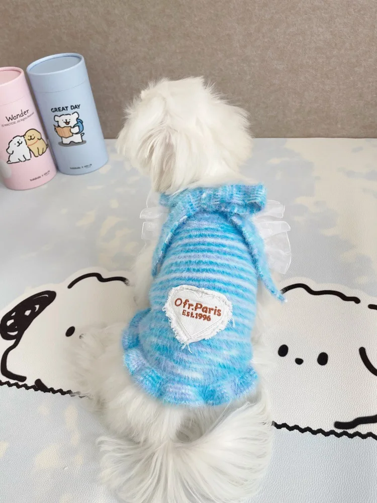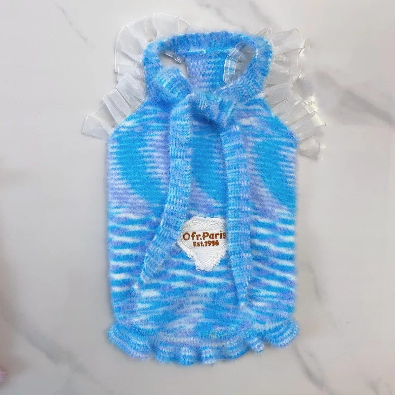 Camisola de otoño e invierno para mascotas, chaleco de encaje de piel de visón, suéter para gatos, suéter de punto cálido, abrigo de peluche Yorkshire, ropa para perros pequeños