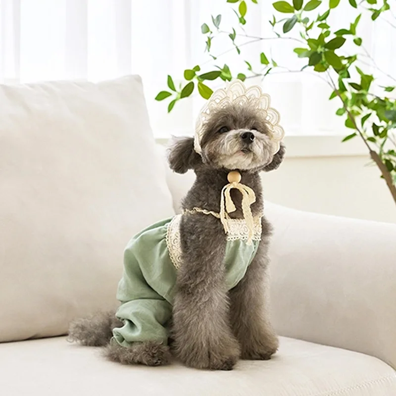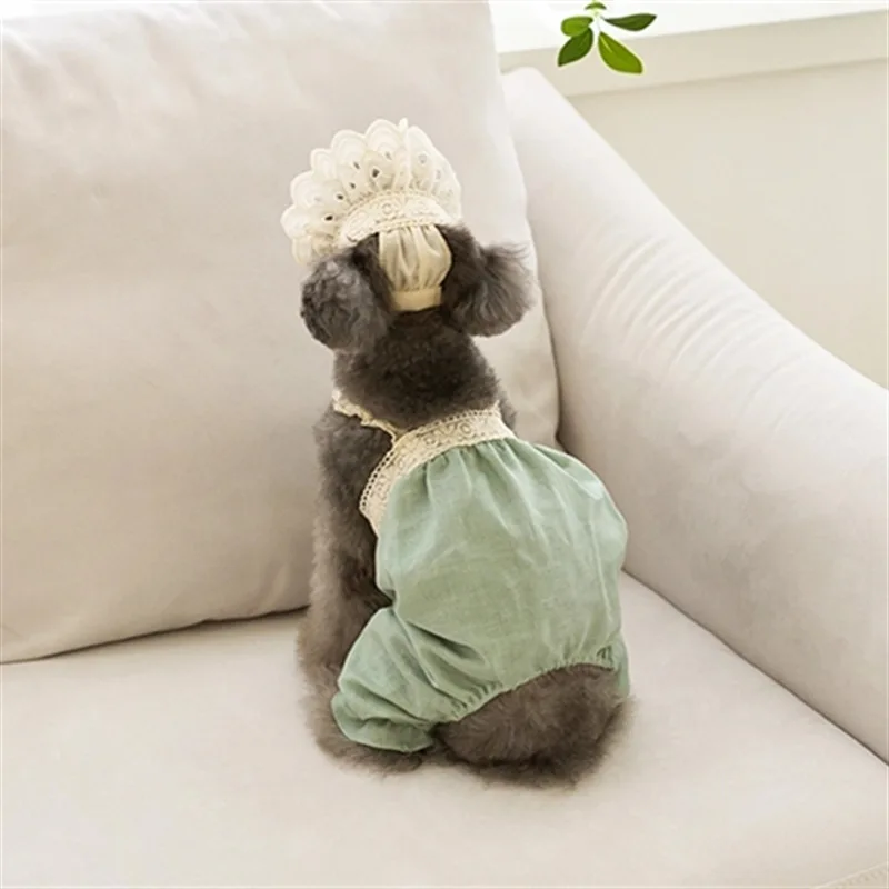 Camisola para perro de primavera para mascotas, chaleco, mono de dos patas, oso de peluche, ropa para perros, sombrero de sol de encaje, ropa para cachorros