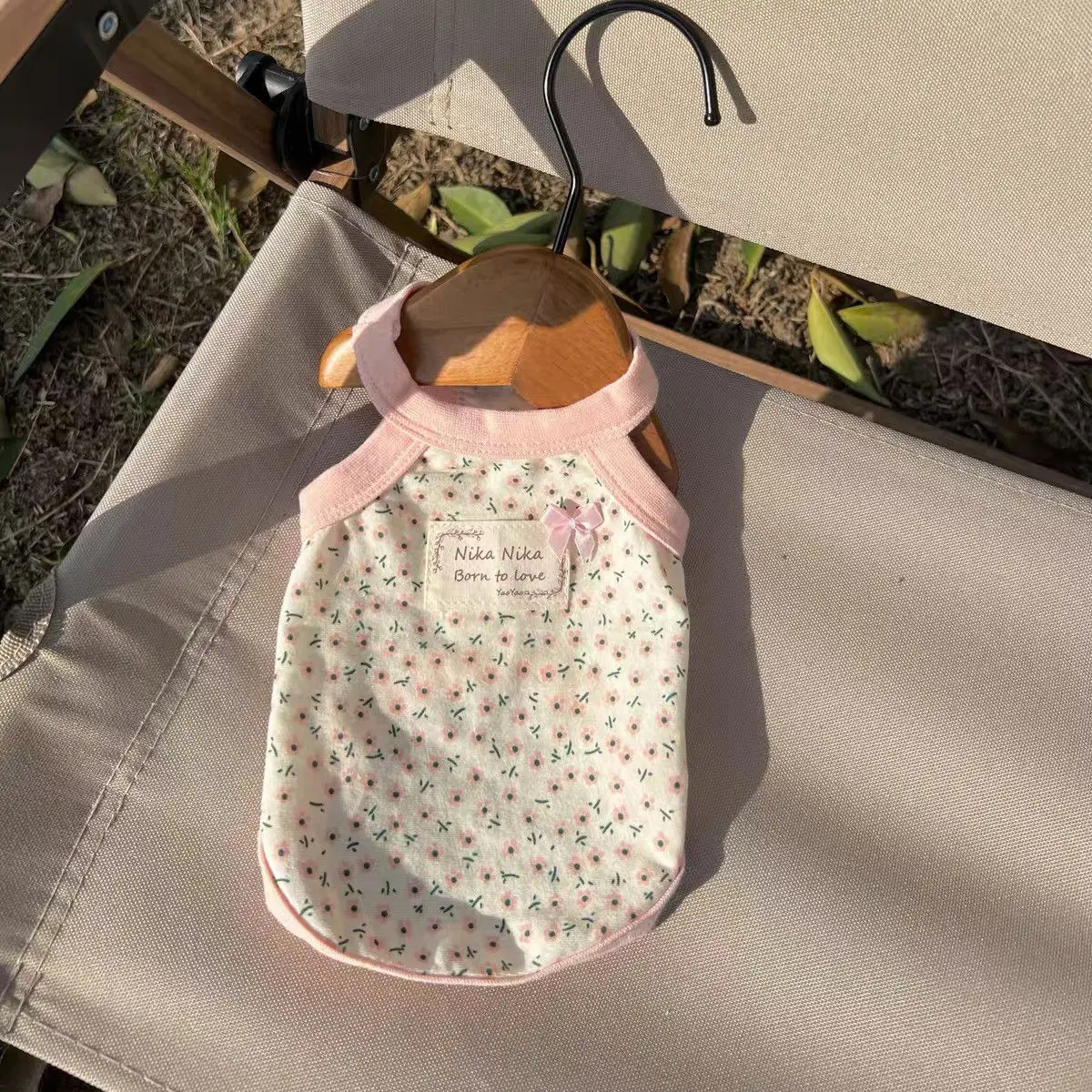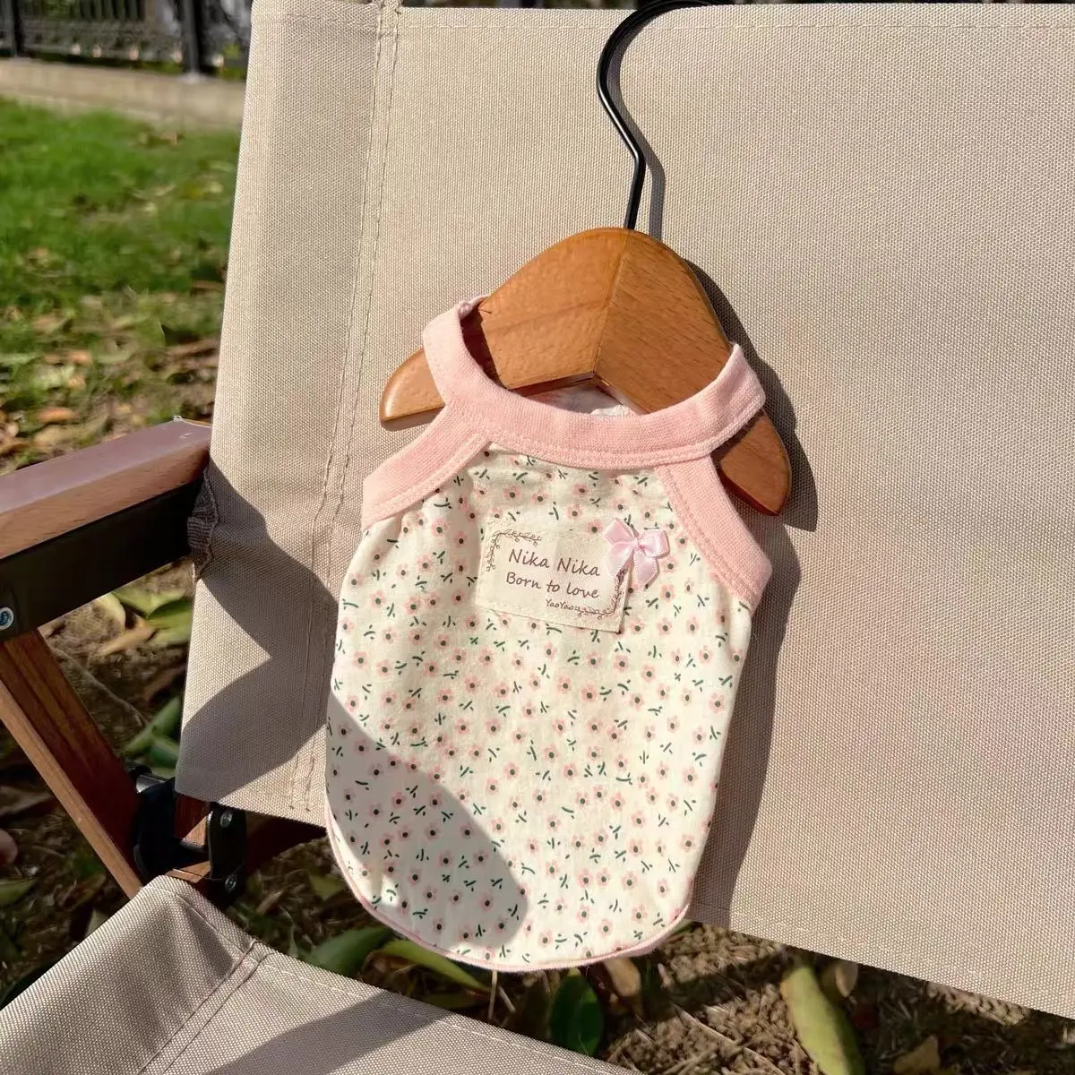 Camisola de primavera para mascotas, chaleco con estampado Floral para perros pequeños, camiseta fina y transpirable para cachorros, chaleco