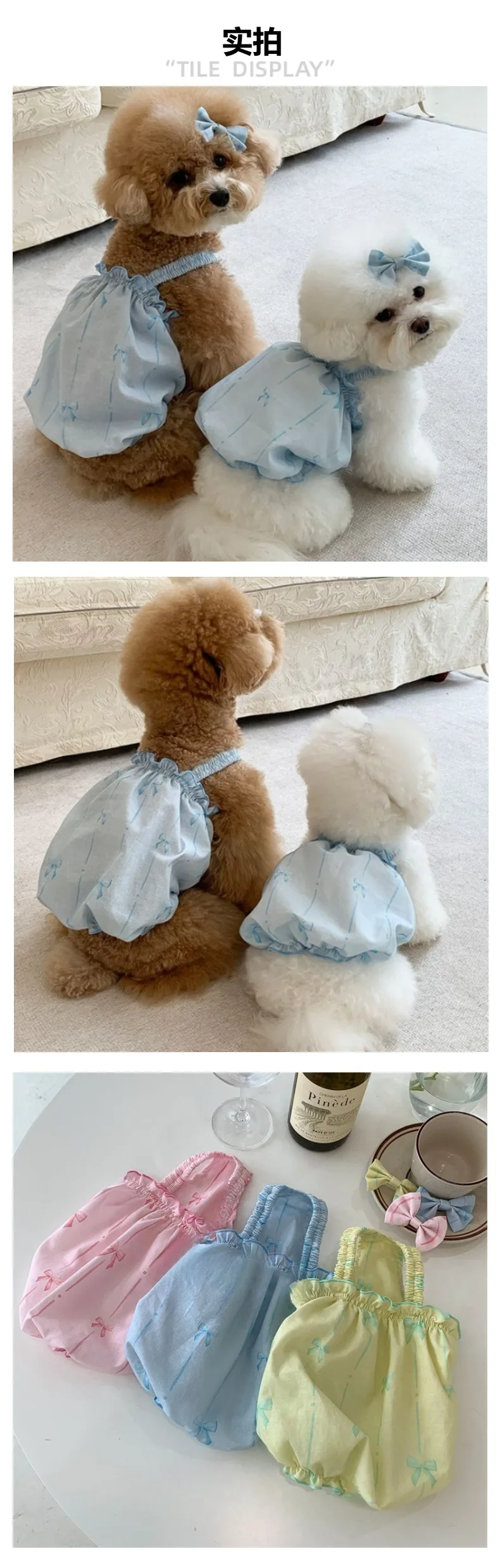 Camisola de primavera para mascotas, chaleco con estampado de lazo, camisola fina, vestido de burbuja con diadema, lazo incluido, vestido para cachorro y perro