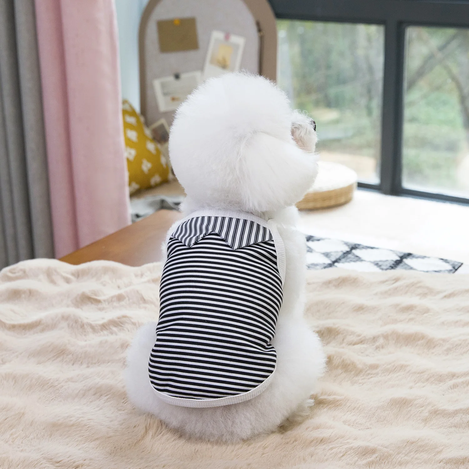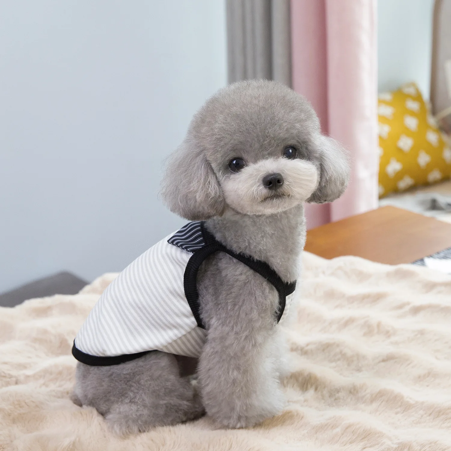 Camisola de primavera para mascotas, chalecos universales finos a rayas para perros y gatos, ropa para perros con osito de peluche, chaleco refrescante para perros y cachorros