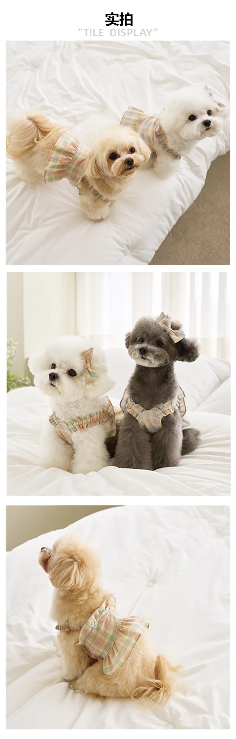 Camisola de primavera y verano para mascotas, chaleco a cuadros, ropa para cachorros y gatos, vestido a cuadros, oso de peluche, ropa para perros pequeños, sombreros, ropa para cachorros