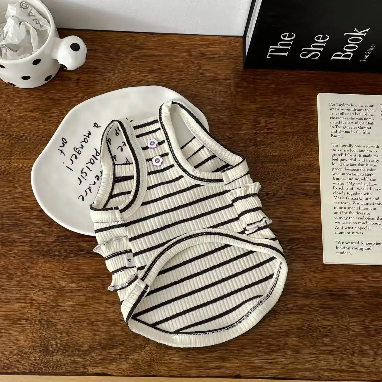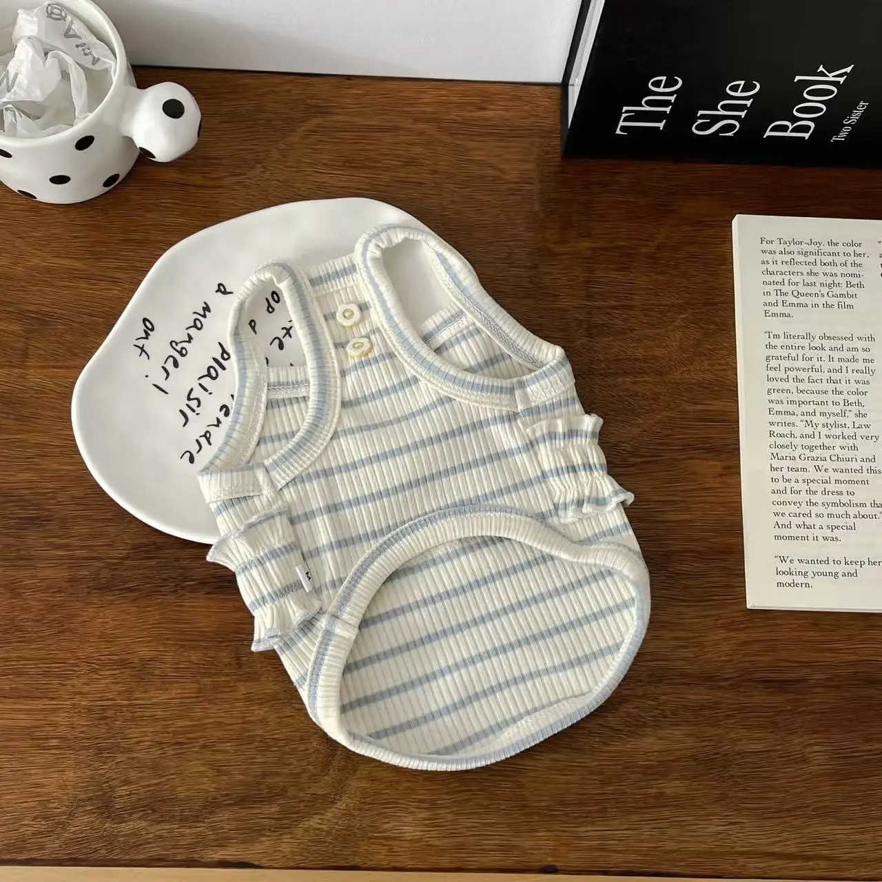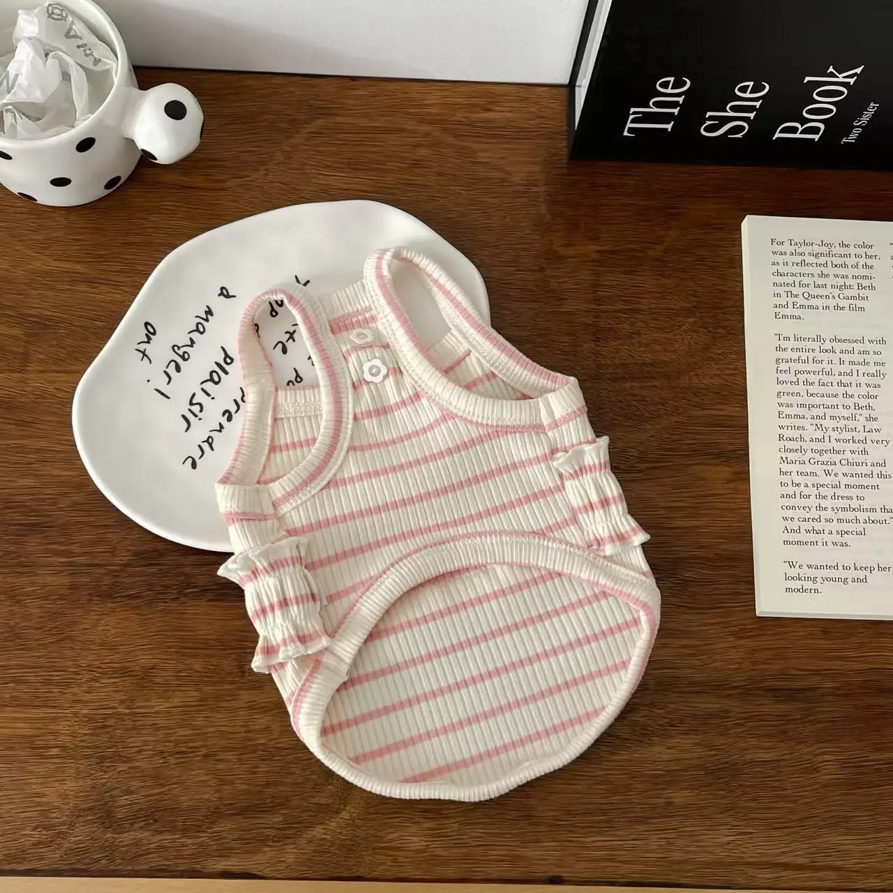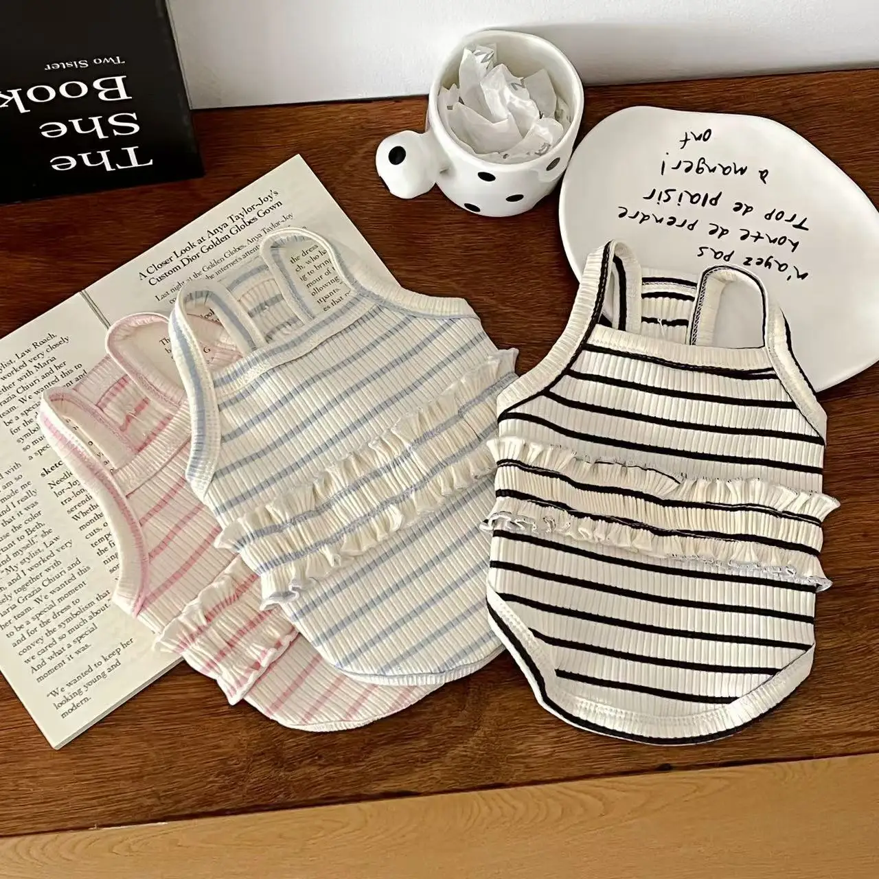 Camisola a rayas de primavera para mascotas, chaleco de encaje, chaleco fino de princesa para gatos, camisola bonita, ropa para cachorros pequeños y medianos