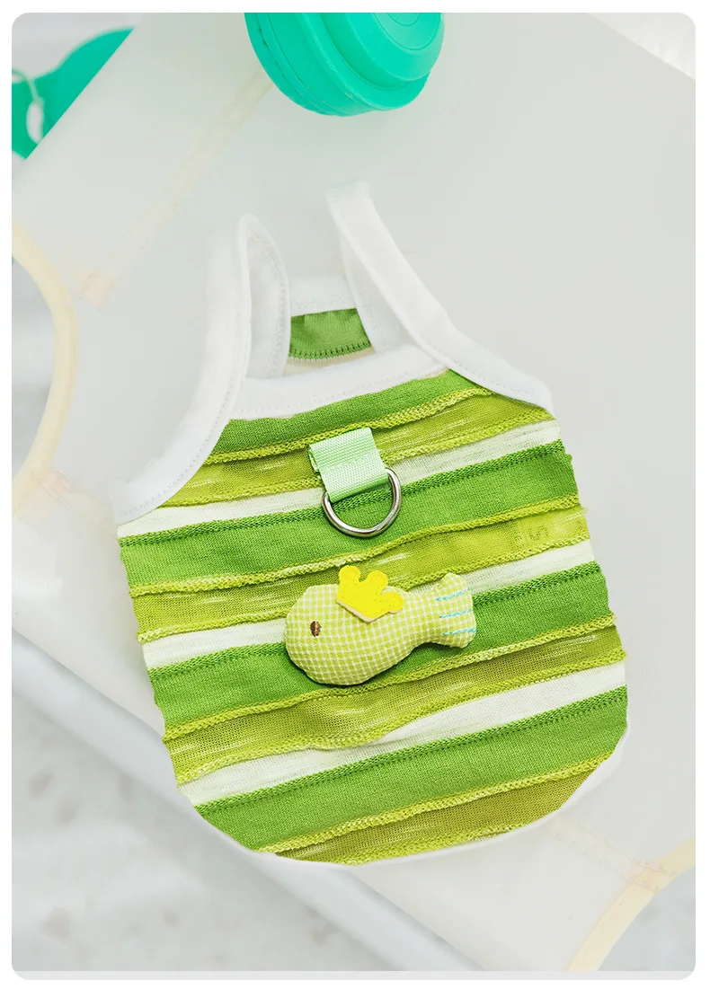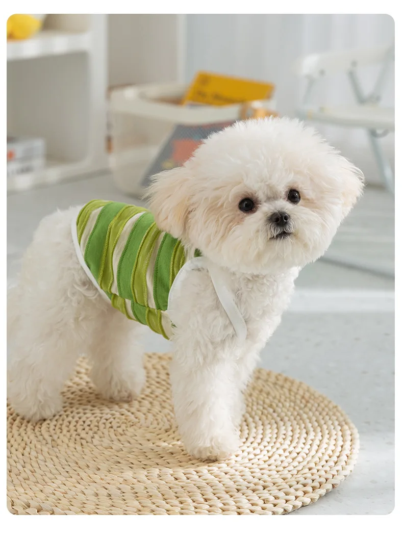 Camisola a rayas para primavera/verano para mascotas, camisola fina de dos pies, ropa transpirable para gatos y mascotas, chaleco refrescante para perros y cachorros