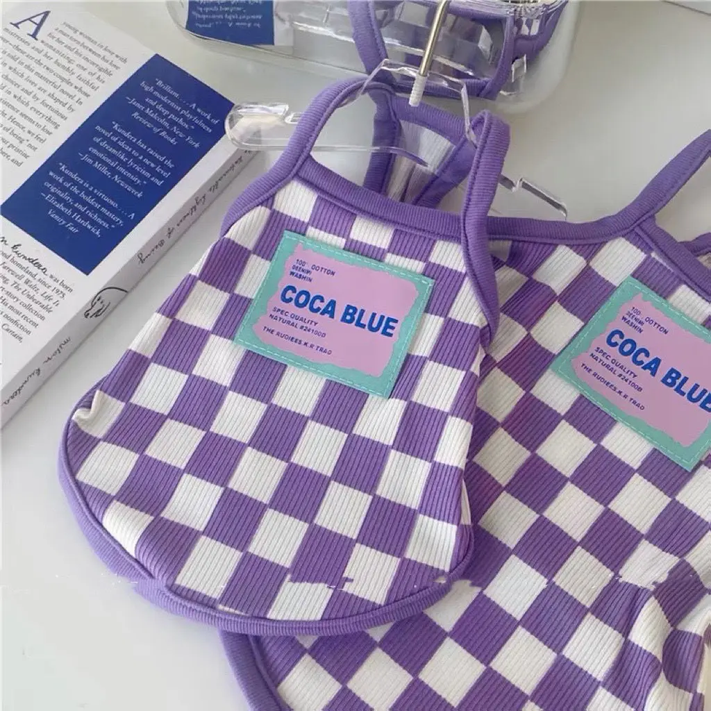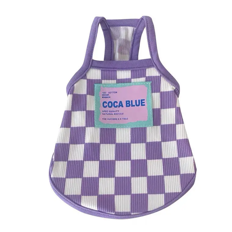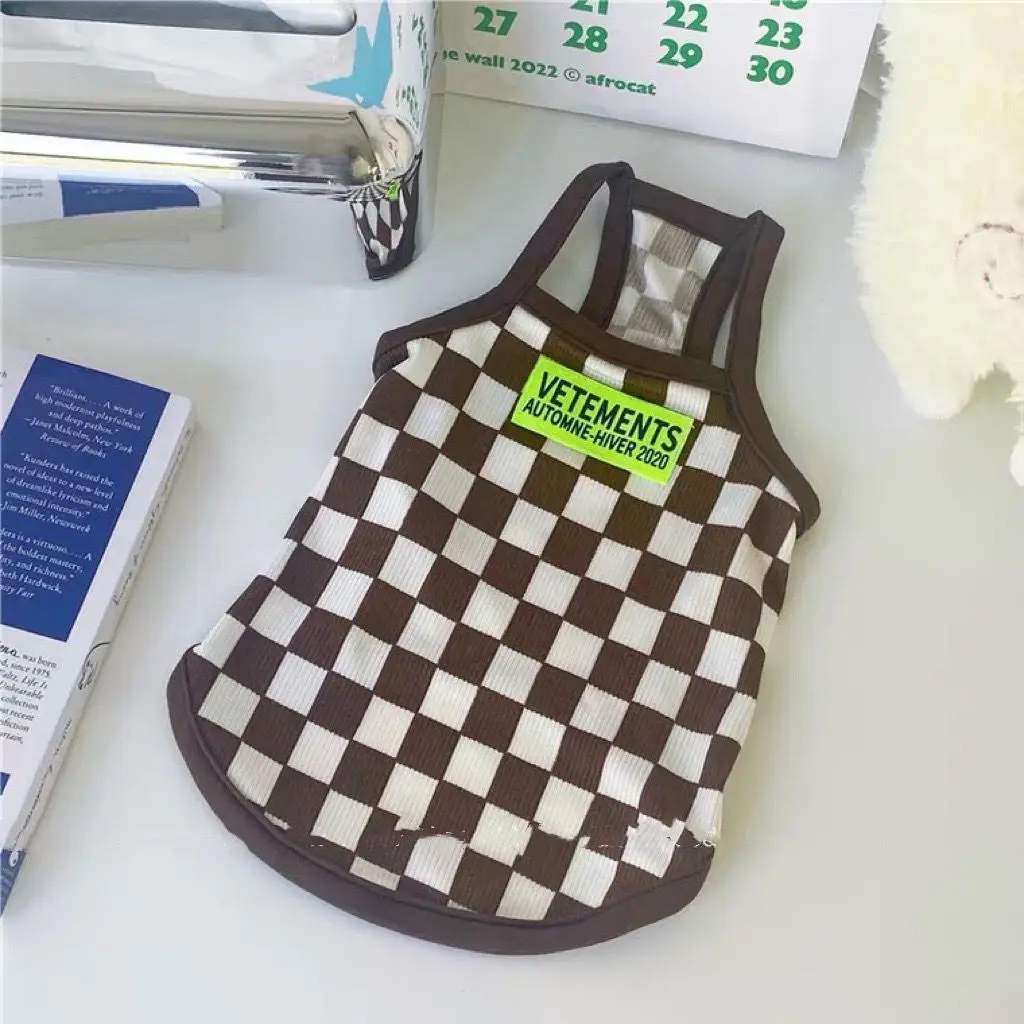 Camisola de tablero de ajedrez para mascotas, ropa de tendencia de verano para perros, chaleco de peluche transpirable para gatos, anticaída de cabello