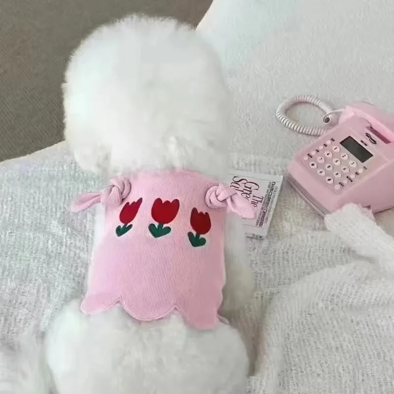 Camisola de tulipán para perro, chaleco bonito para perro, cachorro, gato, mascota, peluche, perro maltés, Yorkshire, cachorro pequeño, ropa para mascotas de primavera y verano